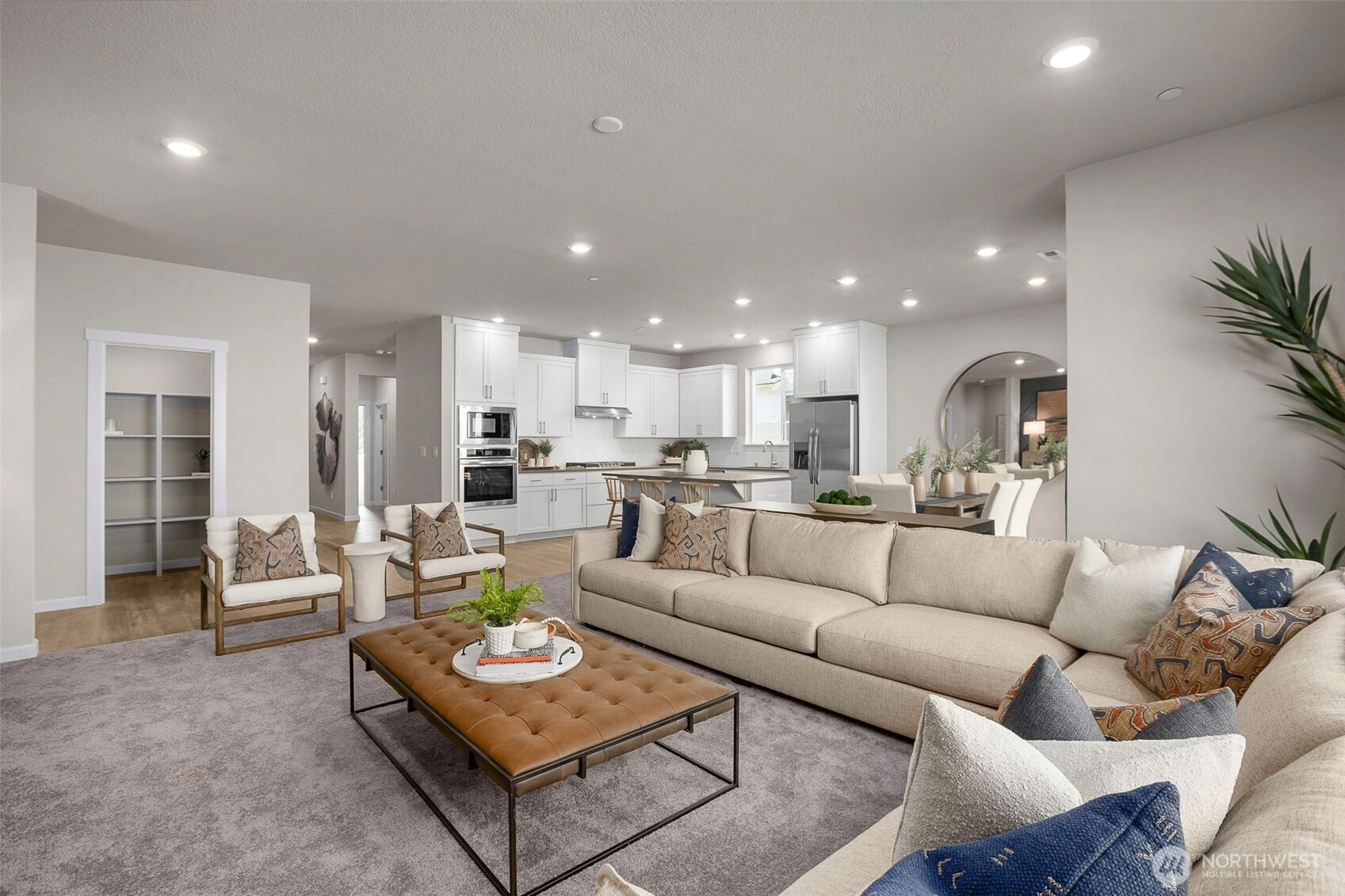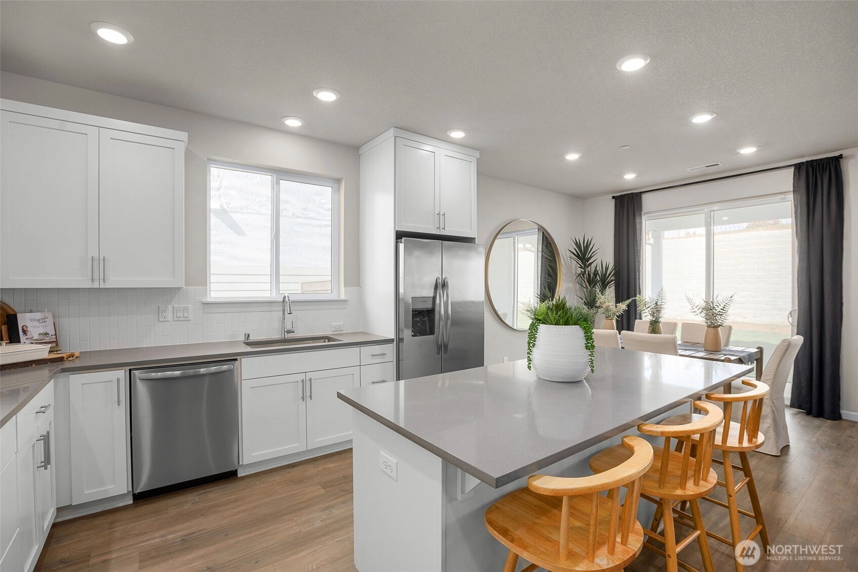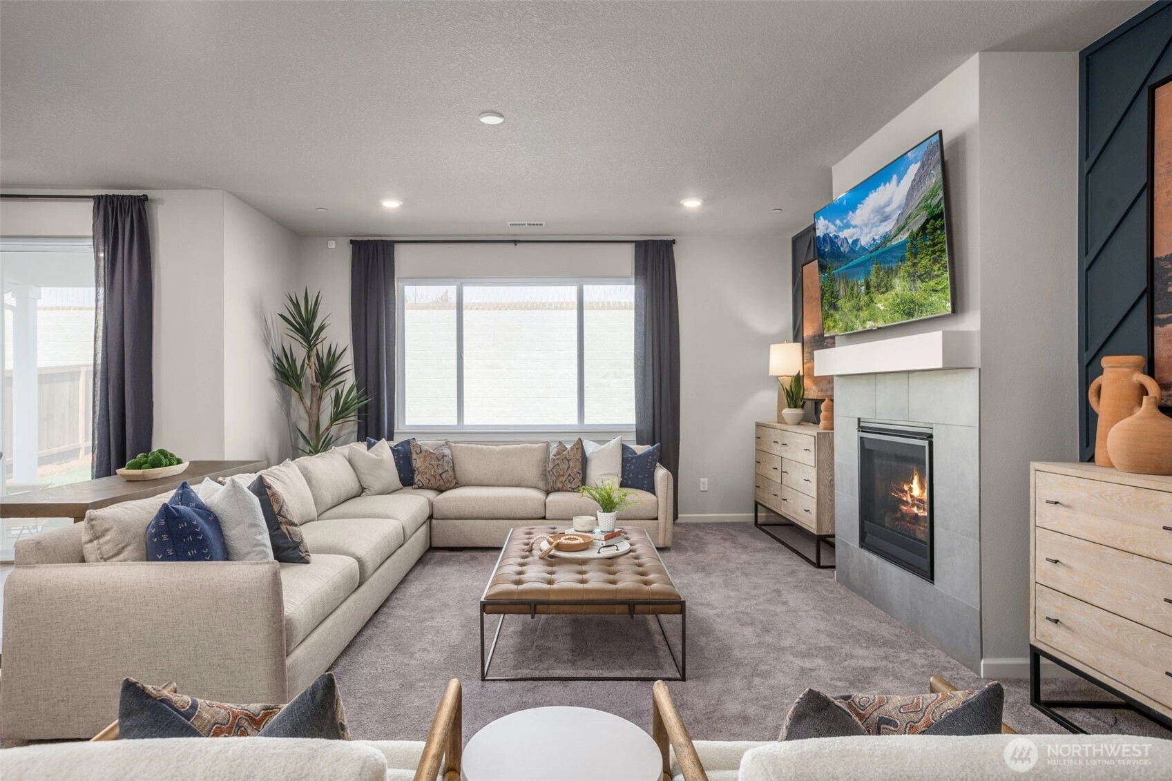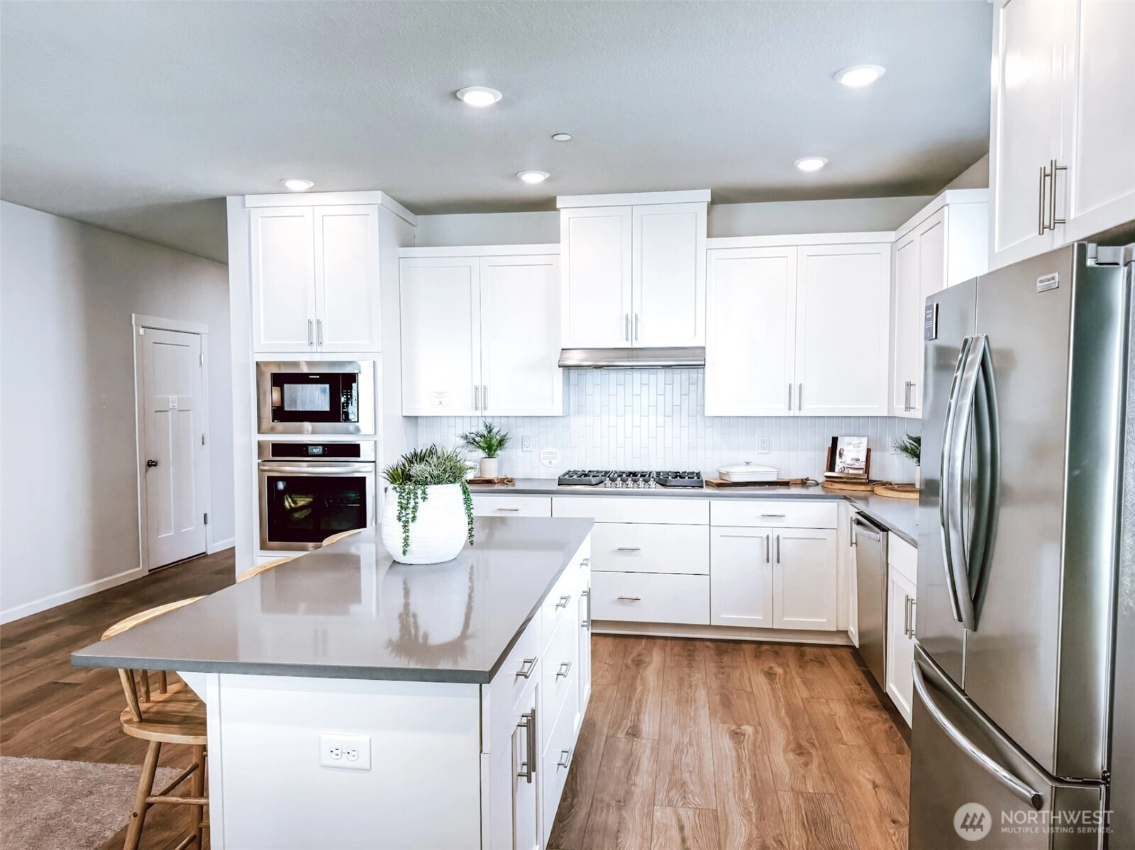 Stunning one level model home w/spacious 3 bay garage w/opener, ample lighting and room for your toys!Step into the tall foyer graced w/wide hallways that lead to double door bedroom #2, full bathroom with quartz counters, and bedroom #3 up front with north facing window.Modern quartz kitchen with stainless steel appliances (including the refrigerator) gas cooktop, microwave and built in convection oven, overlooks spacious Great Room with gas fireplace with mantle and tile surround!Just around the corner is the lavish primary suite with a gorgeous bathroom, tiled shower, tiled soaking tub and walk-in closet with wood shelving. In addition, washer/dryer, blinds, and fully landscaped yard with fencing!Homesite #107 Move in Feb 2026