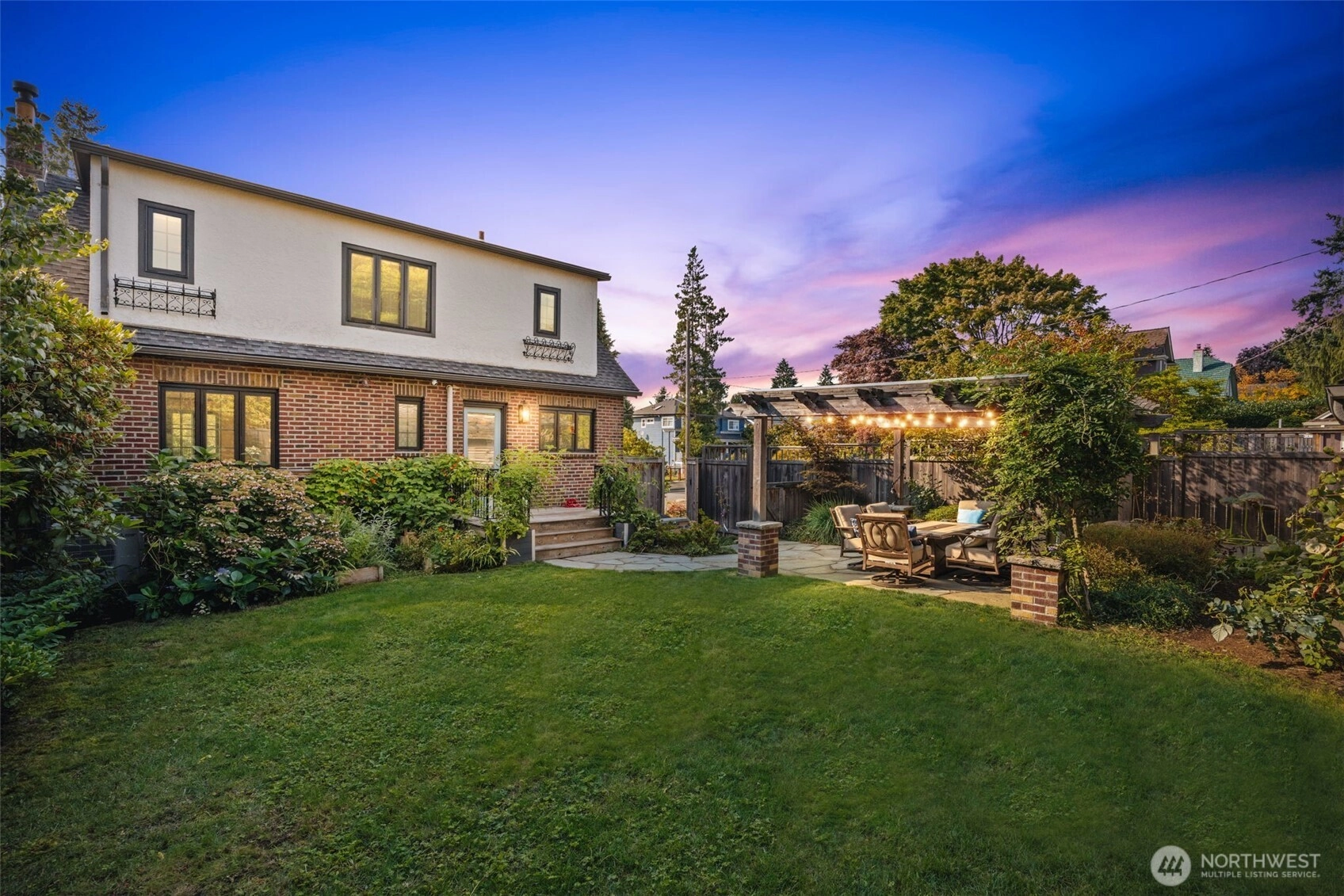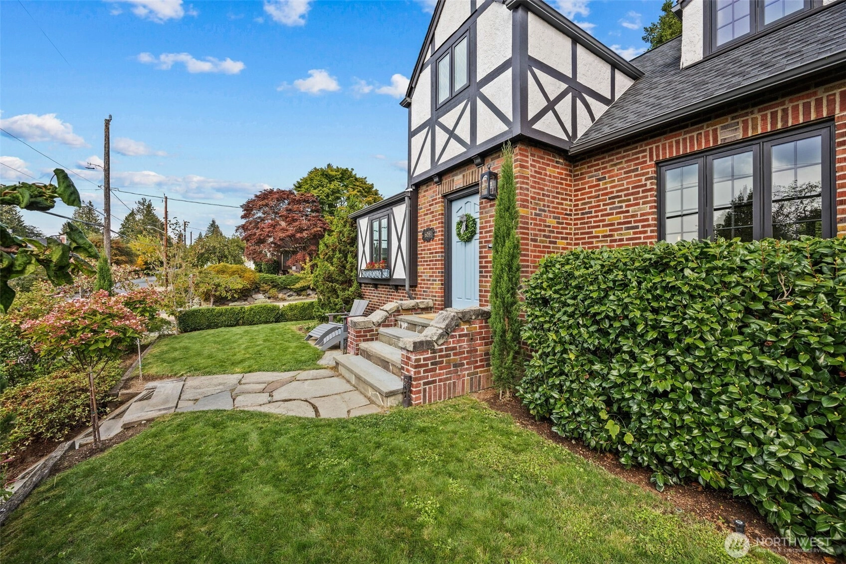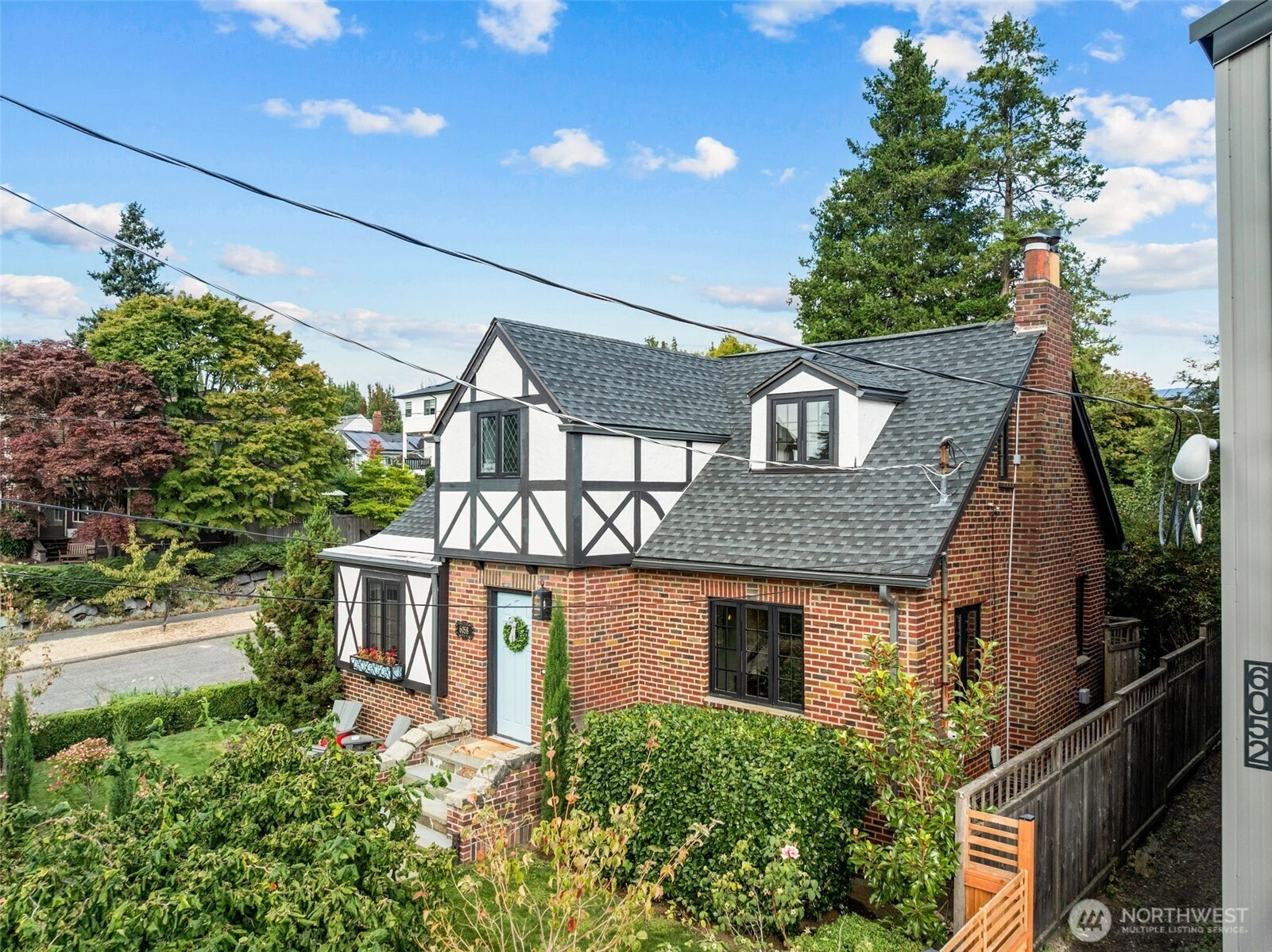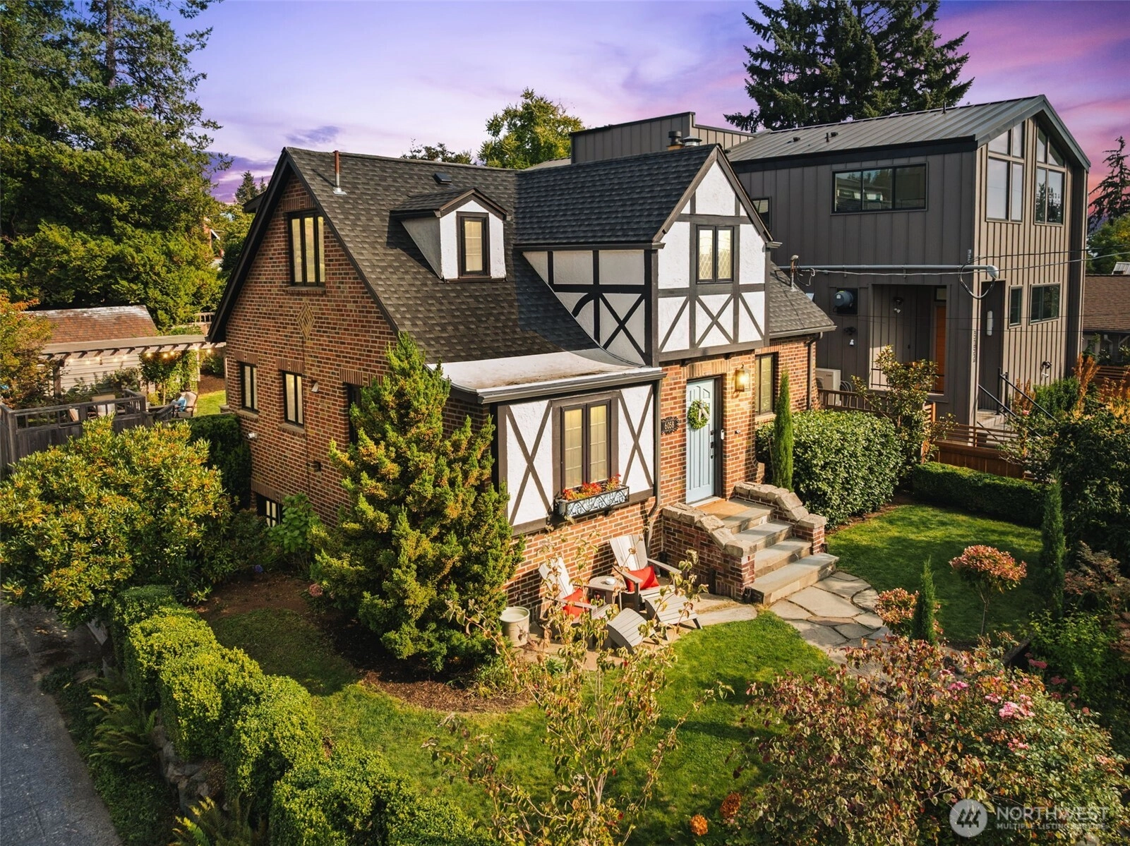 Storybook Tudor with quinnessential brick & timber frame on corner lot in highly desirable Bryant! Includes transferable View Ridge Swim & Tennis Club membership with a 1,000 family waitlist! Thoughtful updates preserve original character—black Andersen windows, SubZero/Wolf kitchen, new Gable roof, designer paint, & updated baths. Light-filled spaces with extensive architectural details throughout including arched, elaborate doorways, charming enclaves and rooflines. Stunning landscape design compliments exquisite exterior w/ private yard & stone patio, covered pergola & raised beds—fulfilling outdoor living dreams. Heating/Cooling for comfortability & detached garage for gear storage. Close to eateries, U-Village, Burke-Gilman & Downtown.