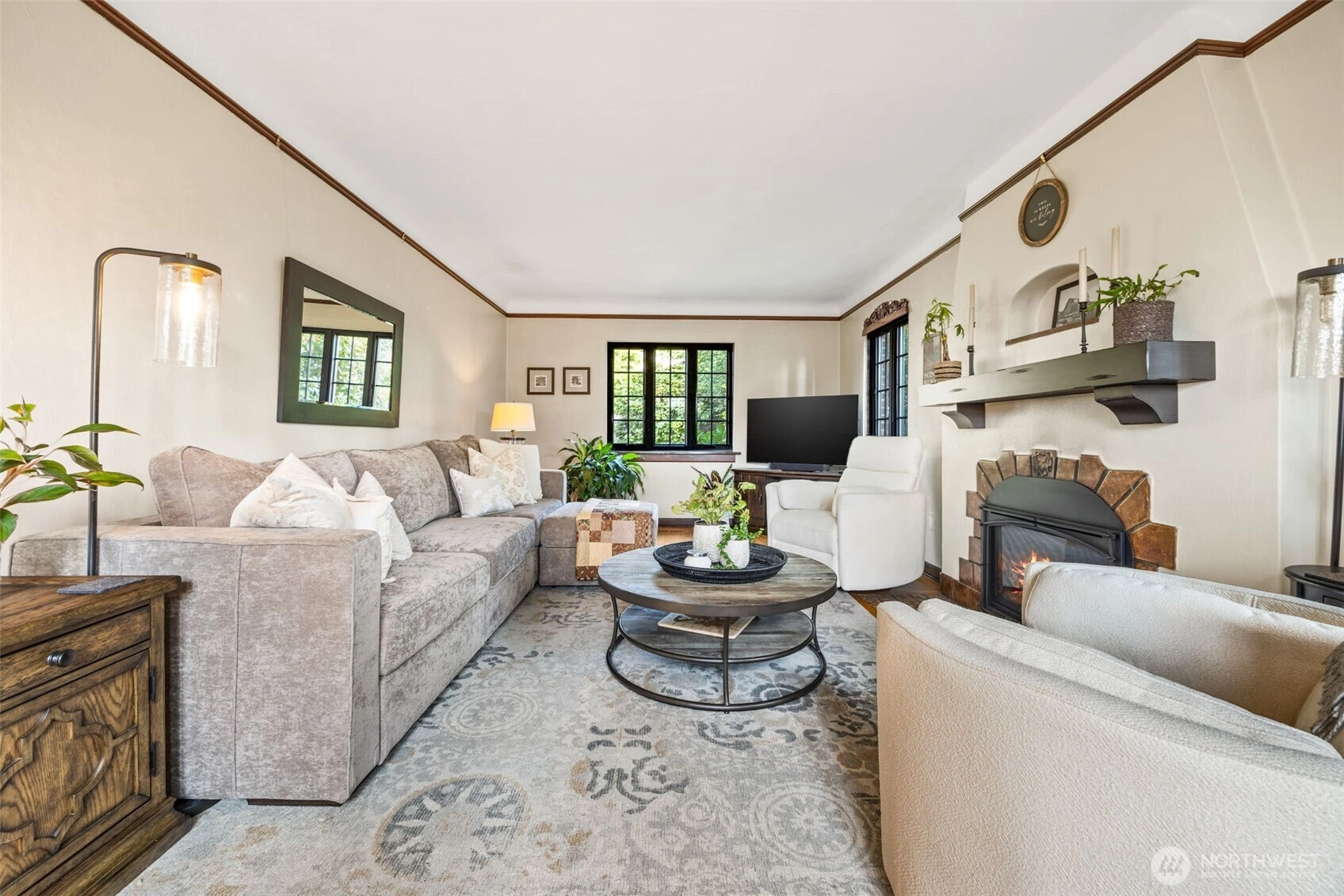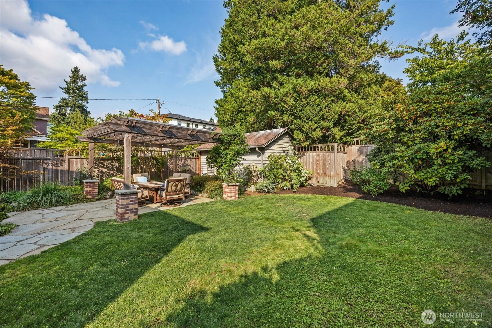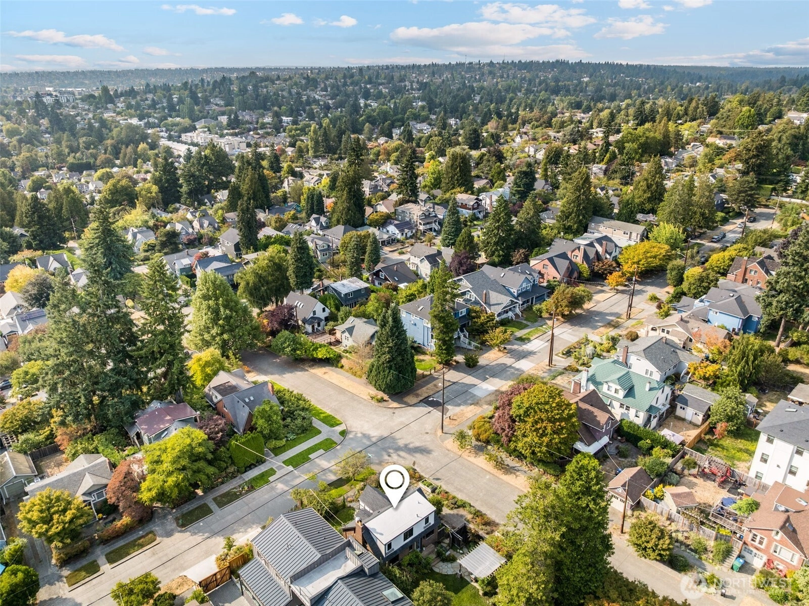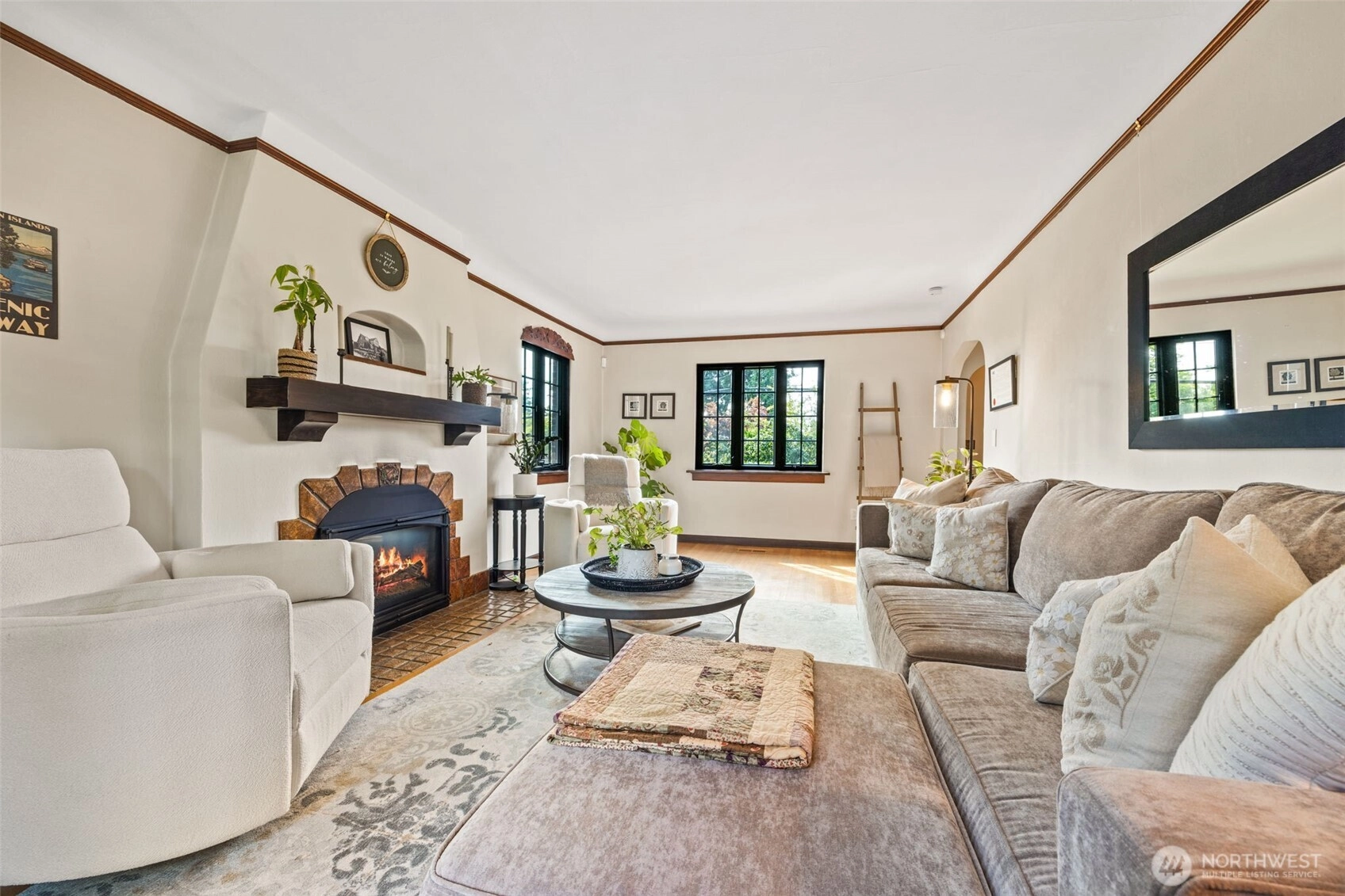 Storybook Tudor with quinnessential brick & timber frame on corner lot in highly desirable Bryant! Includes transferable View Ridge Swim & Tennis Club membership with a 1,000 family waitlist! Thoughtful updates preserve original character—black Andersen windows, SubZero/Wolf kitchen, new Gable roof, designer paint, & updated baths. Light-filled spaces with extensive architectural details throughout including arched, elaborate doorways, charming enclaves and rooflines. Stunning landscape design compliments exquisite exterior w/ private yard & stone patio, covered pergola & raised beds—fulfilling outdoor living dreams. Heating/Cooling for comfortability & detached garage for gear storage. Close to eateries, U-Village, Burke-Gilman & Downtown.