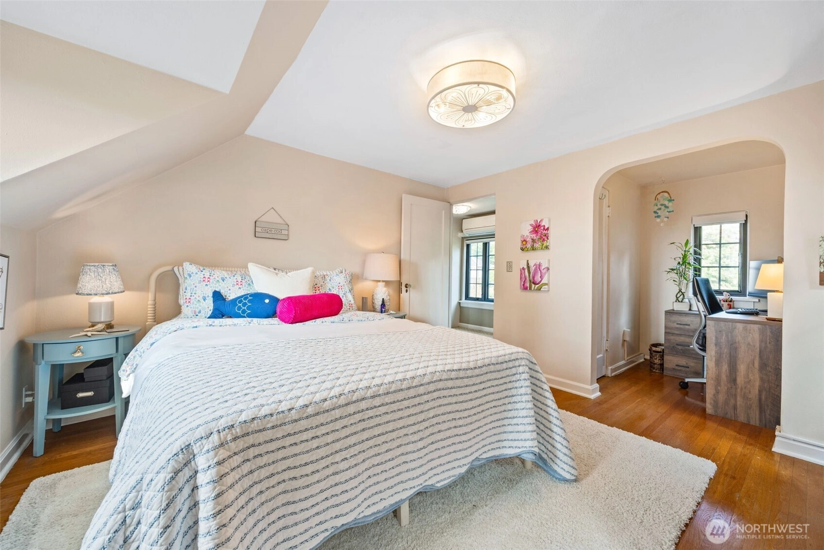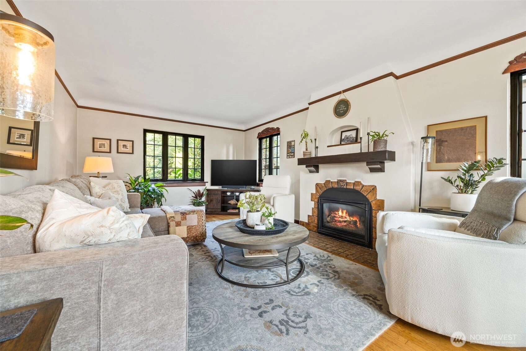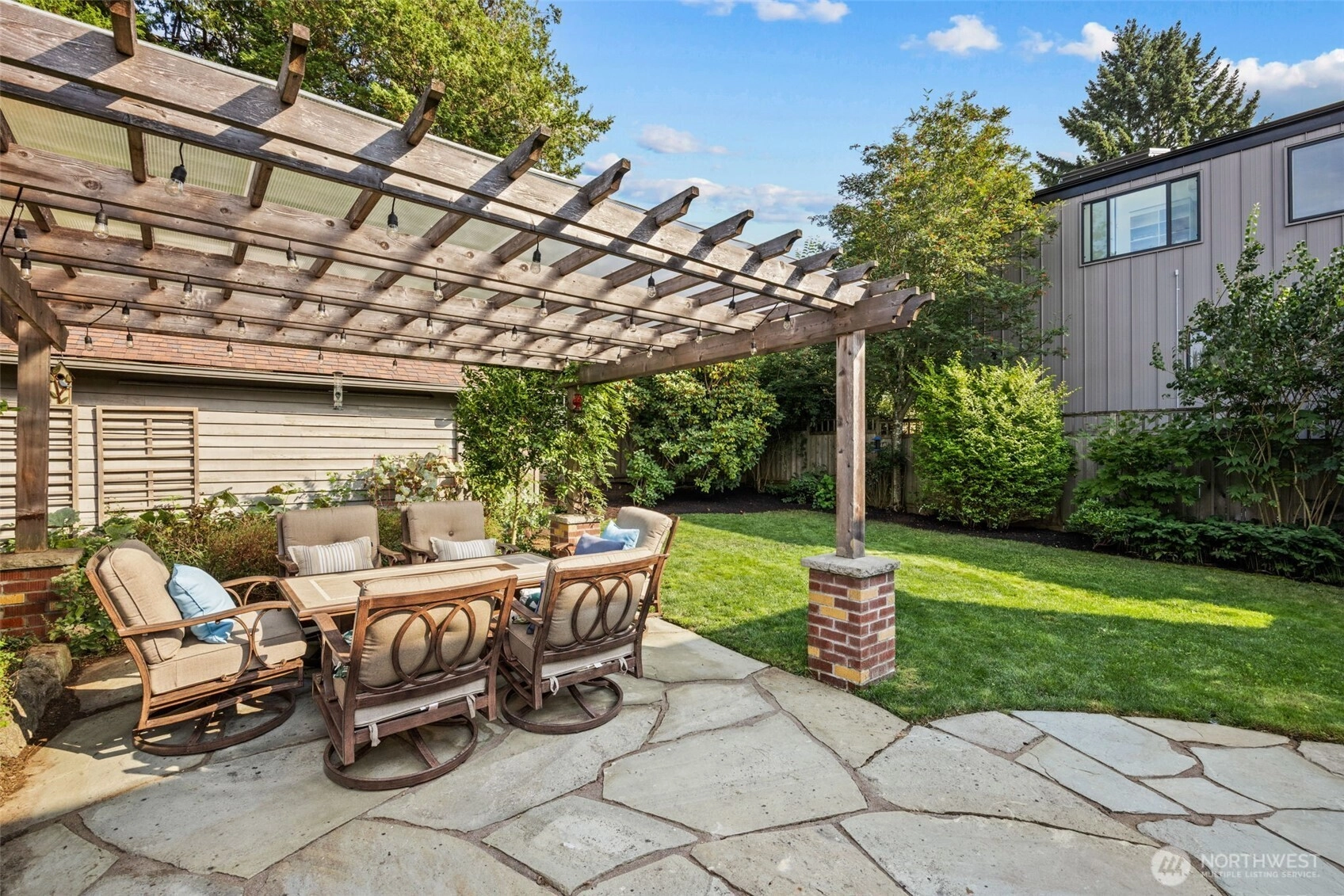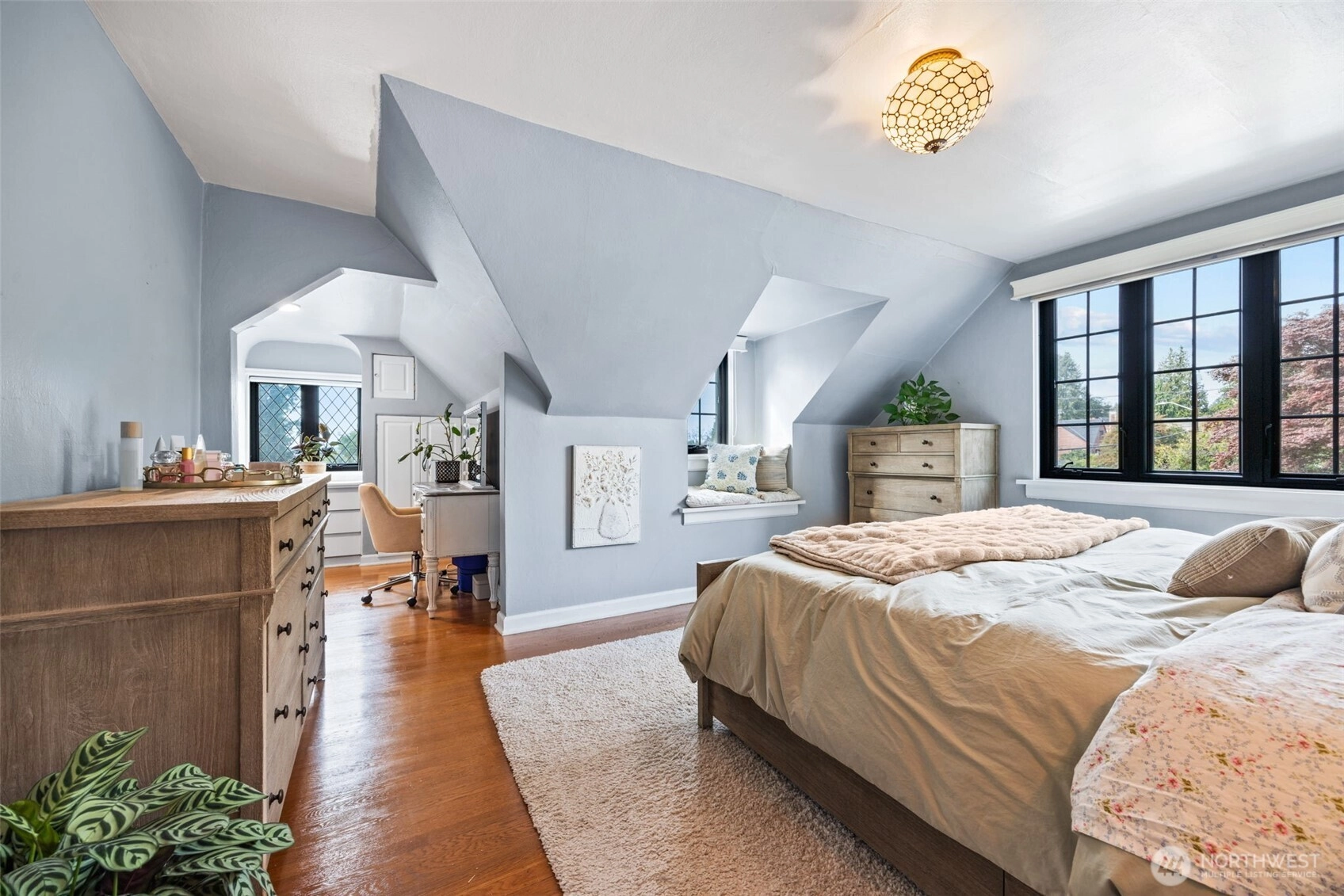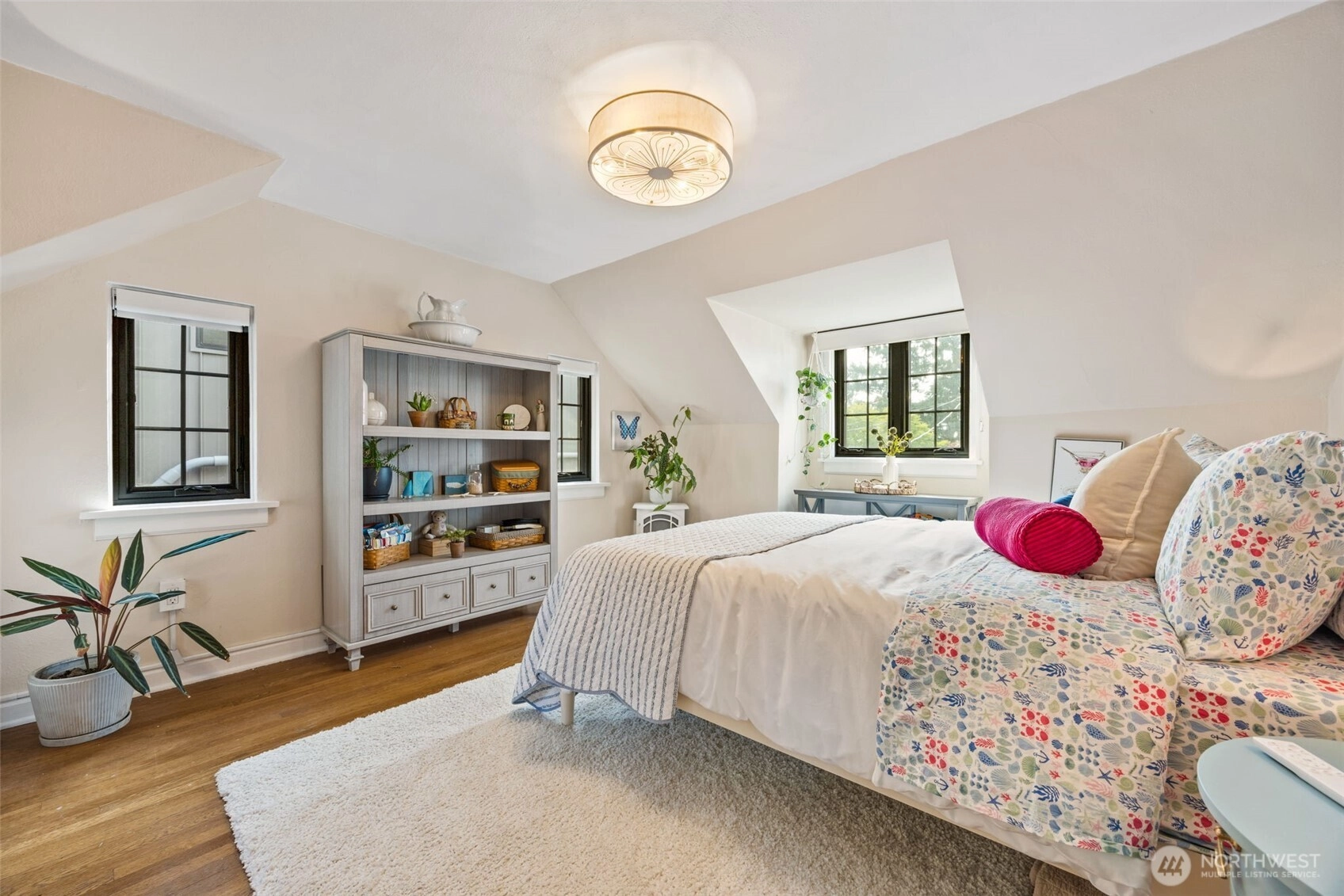 Storybook Tudor with quinnessential brick & timber frame on corner lot in highly desirable Bryant! Includes transferable View Ridge Swim & Tennis Club membership with a 1,000 family waitlist! Thoughtful updates preserve original character—black Andersen windows, SubZero/Wolf kitchen, new Gable roof, designer paint, & updated baths. Light-filled spaces with extensive architectural details throughout including arched, elaborate doorways, charming enclaves and rooflines. Stunning landscape design compliments exquisite exterior w/ private yard & stone patio, covered pergola & raised beds—fulfilling outdoor living dreams. Heating/Cooling for comfortability & detached garage for gear storage. Close to eateries, U-Village, Burke-Gilman & Downtown.