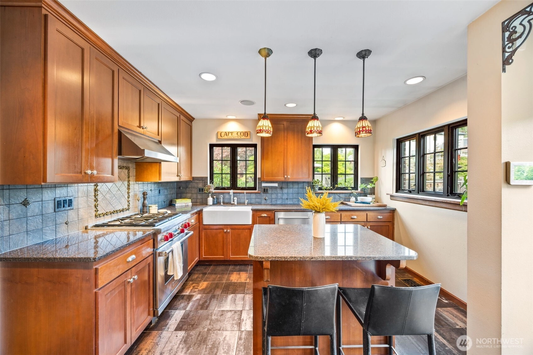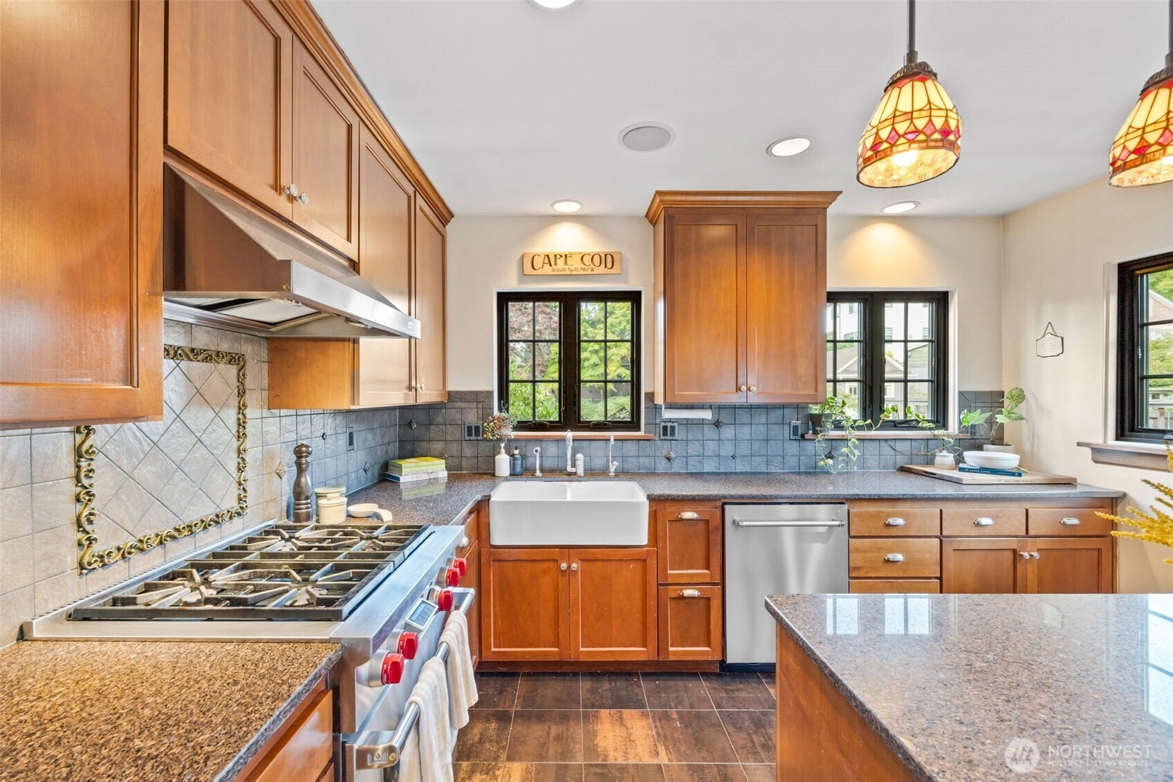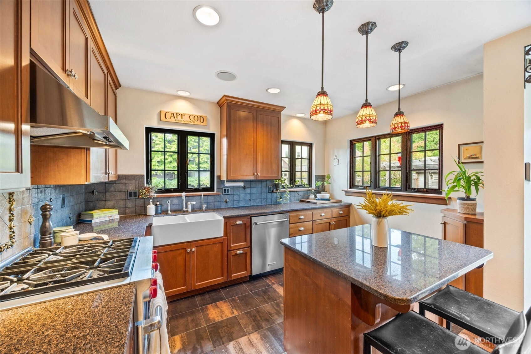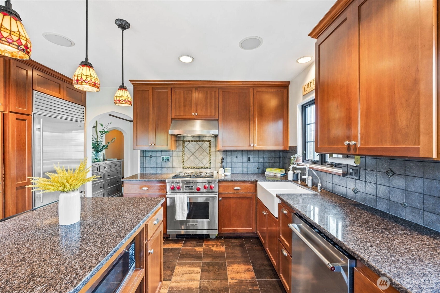 Storybook Tudor with quinnessential brick & timber frame on corner lot in highly desirable Bryant! Includes transferable View Ridge Swim & Tennis Club membership with a 1,000 family waitlist! Thoughtful updates preserve original character—black Andersen windows, SubZero/Wolf kitchen, new Gable roof, designer paint, & updated baths. Light-filled spaces with extensive architectural details throughout including arched, elaborate doorways, charming enclaves and rooflines. Stunning landscape design compliments exquisite exterior w/ private yard & stone patio, covered pergola & raised beds—fulfilling outdoor living dreams. Heating/Cooling for comfortability & detached garage for gear storage. Close to eateries, U-Village, Burke-Gilman & Downtown.