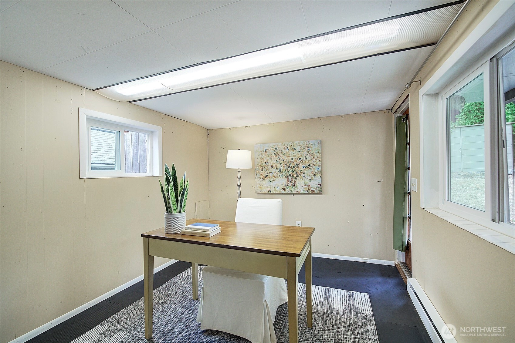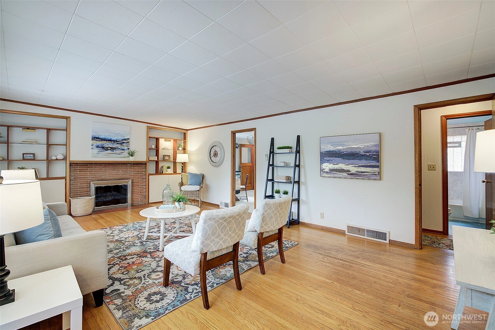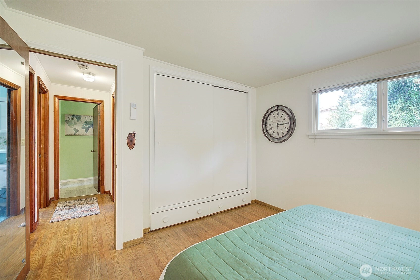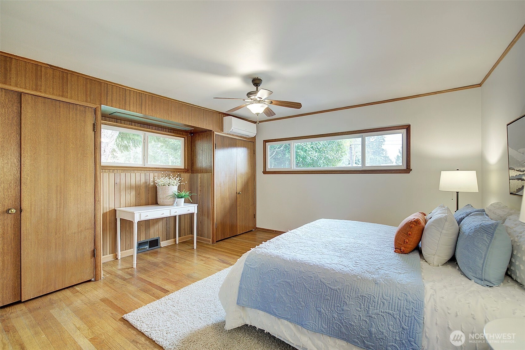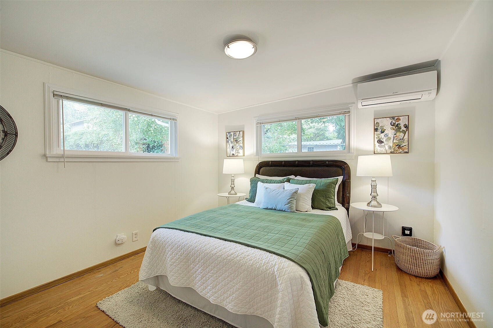Across from beautiful North Acres Park & just a stones throw from new Light Rail station, this charming Haller Lake home is ready to welcome you! Beautiful hardwood floors shine in spacious & sunny living room with mini split for summer & cozy fireplace to warm fall evenings! Cute kitchen has room for dining + pantry/storage area. Roomy main bedroom boasts hardwoods, A/C + his & hers closets! Guest bedroom & updated full bathroom are bright & inviting. Bonus family room is ready to host game night, w/wet bar, projector screen & ½ bathroom! Plus, private 3rd bedroom/office has direct yard access! Large, level backyard with deck, brand new roof, easy access to commuter routes, schools and parks… this sweet home will check all your boxes!
