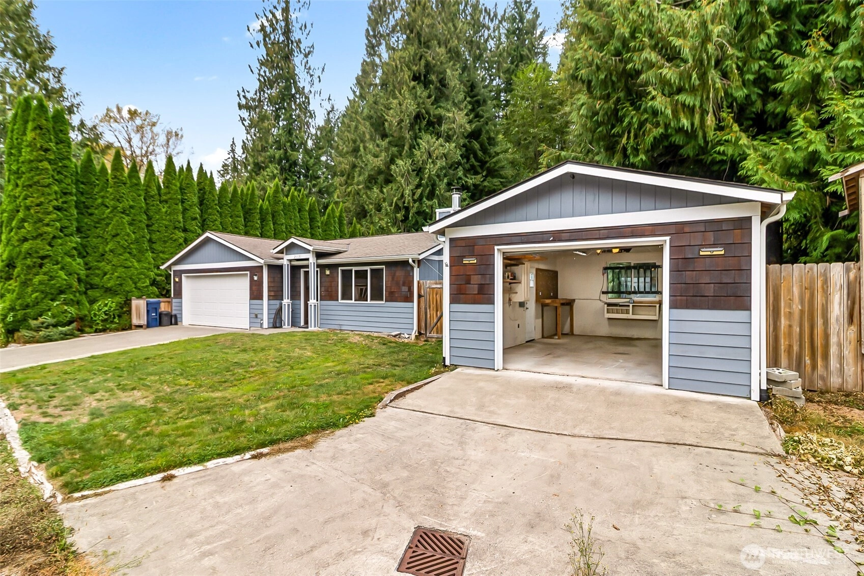 Welcome to your private oasis! This well-maintained single-owner rambler offers peaceful country living at its finest. Nestled against a beautiful, wooded backdrop with the Stillaguamish River just off in the distance, you’ll enjoy tranquil mornings on the deck listening to the soothing sounds of nature. The property features an additional detached garage perfect for car enthusiasts, hobbyists, or extra storage. Whether you're looking for a quiet retreat or space to tinker and create, this home has it all. Don't miss your chance to own this serene slice of the countryside.