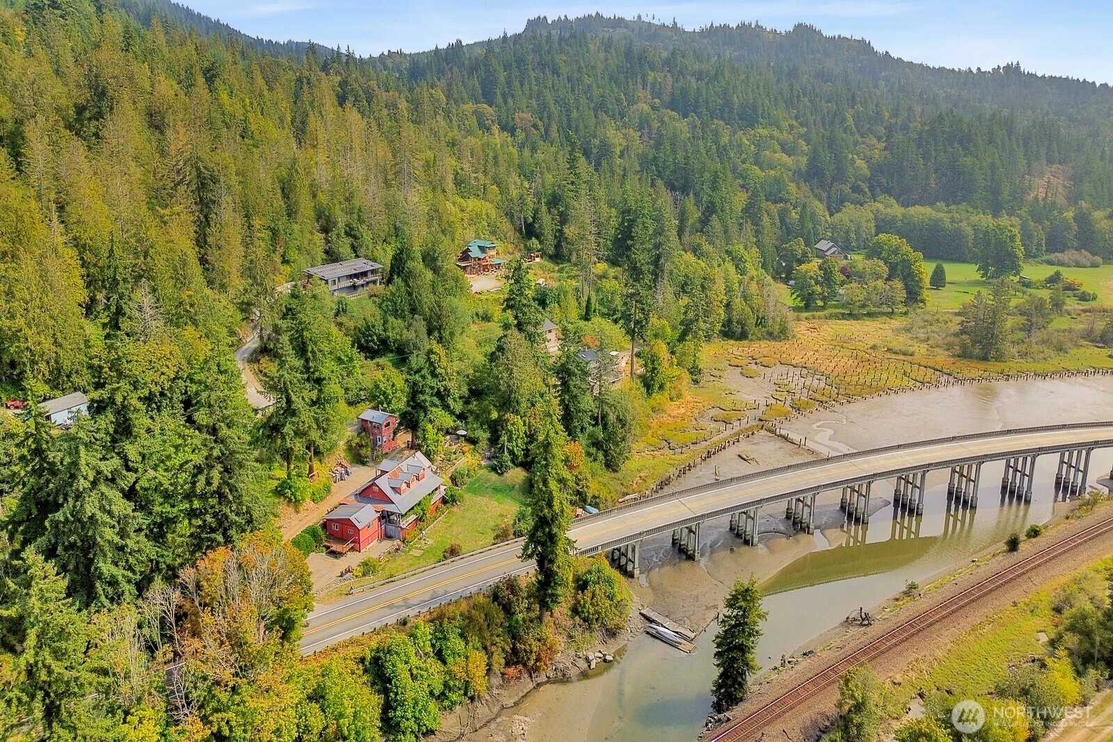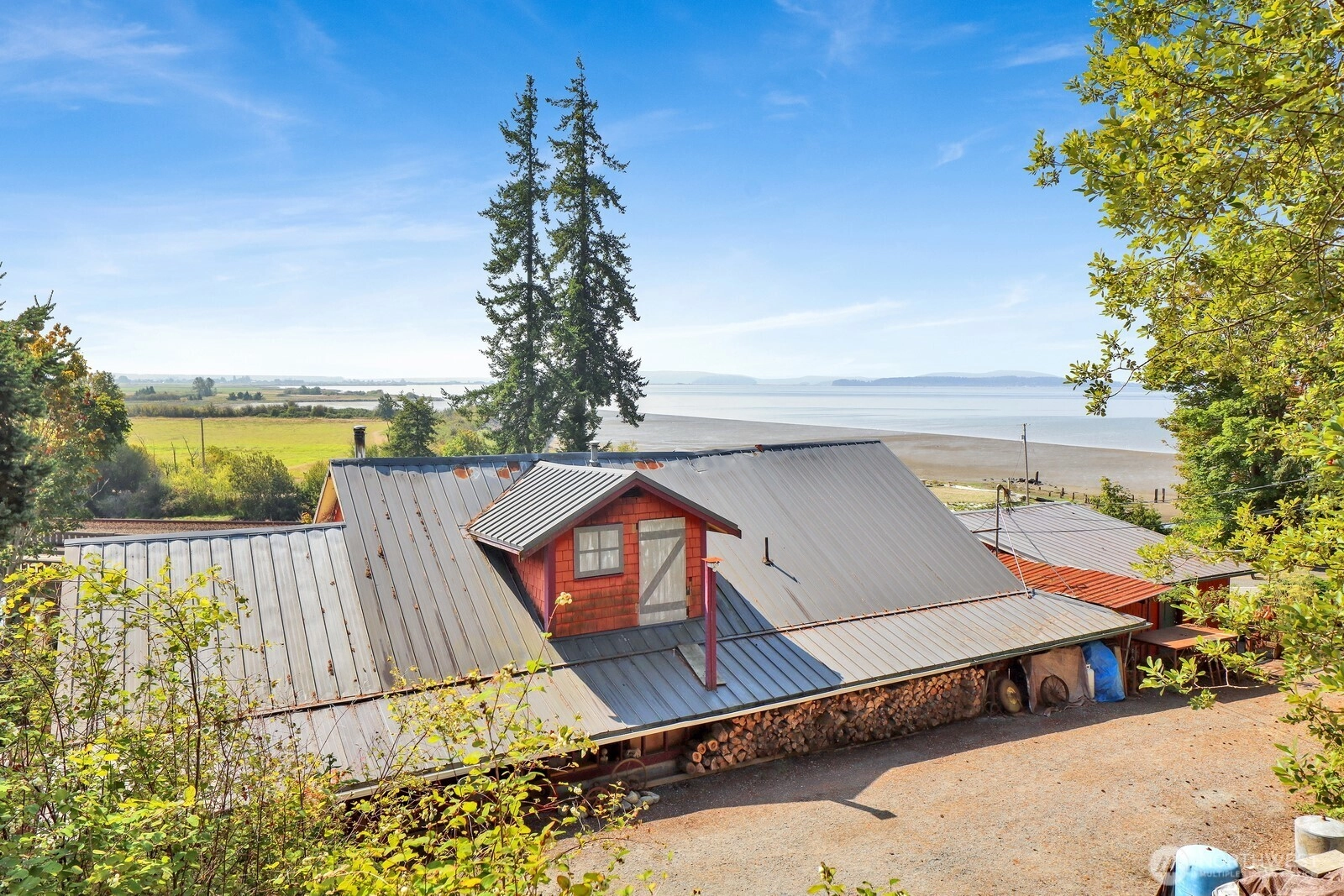 Rare opportunity to own a breathtaking piece of Chuckanut Drive with panoramic views of Skagit Bay and private waterfront access via the slough—perfect for launching a kayak or paddleboard right from your property. This 1.4-acre parcel is fully landscaped, gently sloping, and ready for your dream home. Live in the existing 1-bedroom residence while developing the lot. A historic 1888 structure—partially lost to fire 15 years ago—still stands, offering potential for new development. In 2011, the county approved two potential building sites: rebuild on the original footprint or elevate slightly for even better views. A 5-bedroom septic system and Blanchard Edison Water share already on-site. Iconic setting, unmatched opportunity.