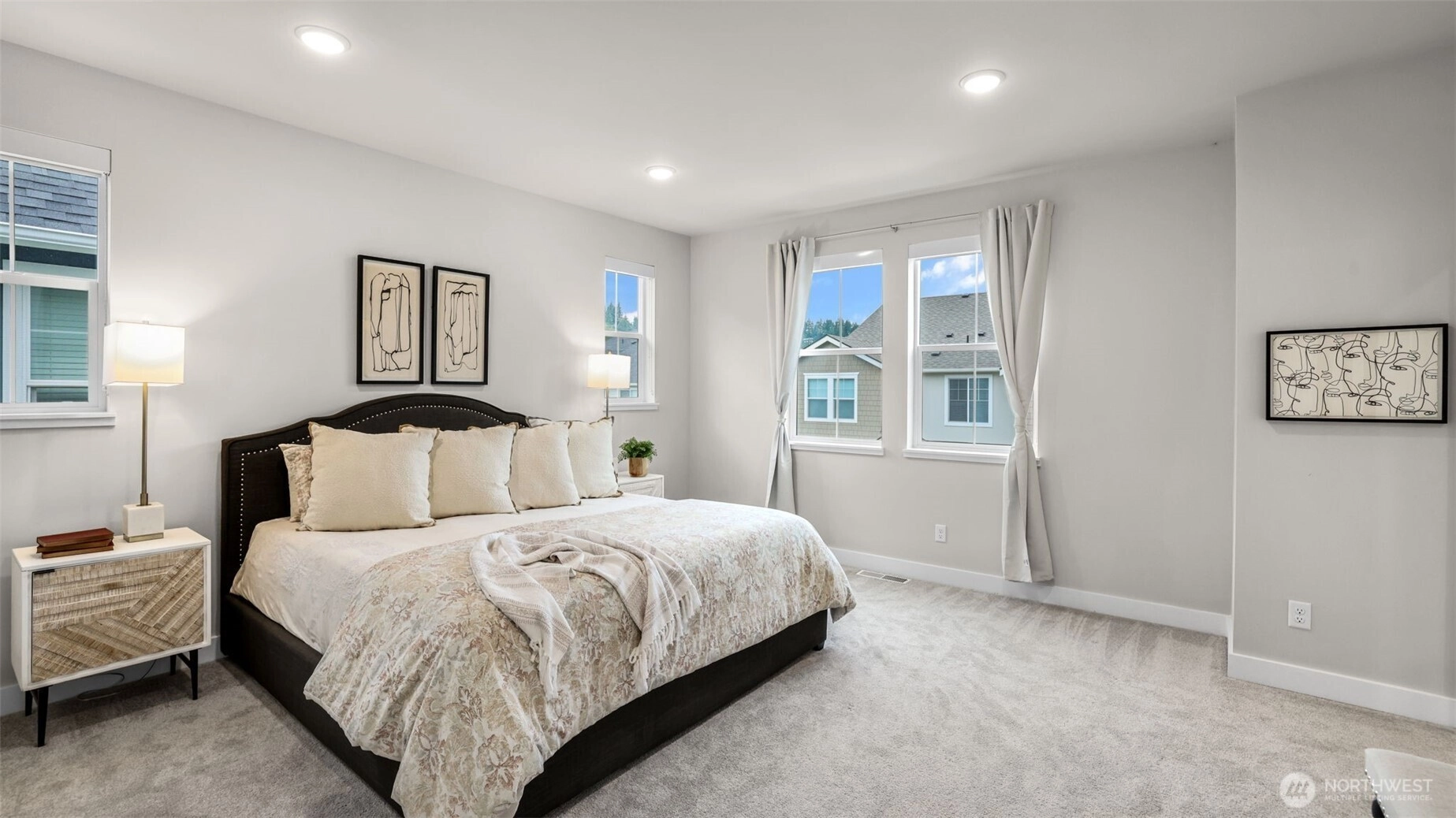 Charming nearly-new 3-bedroom Craftsman in River Trail at Elliott Farm! Light-filled open plan with modern kitchen featuring elegant white cabinetry with pull-out shelves & soft-close drawers, quartz countertops, large island with farmhouse sink, pantry, and stainless steel appliances including gas cooktop-ideal for entertaining. Spacious gathering and dining areas complete the great room. Main floor offers a private office; upstairs includes a spacious primary suite with luxurious bath, rain-dome shower, and walk-in closet, plus a bonus loft & convenient upstairs laundry. Central heating and cooling. Fenced yard ideal for pets & gardening. surrounded by green spaces w/nearby trails, golf, parks. Easy commute to Seattle, Bellevue, & SeaTac