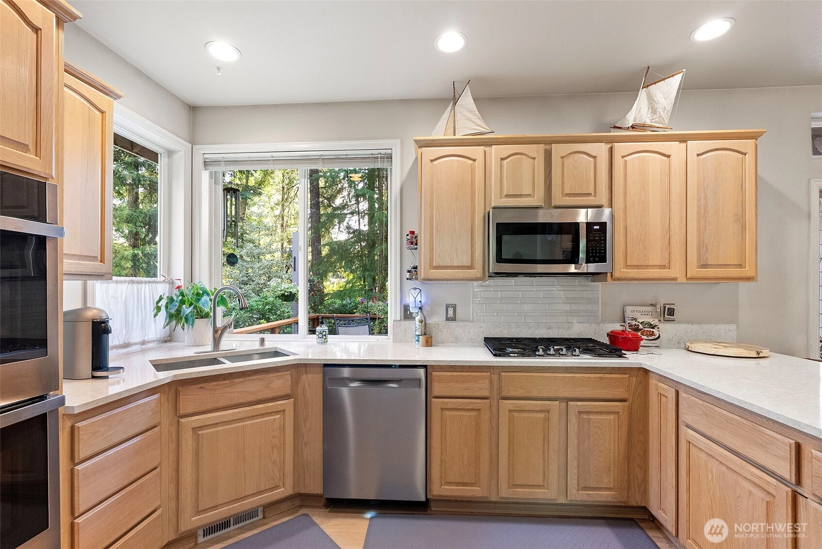 Move-in ready, one-level living that should not be missed! This beautiful McCormick Woods home has everything you've been searching for, with spacious formal living and family rooms, and a huge kitchen. Enjoy vaulted ceilings, expansive windows, and 3 fireplaces in the home, along with top-of-the-line stainless steel appliances. Retreat to the incredible Primary suite, with its own deck entrance, along with an attached bath with walk-in shower, large soaking tub, and walk-in closet. Relax with a BBQ from one of the two decks in the private, low maintenance backyard. Own a home-based business? Don't miss the HOA-approved office in the garage! This amazing home is just minutes to Hwy 3, Hwy 16, and the Bremerton and Southworth ferries!