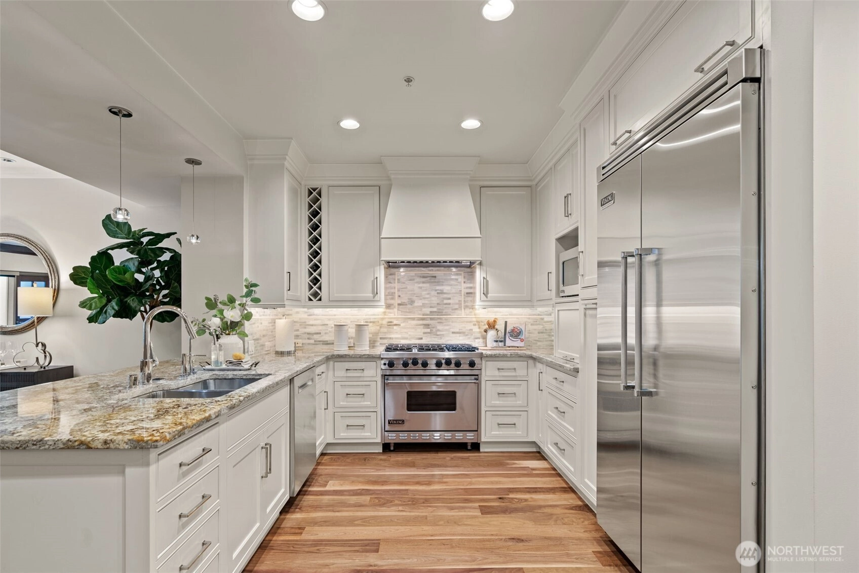 Live at the center of it all in this elegant downtown Bellevue townhome. Designed for comfort and sophistication, it offers a light-filled great room with high ceilings, custom window treatments and automated blinds, and a gourmet kitchen with Viking appliances. Entertain on your private patio or retreat to the primary suite with marble finishes and a custom walk-in closet. Additional highlights include a home office, a private elevator bringing you directly into the kitchen from your own 2-car garage, refinished hardwood floors and a brand new heat pump. Premium amenities include 24-hr concierge, owners lounge, fitness center and spa. Just steps to world-class shopping, restaurants, parks, and all Bellevue has to offer!