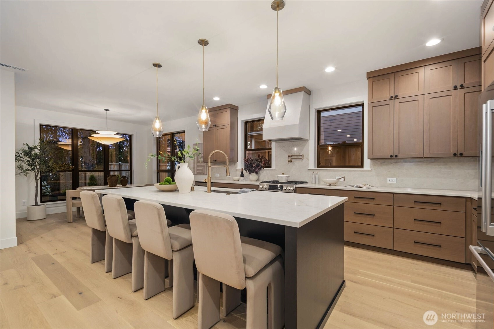 Luxurious custom built home in the heart of downtown Steilacoom. This home is 5 Bdrm 4.25 bath with an office on the main! Open concept floor plan w/ vaulted Entry & luxury engineered flooring throughout the home, beautiful gas fireplace in the living room area, designer kitchen w/ SS appliances, quartz counters & large island, tile throughout the bathrooms, Main-level guest suite with ¾ bath. Primary bedroom with a peekaboo view of the sound, its own 5pc bath with his and hers walk-in closets, 2 car garage, covered outside patio with fully fenced yard, also professionally designed landscaping with irrigation front and back yard.No HOA, located just minutes away from downtown, parks, beaches, coffee shops, and the Anderson Island ferry.