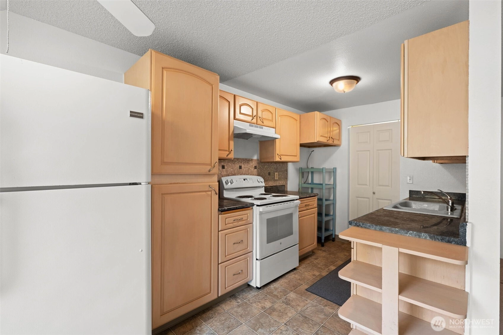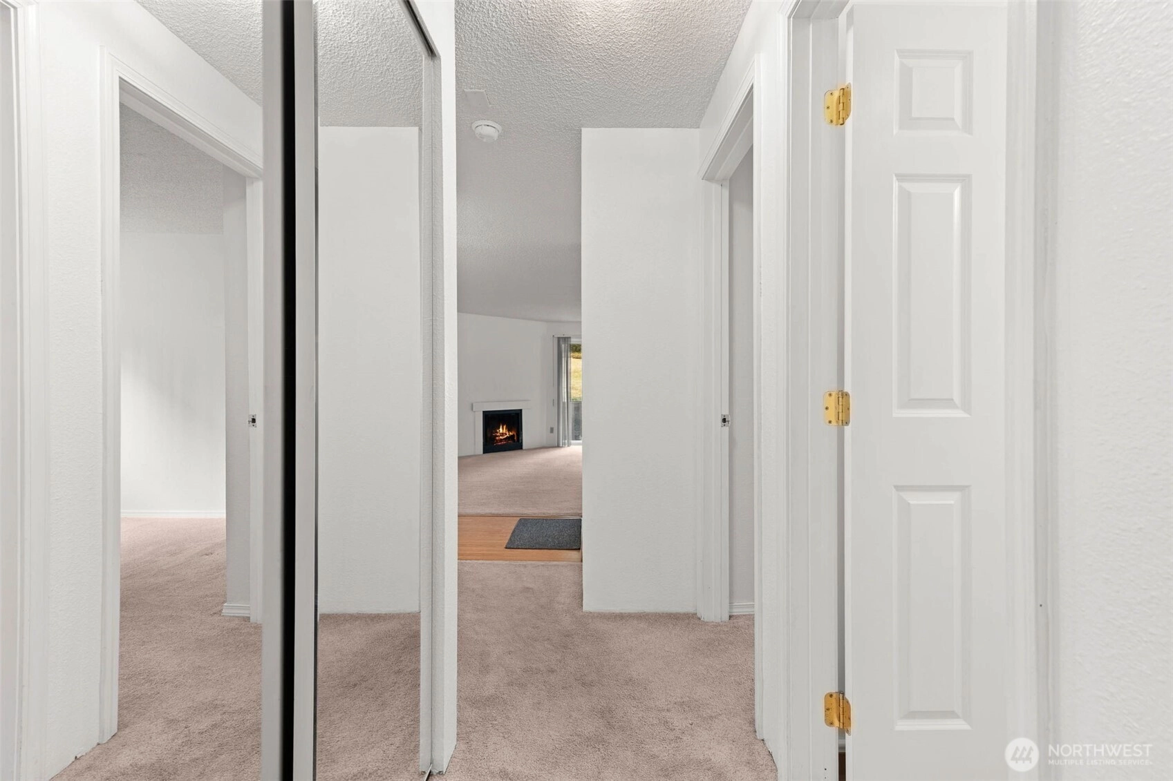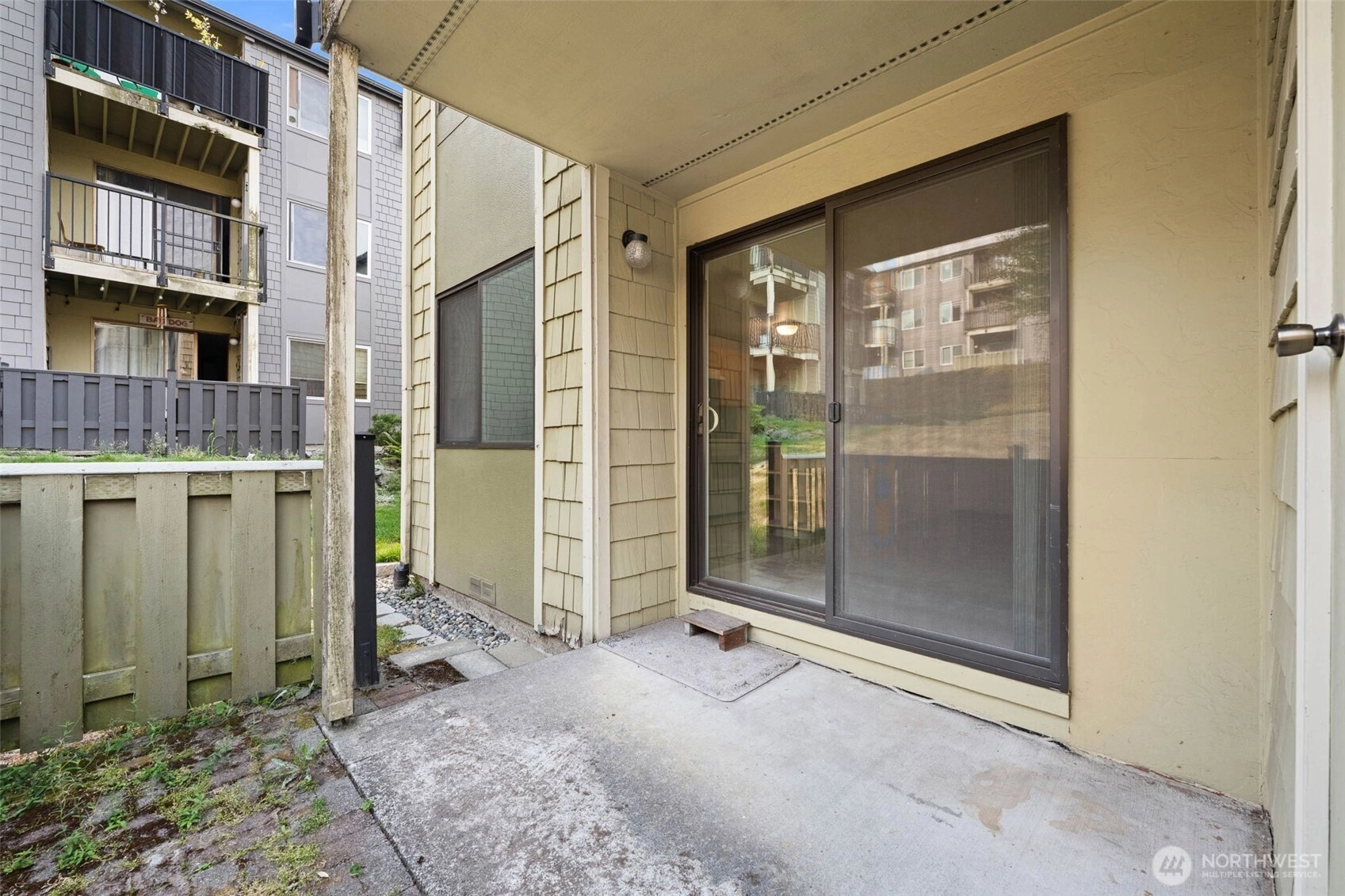 Bright and inviting one-level condo offering comfort and convenience all on the ground floor. The sizable primary bedroom includes double closets and an ensuite bathroom for privacy and ease. A spacious living room centers around a cozy fireplace, creating the perfect space for relaxation or entertaining. Step outside to the covered patio, ideal for morning coffee or year-round enjoyment. Conveniently located near schools, shopping, dining, 405, 167 and I-5. Low-maintenance living in a functional layout designed to fit today’s lifestyle! NO RENTAL CAP!