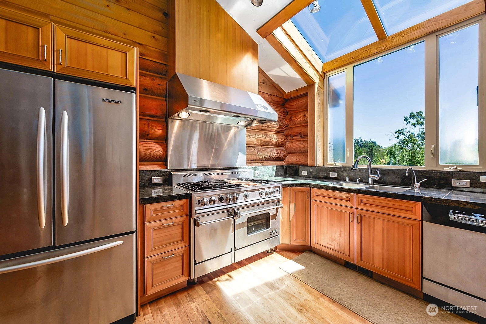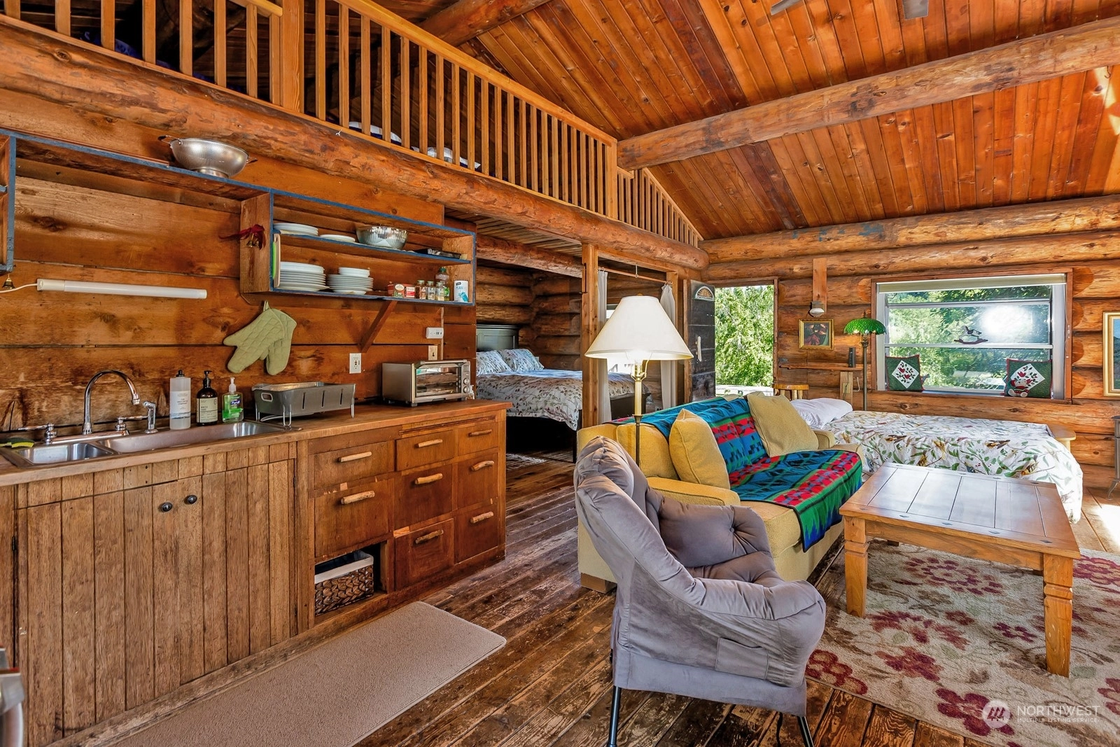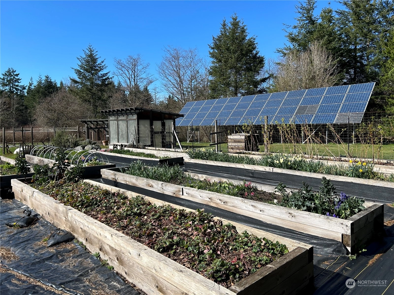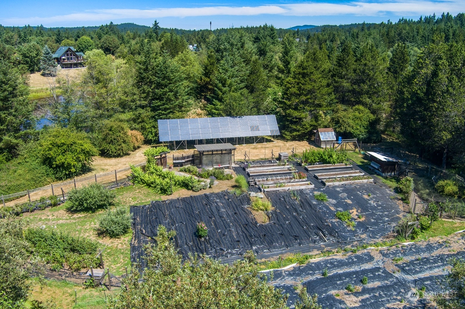 On the grid or off, your choice. Twelve outstanding deer-fenced acres, 1.16 mi from town center, with a custom 3080 sf home utilizing wood burls from Alaska, 675 sf log guesthouse with vacation rental permit, both overlooking the lake, 600 sf studio with bathroom, 140 sf studio, 550 sf detached garage, 3200 sf multipurpose shop with walk-in cooler, Starlink internet, 46 solar panels with bank of huge batteries, automated back-up generator, 2000 gallons of underground propane storage, large fruit and nut orchard, commercial garden including mature blueberry and raspberry bushes, a greenhouse, large chicken run, and a 2 acre lake. Commercial opportunity and/or completely self-sustaining if needed or desired. (See agent remarks for gate code.)