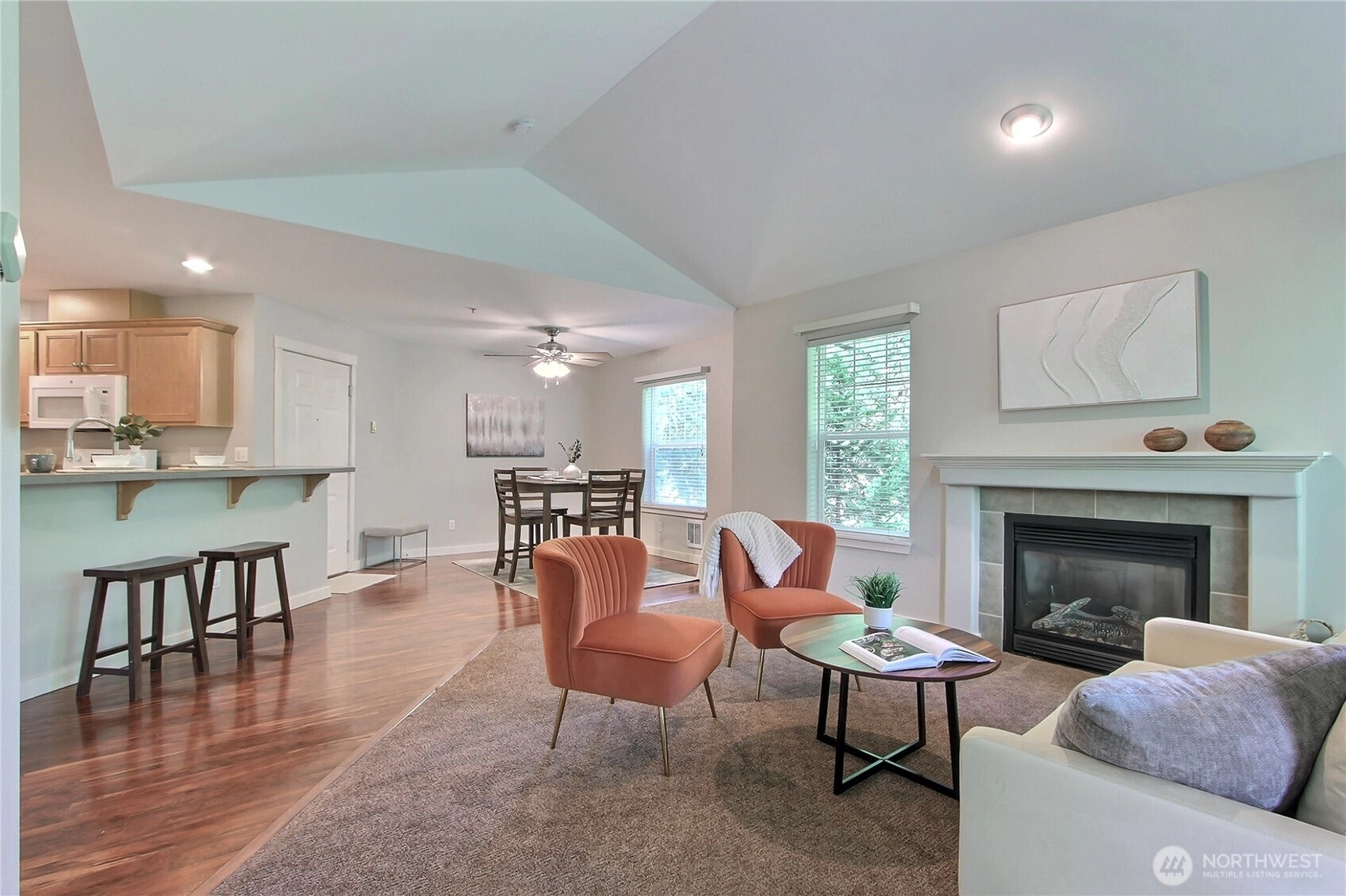 Great location in NW Landing/DuPont - Yehle Park Condominiums. Upper floor, corner end unit with amazing views of dedicated greenbelt from every window & from private, covered balcony. Kitchen features a raised breakfast bar, maple cabinets, newer dishwasher/stove/microwave. Vaulted ceilings enhance the spacious feel. Cozy gas fireplace. Spacious master suite with walk in closet. 3rd bonus room can be bedroom or office w/french doors. Separate utility room. Oversized one-car garage with additional storage area and a heated carpeted interior stairwell. Short stroll to downtown DuPont for coffee, library, dining. Enjoy all that DuPont has to offer, with parks, trails, playgrounds, and community activities with easy I-5 access.