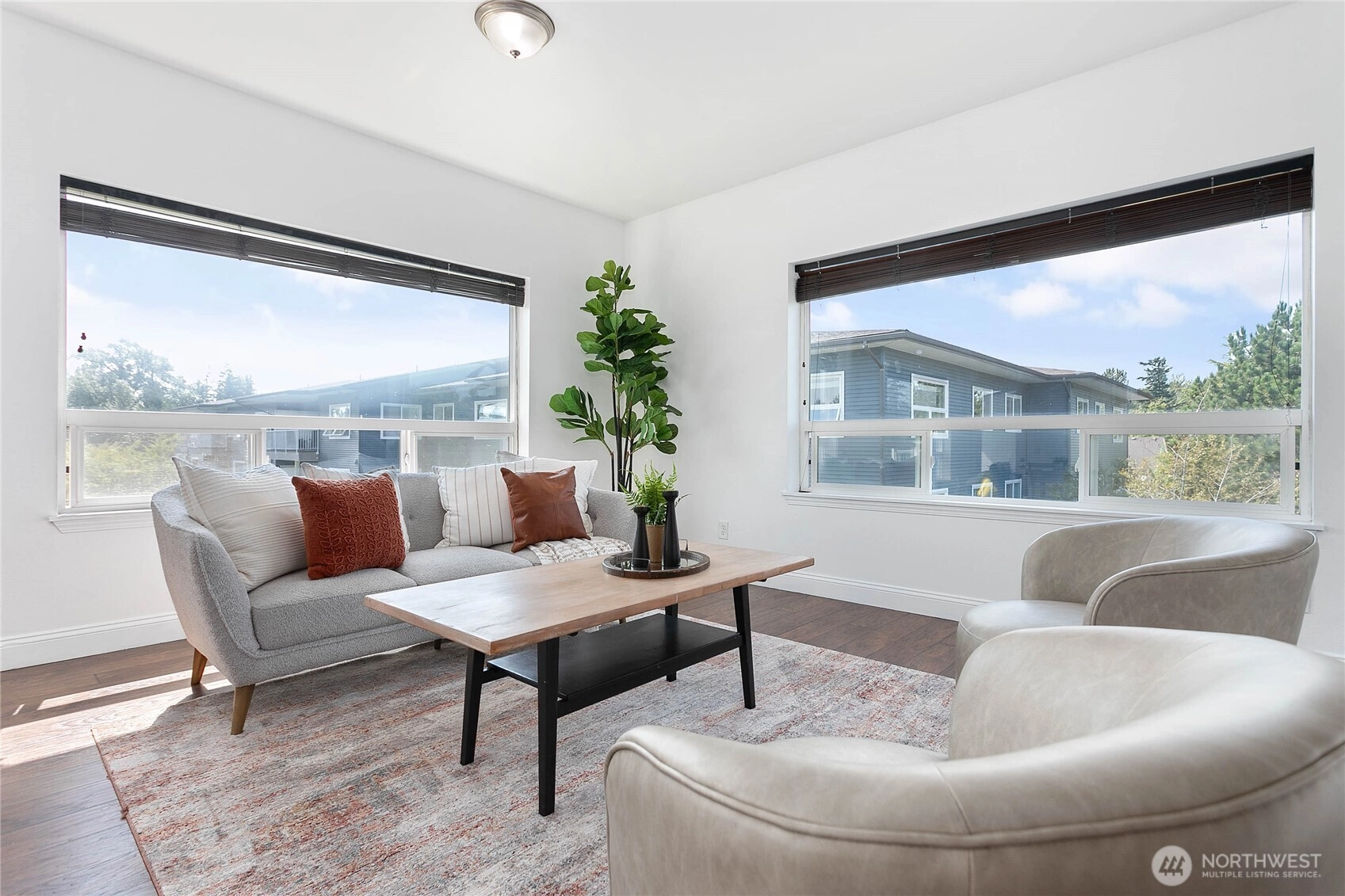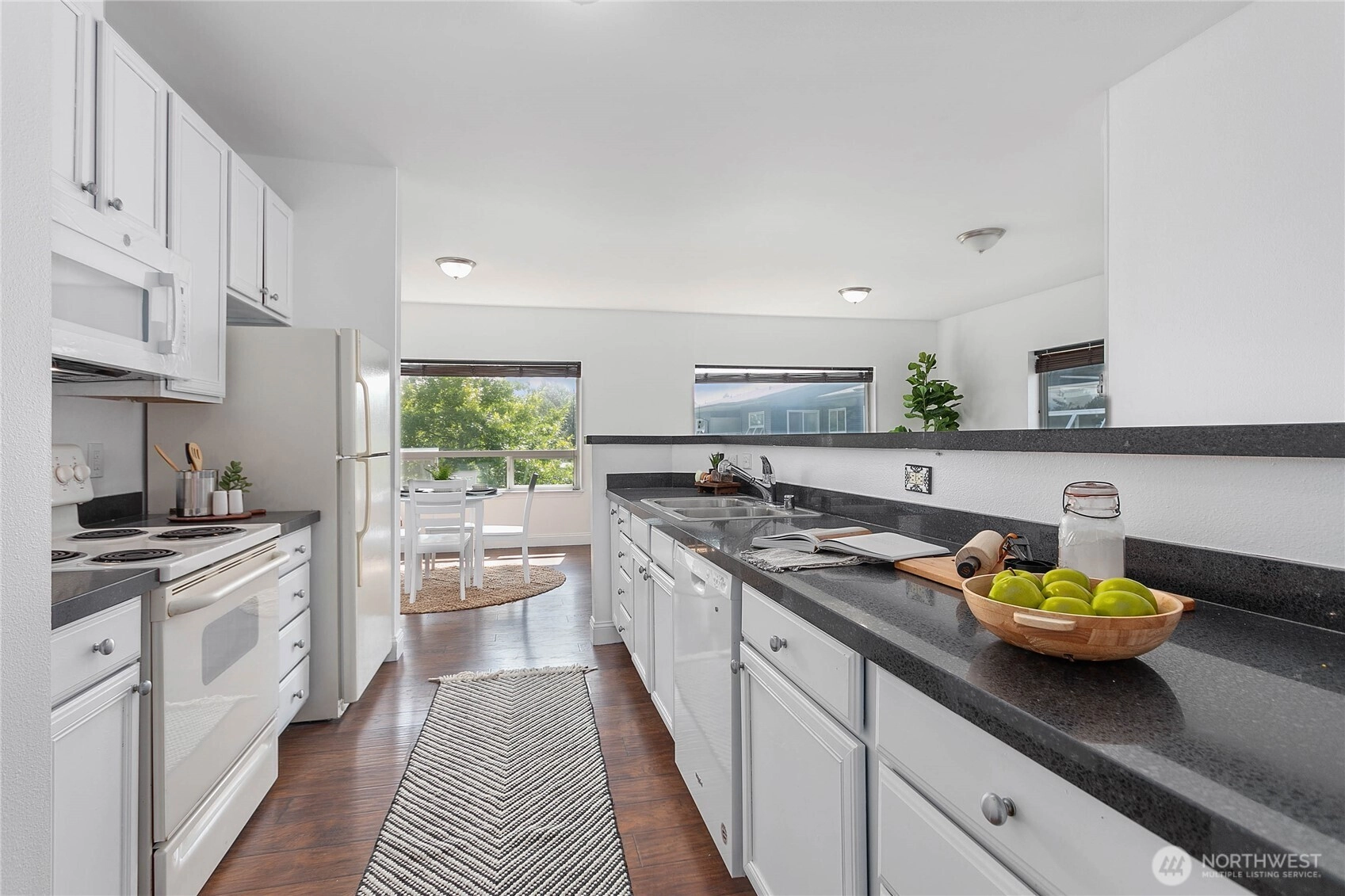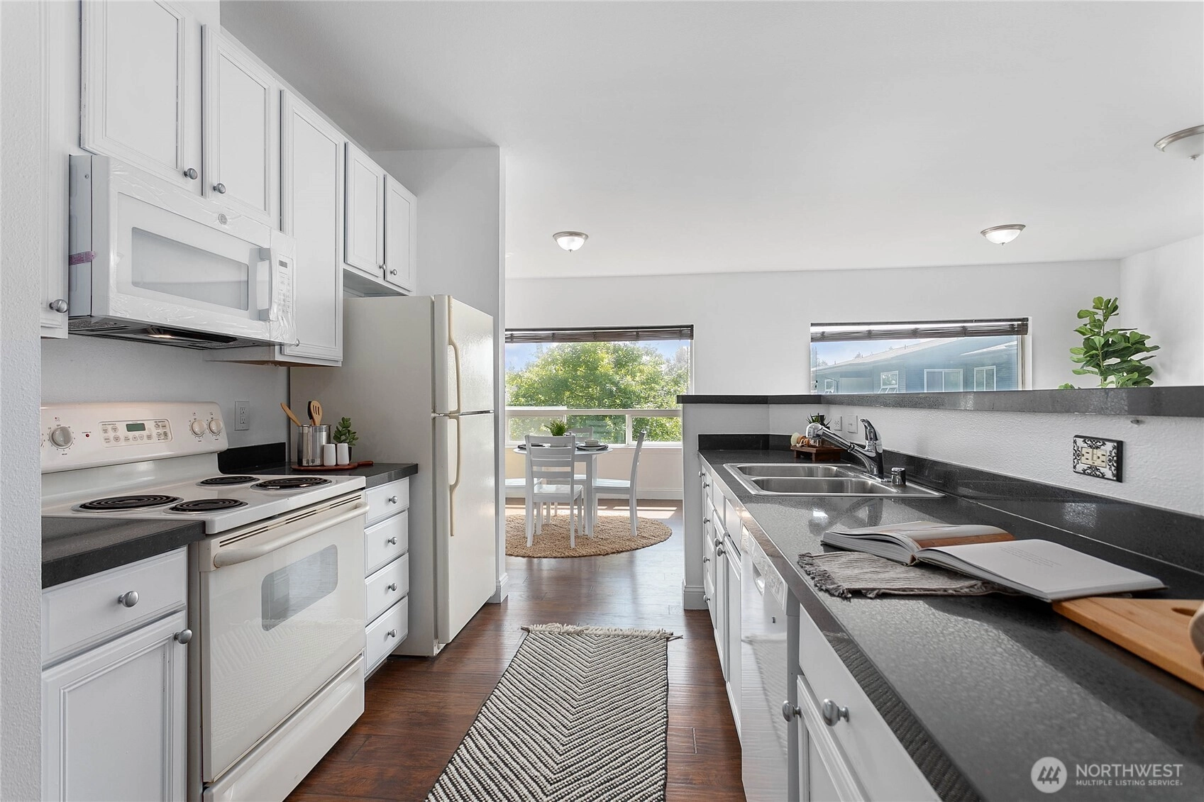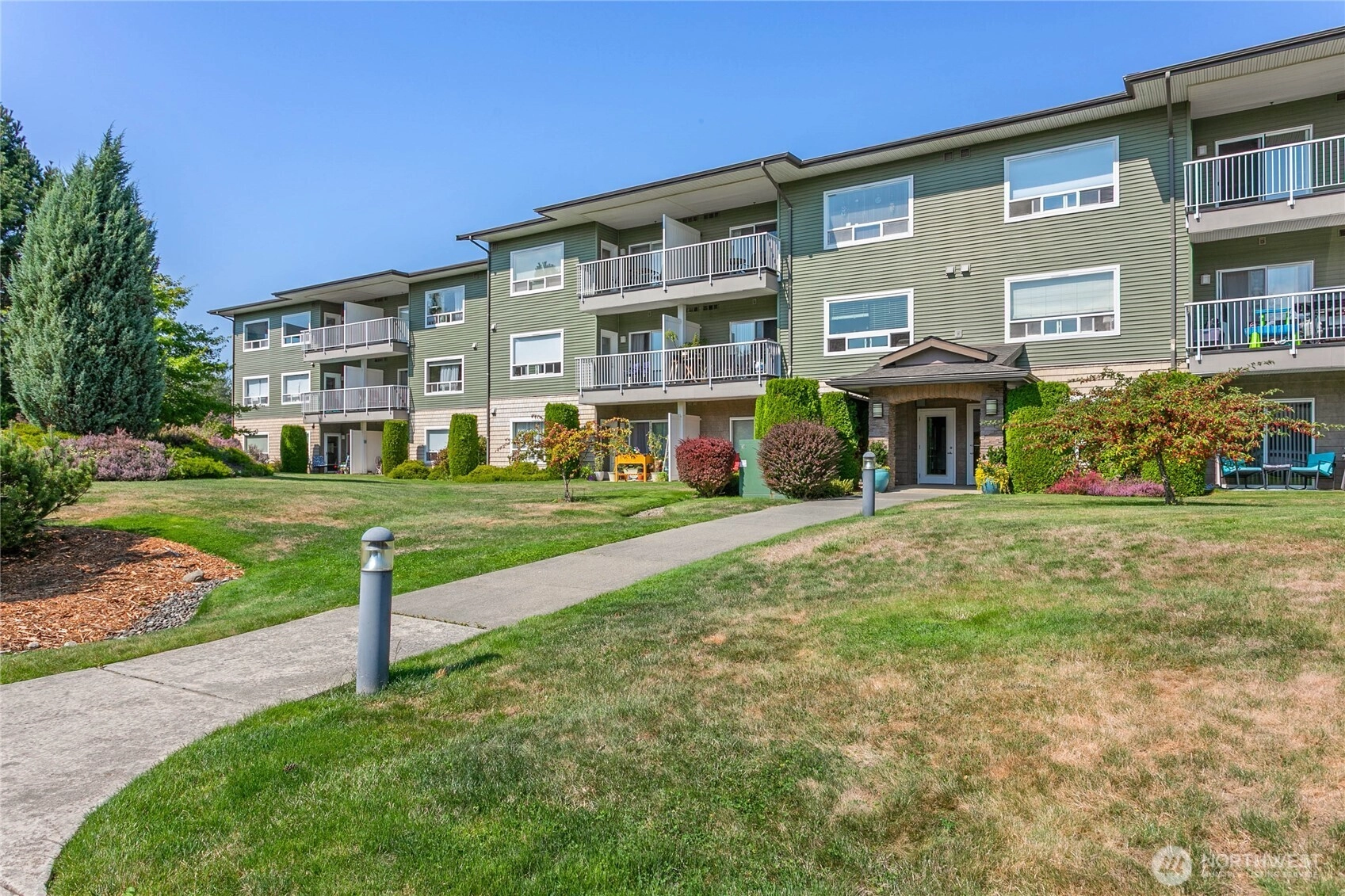 Imagine waking up in your bright, top-floor corner condo with courtyard views and sunshine streaming in. Freshly painted and thoughtfully laid out, this home makes space for the way you live. The spacious primary bedroom has fresh new carpet, bedroom 2 lives like a primary with its own ensuite, and bedroom 3 could be a perfect office, studio, or guest room. Step outside to enjoy nearby Cordata Park, trails, dining, shopping, and quick I-5 access. Everyday essentials like Costco, Trader Joe’s, WCC, and Bellis Fair are just minutes away. With HOA covering exterior maintenance, water, sewer, garbage, earthquake insurance, and snow removal, this home offers the perfect blend of low-maintenance living and Bellingham convenience.