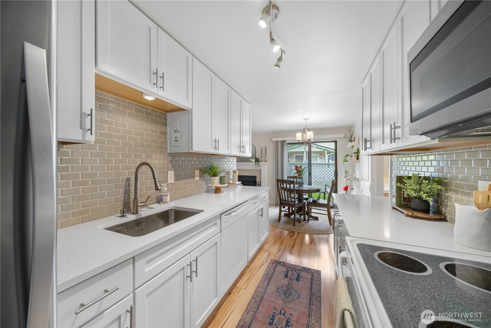 Tucked away in Bothell's Silver Creek community, this fully remodeled townhouse offers a rare attached garage & beautiful finishes throughout, close to 405 & I-5 for easy commute. The ideal 2-story floor plan makes wonderful use of space w/ no neighbors above or below for a home that lives & feels like its own private sanctuary. Striking aesthetic w/ shaker cabinets, quartz countertops, subway tile & durable laminate flooring. Enjoy morning coffee on the peaceful patio w/ views of the greenbelt. Upstairs find full size in-unit laundry, a spacious primary bedroom w/ large closet & exquisite main bathroom that boasts decorative shelving & designer touches. Abundant storage in the 1-car garage w/ built-in cabinets. Pets welcome & no rental cap
