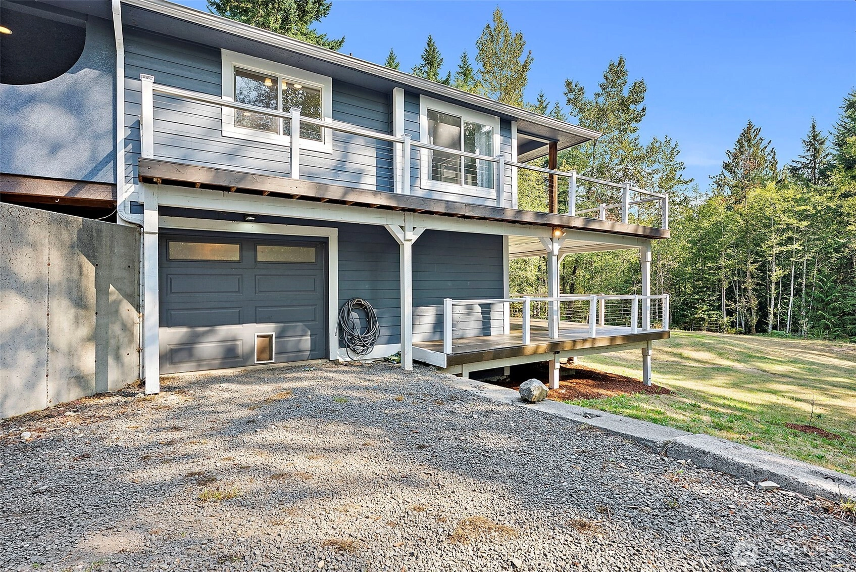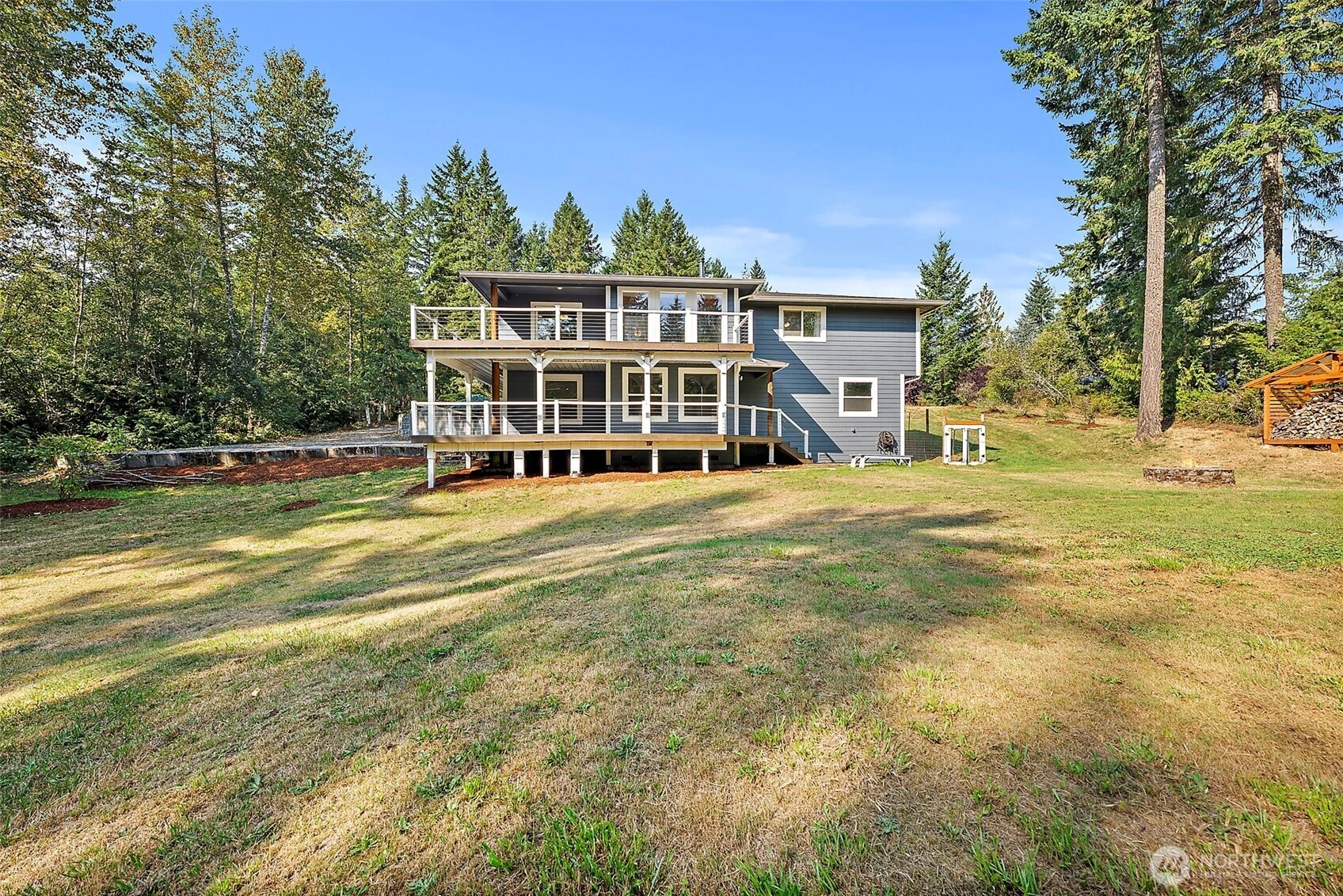 This bright 2.5 acre Seabeck property, 12 miles from Silverdale offers privacy and the lifestyle you are looking for. A main-floor primary bedroom & view of all of your acreage; Norwegian sourced counters in kitchen with knotty pine cabinets and stainless appliances; two covered decks. Private park-like trails, seasonal creek, fruit trees (apple, cherry, pear, blueberry). Instant whole-house hot water, back-up generator, central A/C & heat pump, top-tier wood stove. Desirable fiber optic internet & cell booster. Large attached workshop, garage with shelving, RV/boat parking w/ 30 amp hook-up, zero-point mower stays, and stocked wood shed just in time for the winter. Located in in the beloved Klahowya & Green Mountain CK school district.