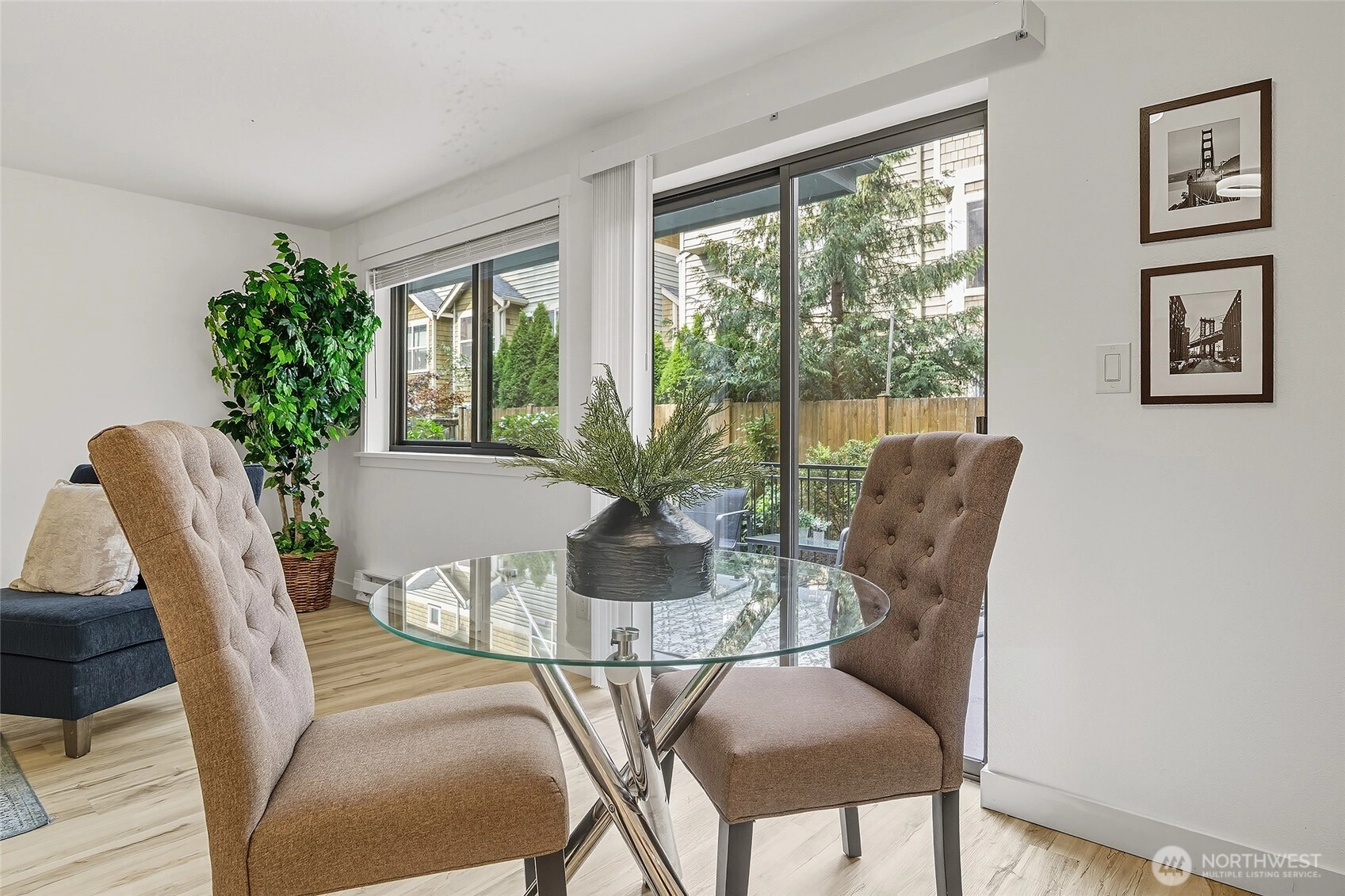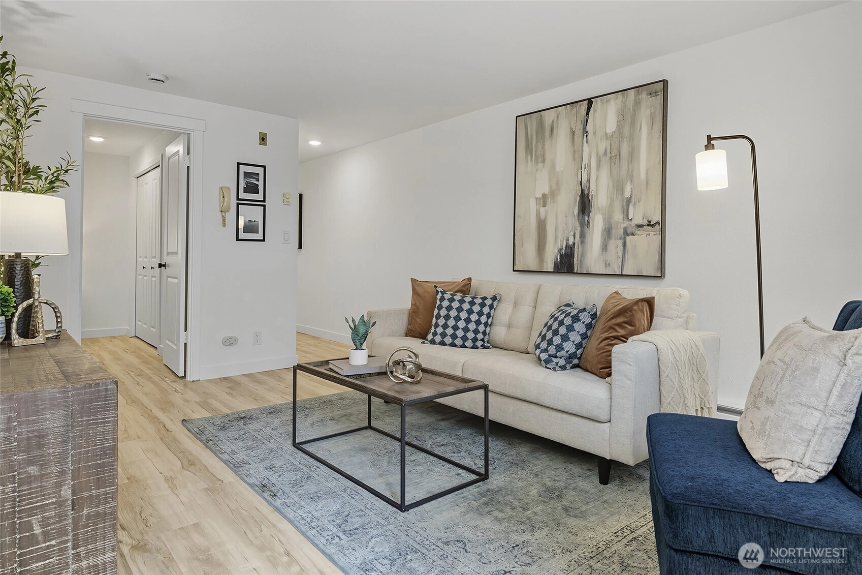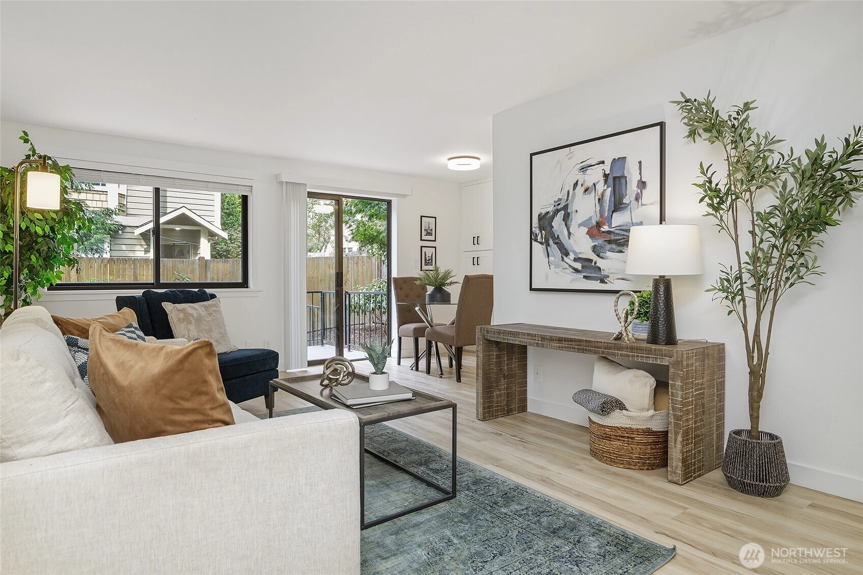 Charming move-in ready condominium in a prime Ballard location! Experience the best of in-city living in this beautifully renovated first-floor unit, conveniently located near shops, restaurants, parks and transit. Thoughtfully refreshed for today’s lifestyle, this home features: new laminate flooring, fresh interior paint, fully remodeled kitchen w/sleek appliances, brand new washer/dryer, hot water heater and blinds, and newer energy-efficient windows for year-round comfort. Step outside to a private patio w/direct access to the common area backyard and garden area-perfect for relaxing. Additional perks include secure garage parking and dedicated storage. Do not miss this opportunity to live in one of Seattle’s most vibrant neighborhoods!