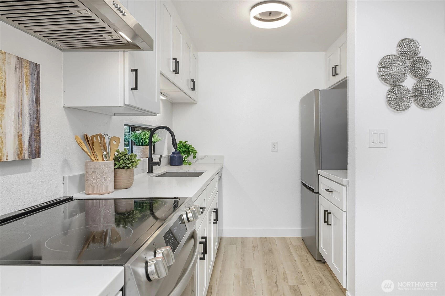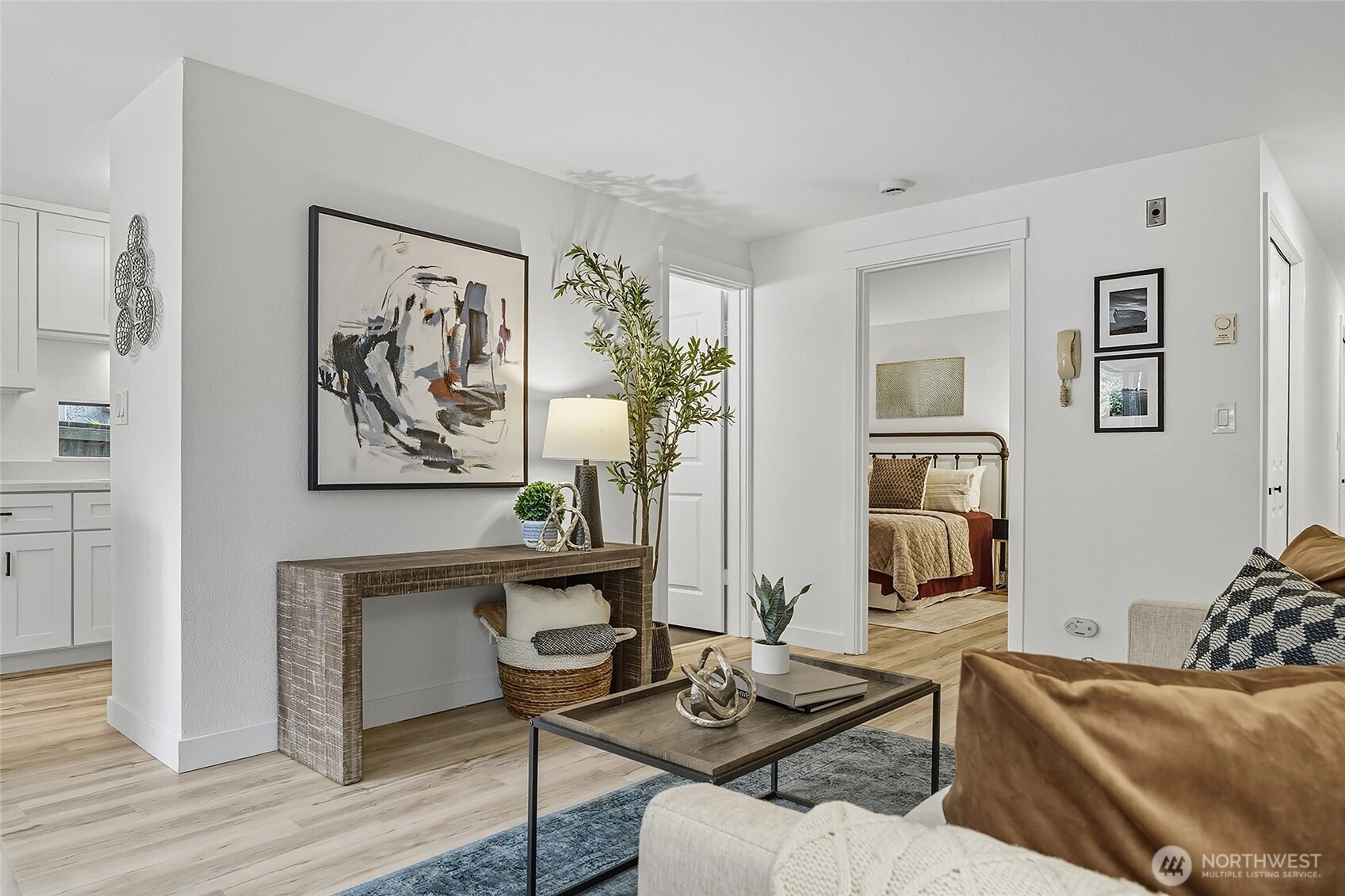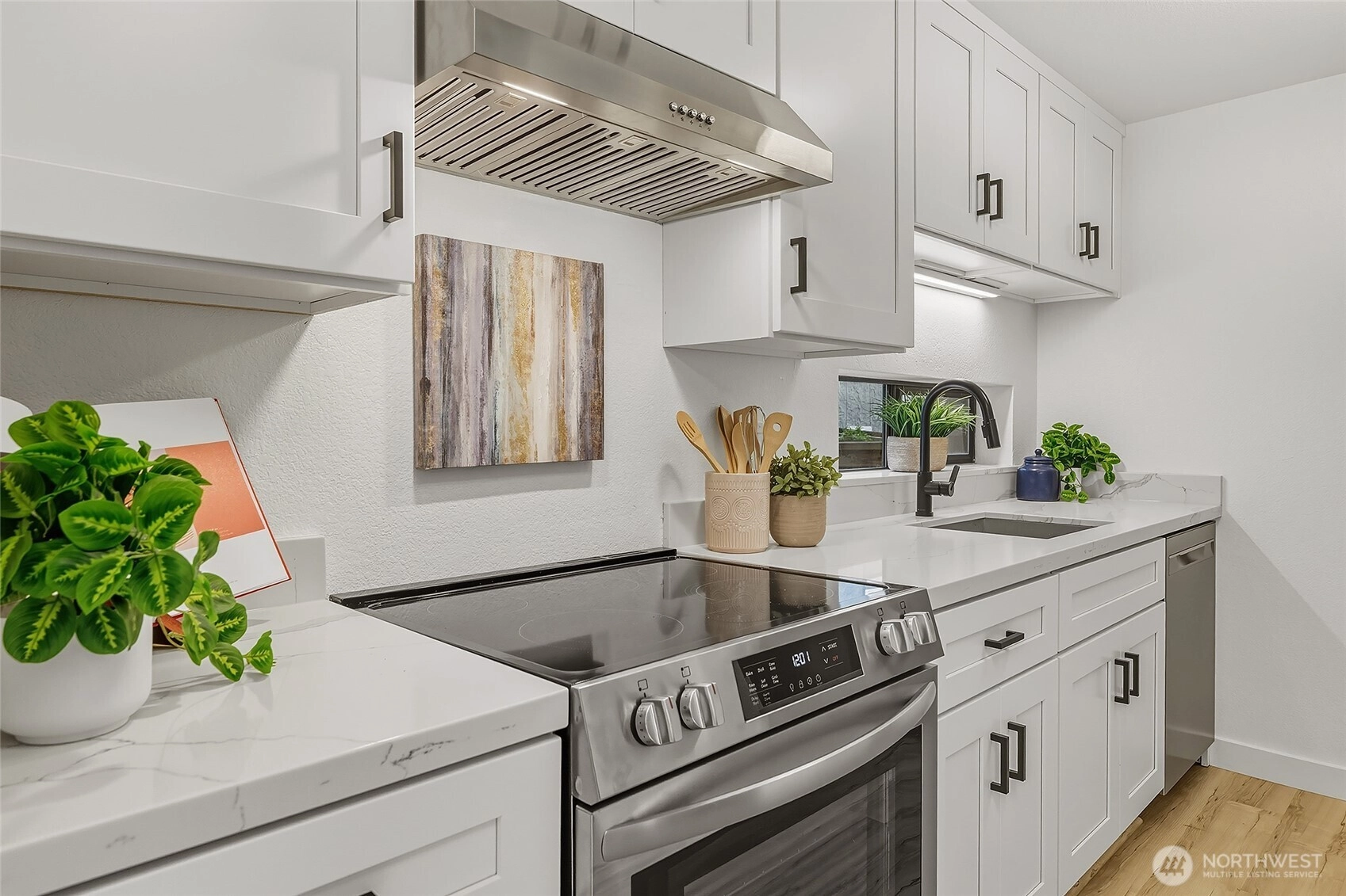Charming move-in ready condominium in a prime Ballard location! Experience the best of in-city living in this beautifully renovated first-floor unit, conveniently located near shops, restaurants, parks and transit. Thoughtfully refreshed for today’s lifestyle, this home features: new laminate flooring, fresh interior paint, fully remodeled kitchen w/sleek appliances, brand new washer/dryer, hot water heater and blinds, and newer energy-efficient windows for year-round comfort. Step outside to a private patio w/direct access to the common area backyard and garden area-perfect for relaxing. Additional perks include secure garage parking and dedicated storage. Do not miss this opportunity to live in one of Seattle’s most vibrant neighborhoods!