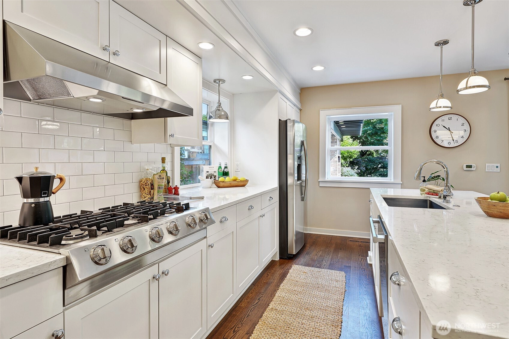 This gorgeous Queen Anne Hill home is an entertainer’s dream! Built in the 1920s and then reimagined, expanded, & completely updated from the ground up in 2017. Main floor features gracious circular floor plan with abundant windows & a modern chef's kitchen adjoining the patio & back yard oasis. Three bedrooms upstairs, including a spacious primary suite w/ fireplace, walk-in closet, and spa bathroom. Top floor attic is a finished flex space with vaulted ceilings. Lower-level rec room offers a fourth bedroom ensuite, perfect for guests. Nestled in one of the hill's best streets--peaceful & neighborly, yet just minutes to sought-after urban amenities, shops, & some of Seattle's highest rated public and private schools. Move in and enjoy!
