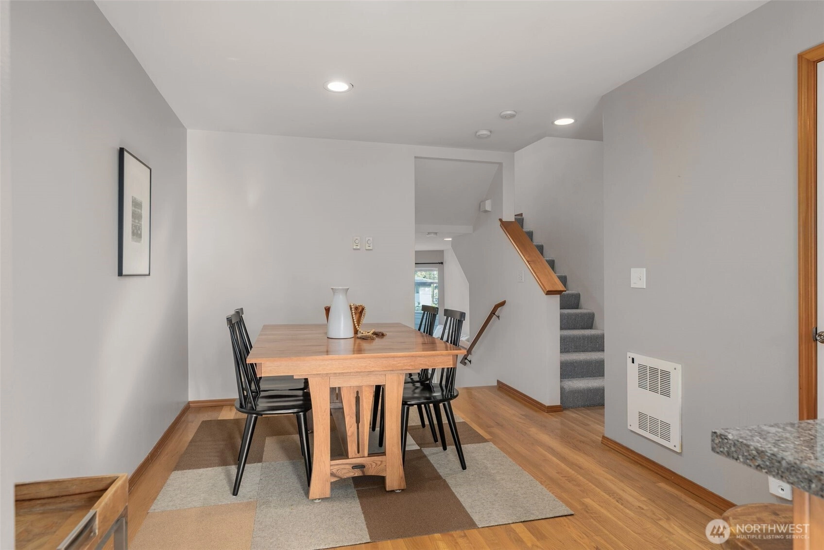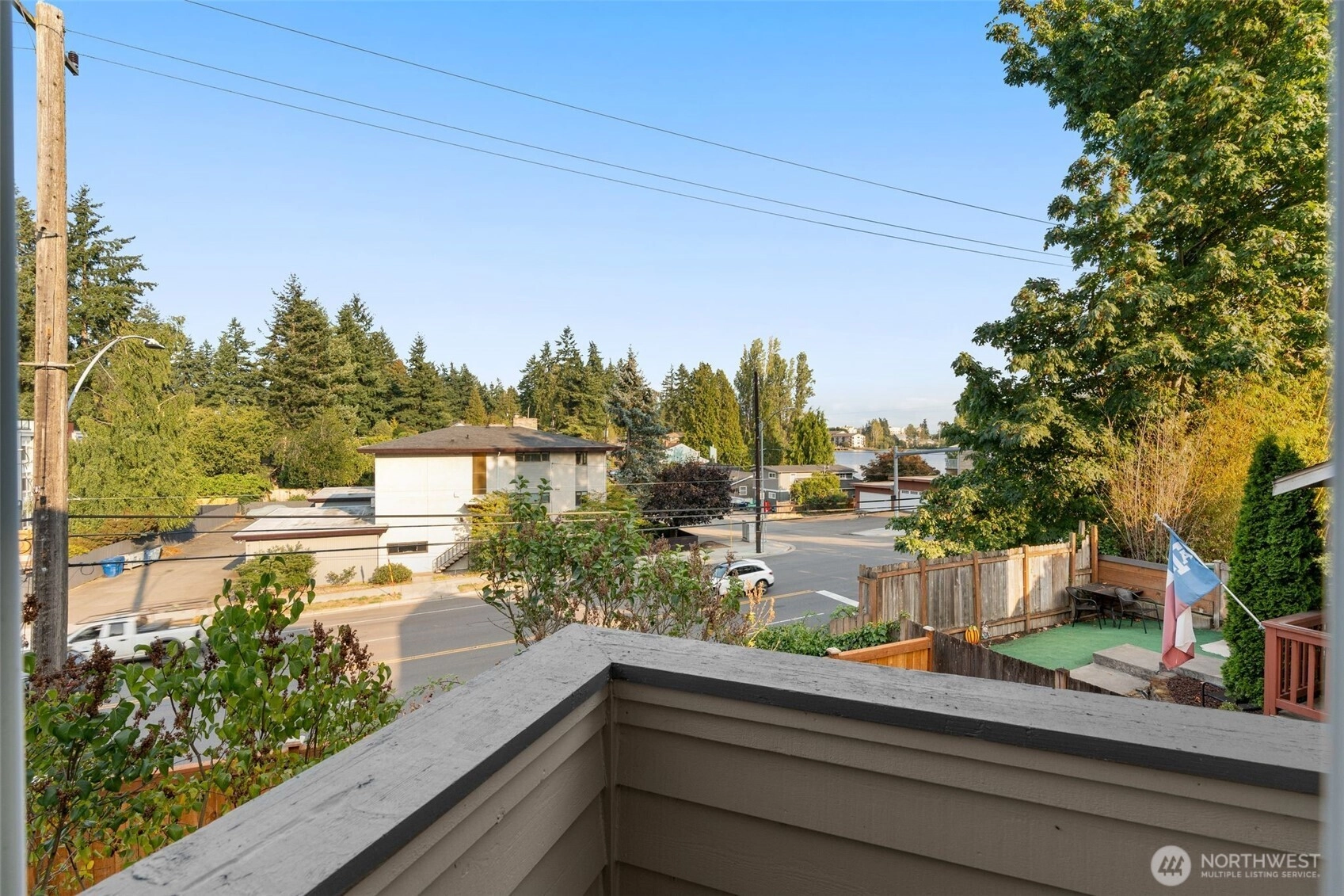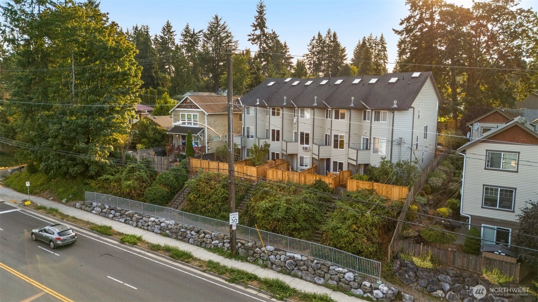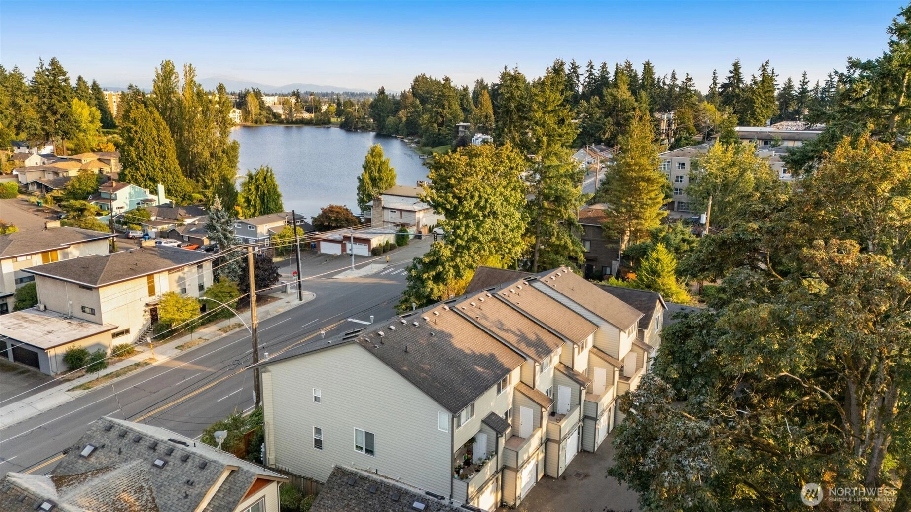 Built in the golden age when they used real wood flooring & trim and designed enormous, flexible floorplans. View of Bitter Lake, just a few blocks away (kayaking!). Slab counters & gas cooking in the kitchen (w/grilling deck). Dining area holds a huge table. Generous living room w/gas fireplace & view balcony. Top flr primary suite w/5-piece bthrm. Second bdrm has lake view. Ground-level bdrm has bthrm & exterior access (for guests/roommates). Tons of storage. A bathroom on each level. New exterior paint, tankless h/w, flooring, fencing and EV charging port. Fenced garden/yard. One-car garage. Hop the bus to light rail (Pinehurst station coming 2026!). Mins to Trader Joe's, Town & Country, bike paths, trails, pickleball & more. No HOA/dues