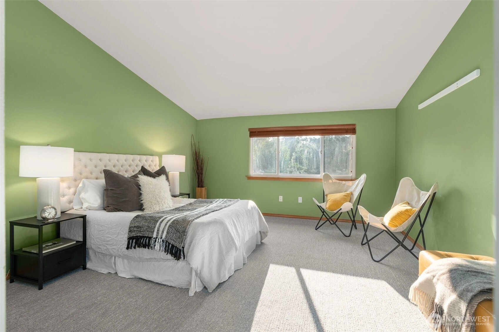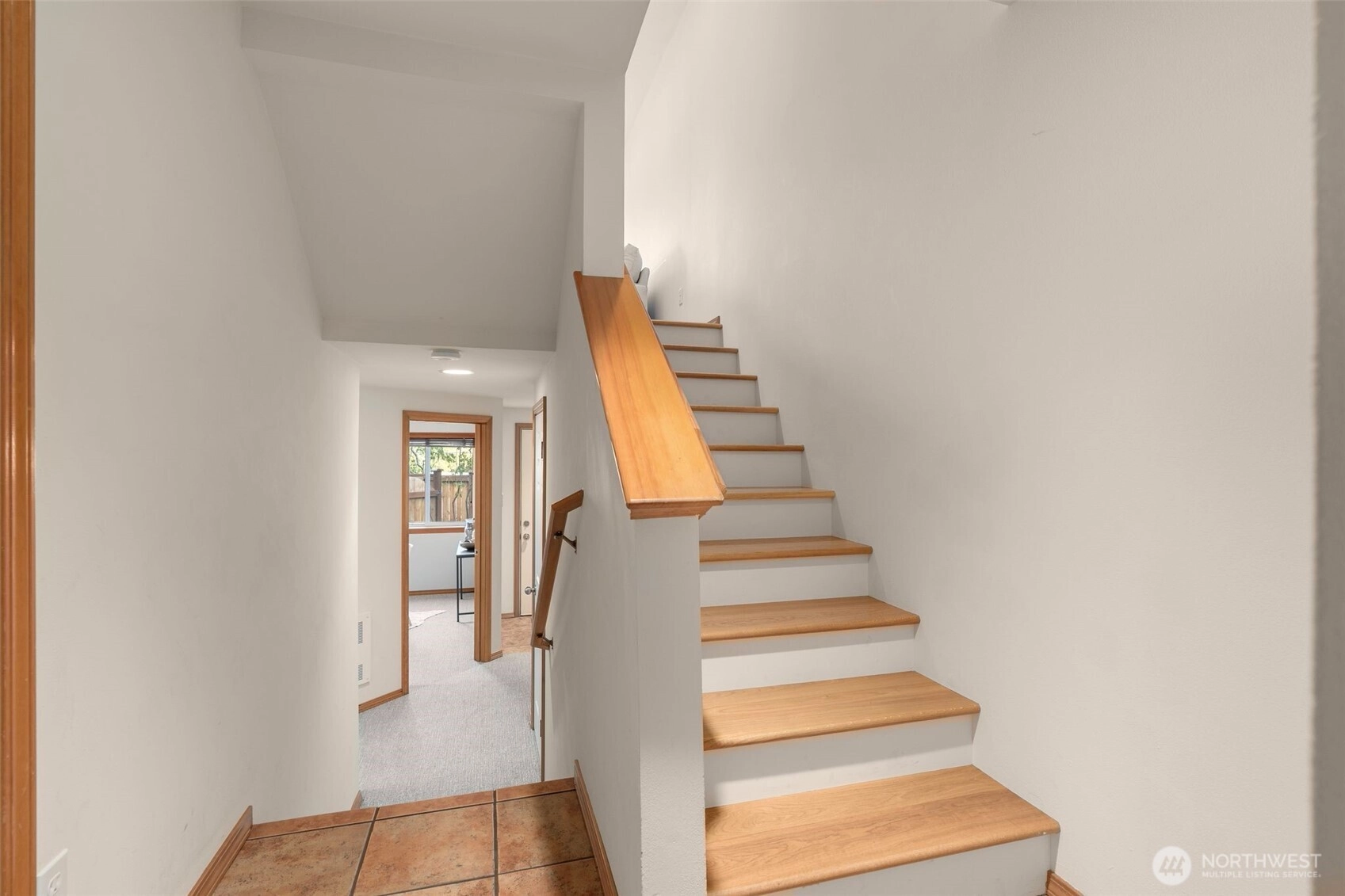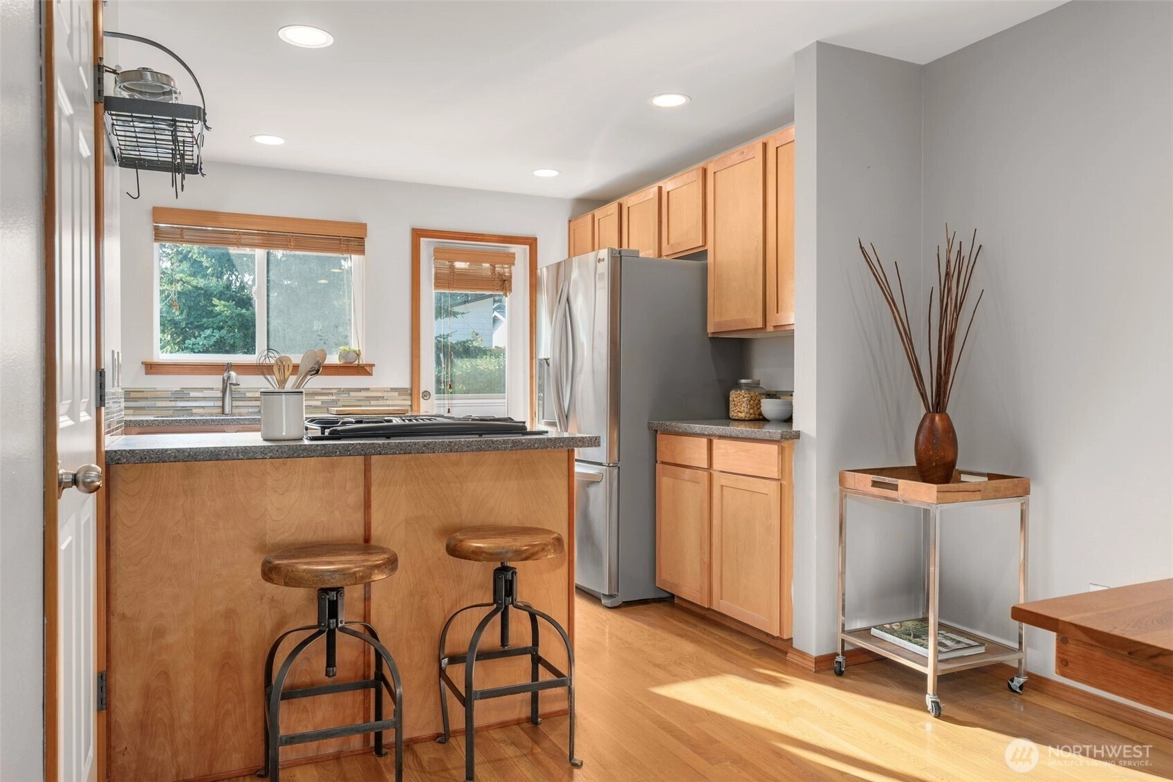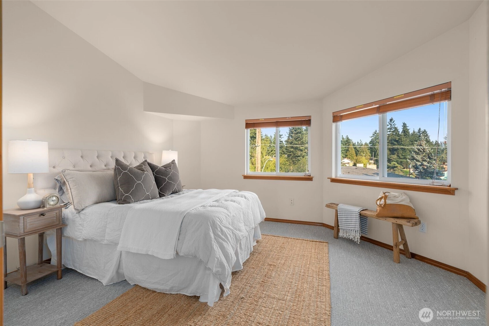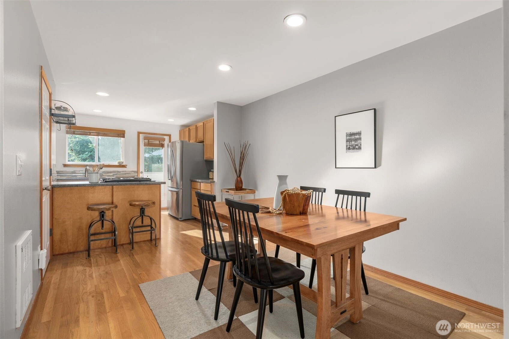 Built in the golden age when they used real wood flooring & trim and designed enormous, flexible floorplans. View of Bitter Lake, just a few blocks away (kayaking!). Slab counters & gas cooking in the kitchen (w/grilling deck). Dining area holds a huge table. Generous living room w/gas fireplace & view balcony. Top flr primary suite w/5-piece bthrm. Second bdrm has lake view. Ground-level bdrm has bthrm & exterior access (for guests/roommates). Tons of storage. A bathroom on each level. New exterior paint, tankless h/w, flooring, fencing and EV charging port. Fenced garden/yard. One-car garage. Hop the bus to light rail (Pinehurst station coming 2026!). Mins to Trader Joe's, Town & Country, bike paths, trails, pickleball & more. No HOA/dues