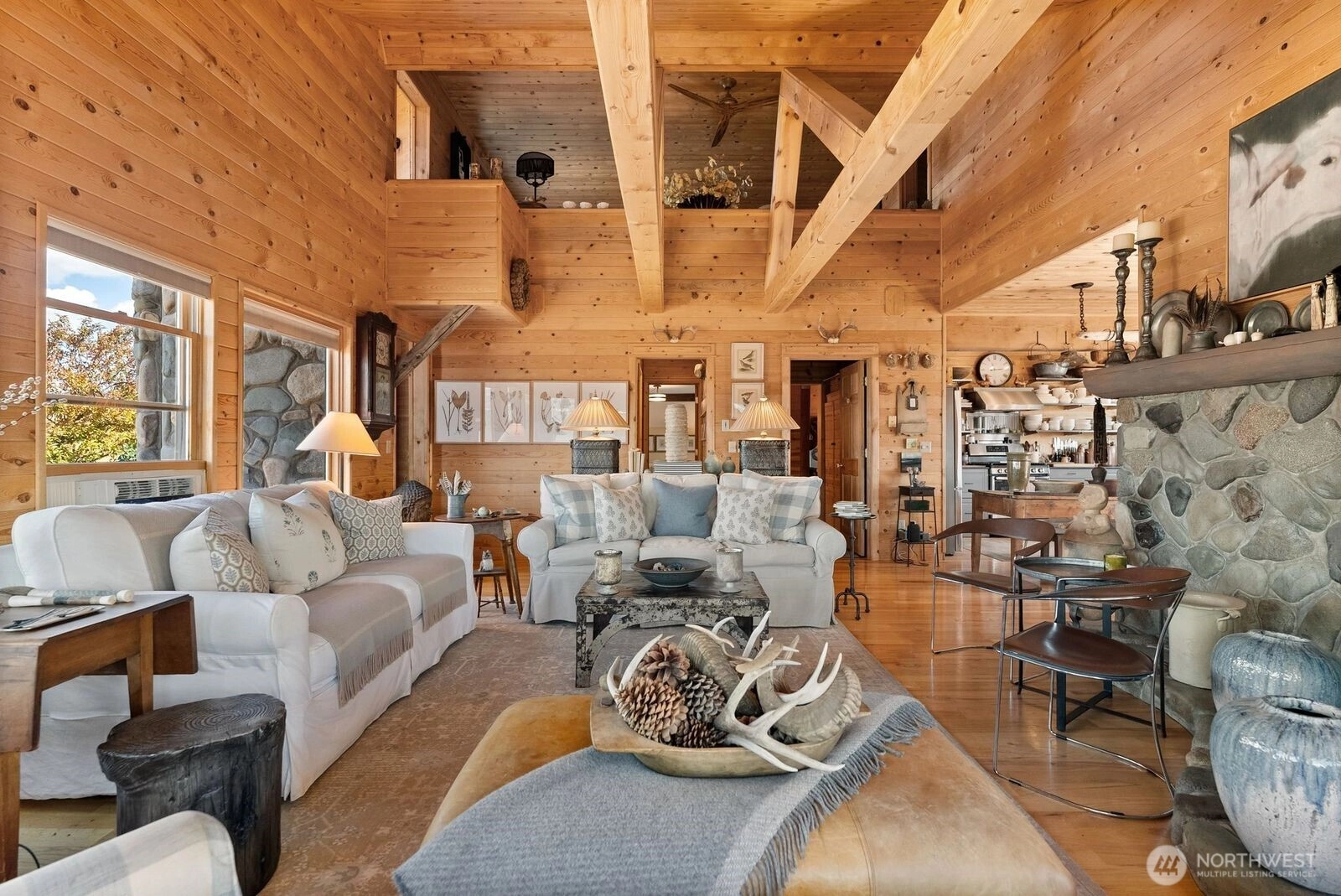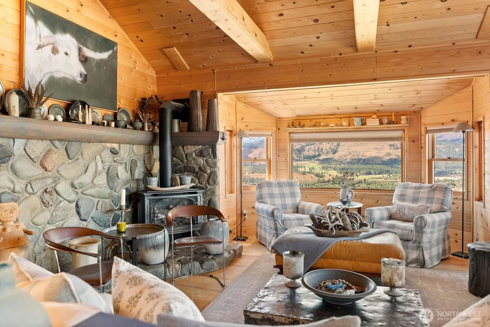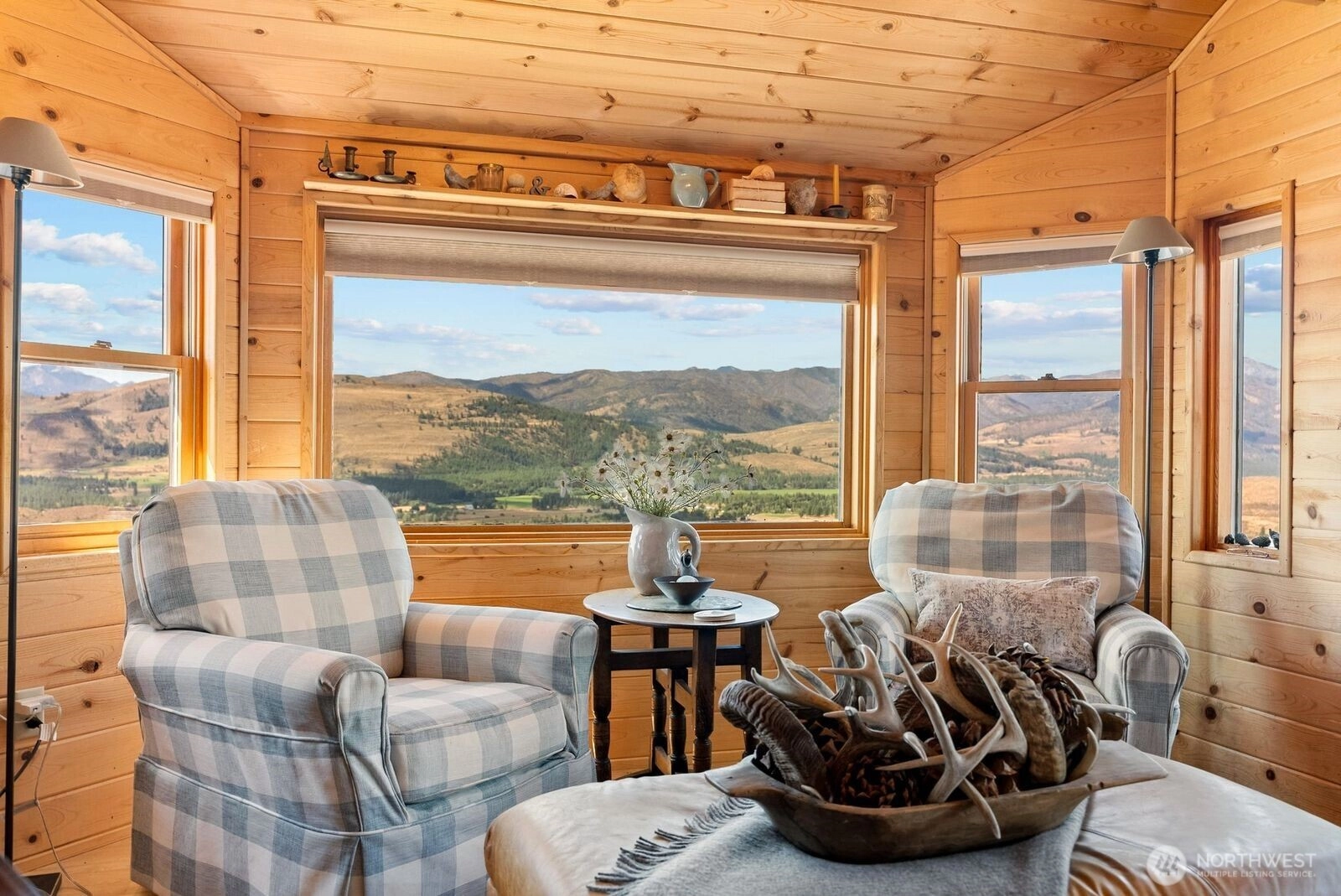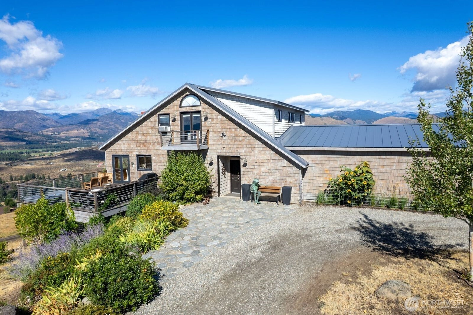 Premium Luxury 3,637 sf Craftsman in Winthrop. Mountaintop 3 bed & 3 bath Home on 5 Acres. Enjoy North & South wood decks, Gardens, Spa, outdoor fireplace, Barn, shop and more! Beautifully crafted inside and out. Stunning skyline of the North Cascade Mountain views from every window of this home. Chefs Kitchen, Stone & wood Dining room, Hardwood floors, vaulted great room ceilings reflect the warmth and glow of Stone hearth and fireplace. Bonus Sun Room exudes deep relaxed comfort. Rock encrusted turret accommodates carpeted stairs to each level of this home. Walkout daylight basement has 2 well appointed bedrooms and full Bath. Upper Primary Bed ensuite bath & balcony, walk-in Closet, Laundry. Loft Den/office. Built-in drawers. Sauna/Spa.