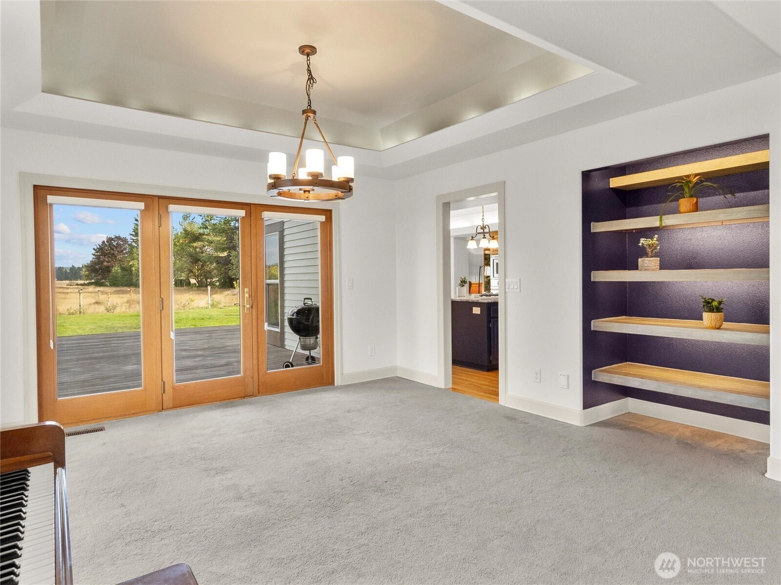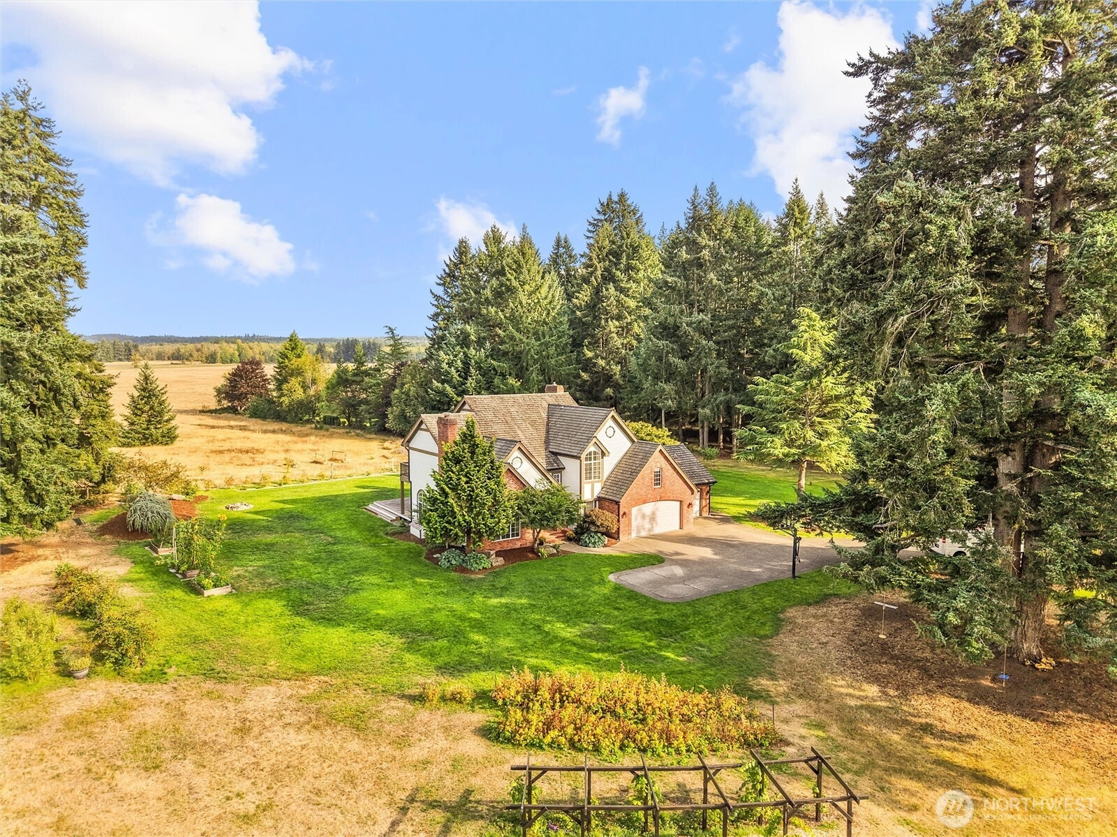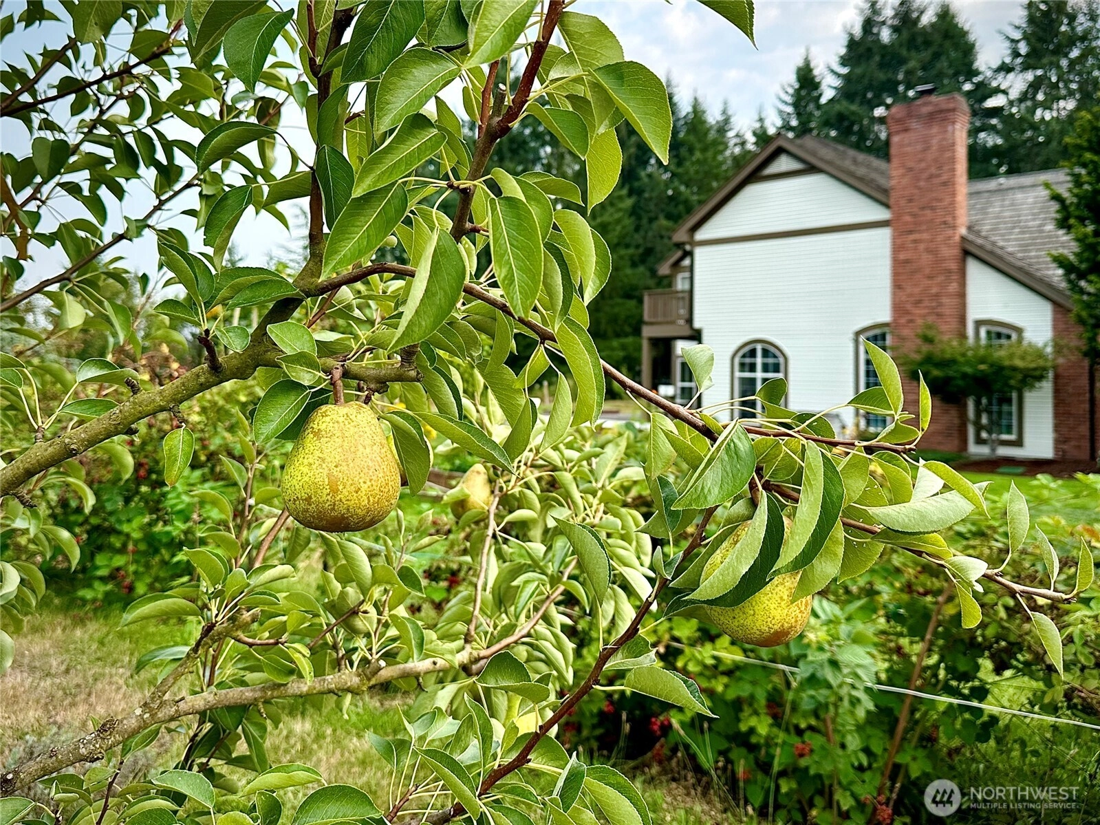 New Price! Welcome to this thriving homestead with the perfect blend of traditional charm & modern amenities. Live off the land w/ sustainable farm-life on this 3.6 acre property nestled in a gated neighborhood surrounded by country simplicity. Gorgeous 2899 SqFt home invites you into a great room w/ cathedral ceilings, brick fireplaces, formal dining, open chef's dream kitchen & 4 spacious rooms upstairs including primary suite with jetted tub, 2 large closets & french-doors w/ balcony. Custom Brazilian hardwood deck & manicured grounds are perfect for entertaining w/ stunning views of Mt Rainier. Stoll through carefully curated groves, gardens & orchards bearing 13 kinds of fruits. Fenced pasture area and barn/shop with power for hobbies.