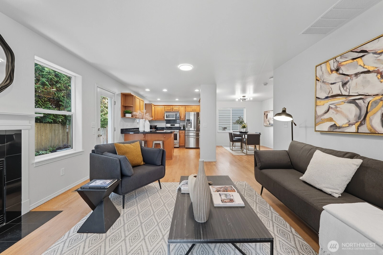 Magnificent Mountlake Terrace home full to the brim with northwest charm. Loved and maintained beautifully with new interior and exterior paint, carpets and more. Enjoy the open and spacious main floor. Gorgeous hardwoods throughout. The living, kitchen dining area function flawlessly and flows out onto a brand new patio and garden. A private peaceful retreat or venue for gatherings. Upstairs family room landing is perfect for play or comfort. Large primary bedroom and bath invites rest and relaxation. Storage abound from the 2-car garage to the abundance of closets and cabinets. Conveniently located near parks, schools, and I-5 for easy commuting. Easy going HOA is hassle free. It's rare that a house so effortlessly feels like home.