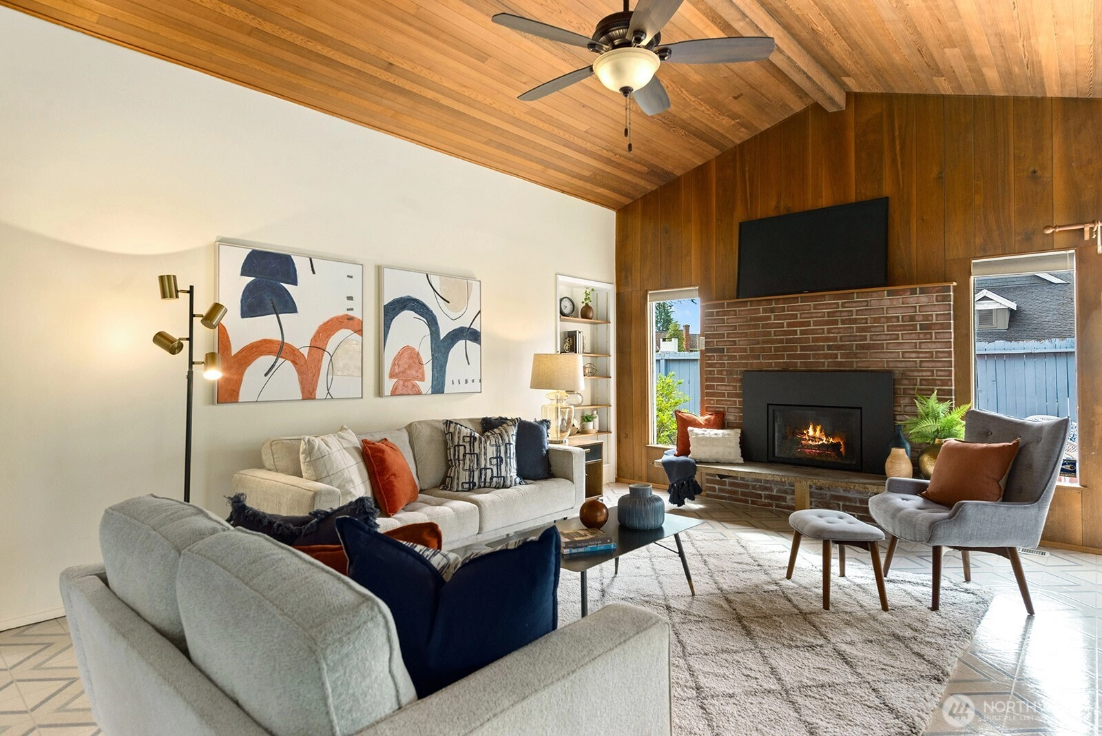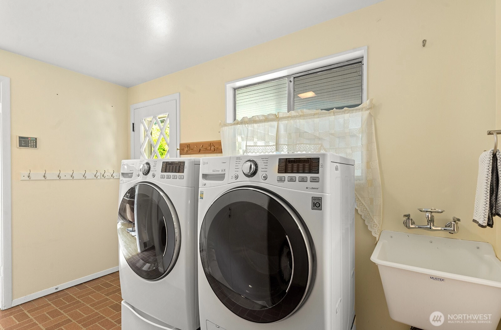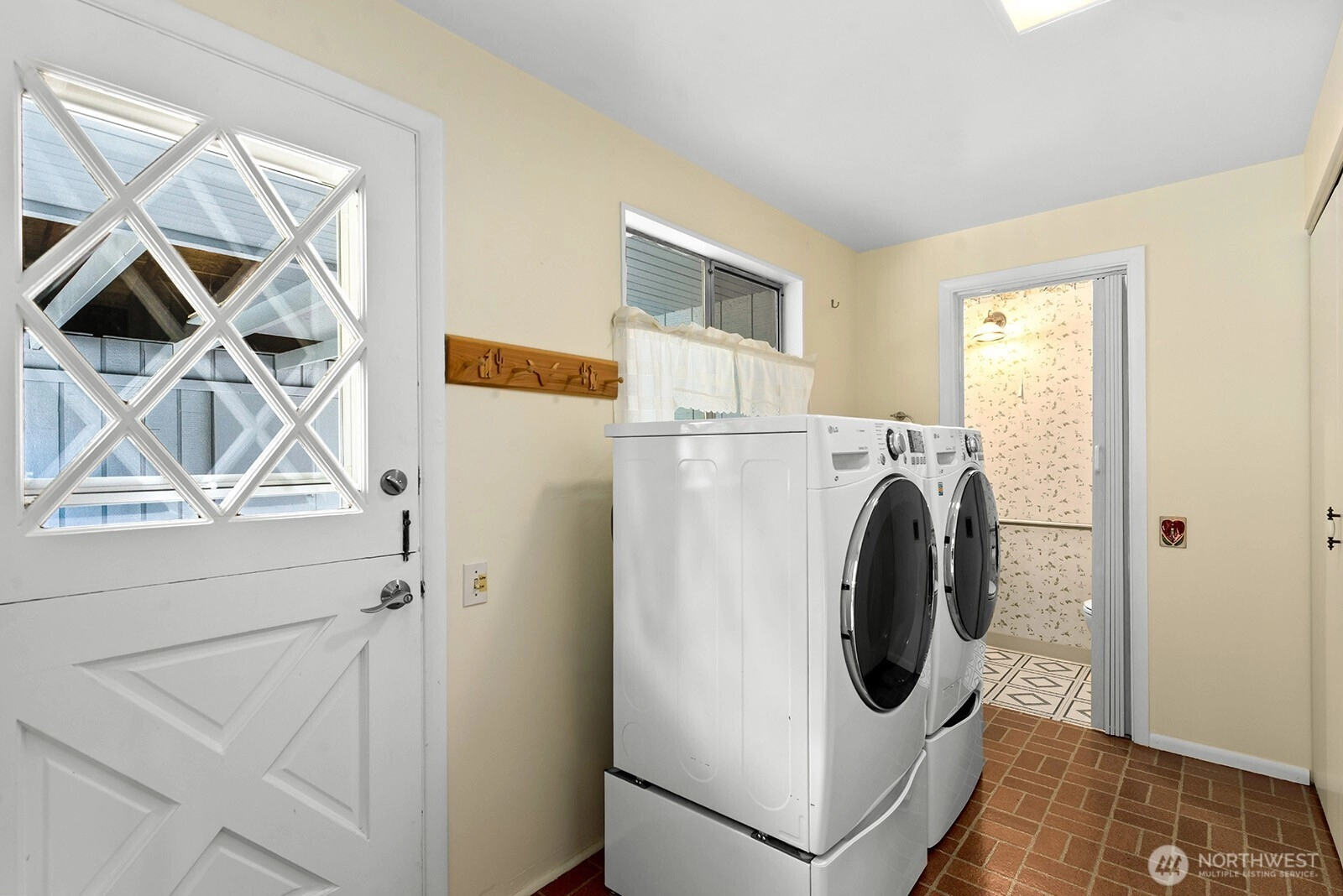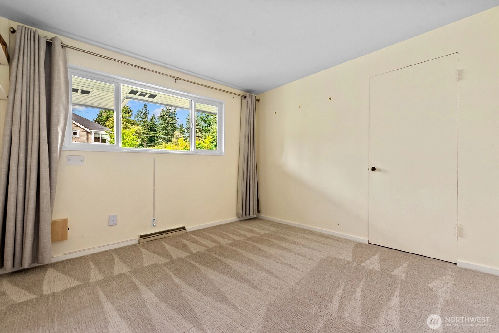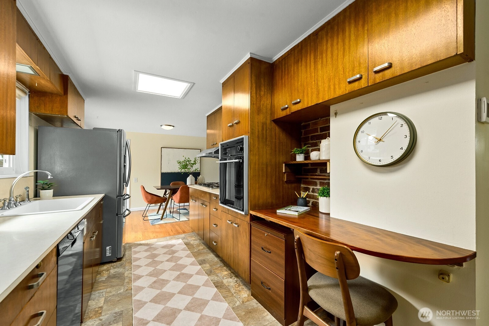 Stunning mid-century home situated on a level, private lot on desirable street in Enatai. The open floor plan features a spacious bonus room seamlessly connected to the main living areas. The exquisite primary bath remodel boasts a luxurious steam shower, heated floors, and dual vanities. A powder room conveniently serves the entertaining spaces. Enjoy the ease of single-level living, complete with central air conditioning, a durable metal roof, walk-in pantry, and gleaming hardwood floors. Two private patios extend the living space outdoors. An attached workshop and storage area, not included in the square footage, add versatility. A short walk to the beach, coveted Enatai Elementary school and several neighborhood parks.