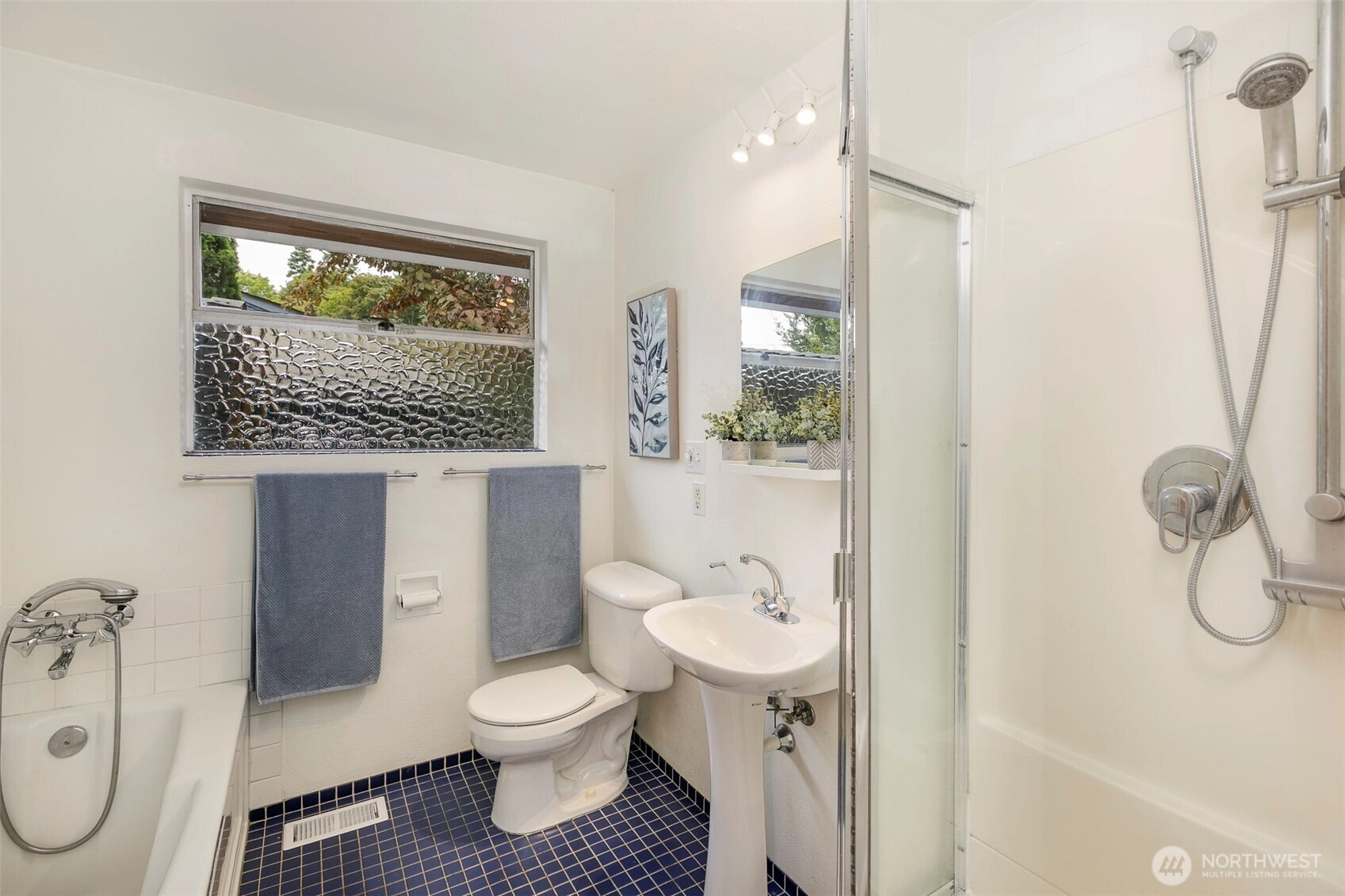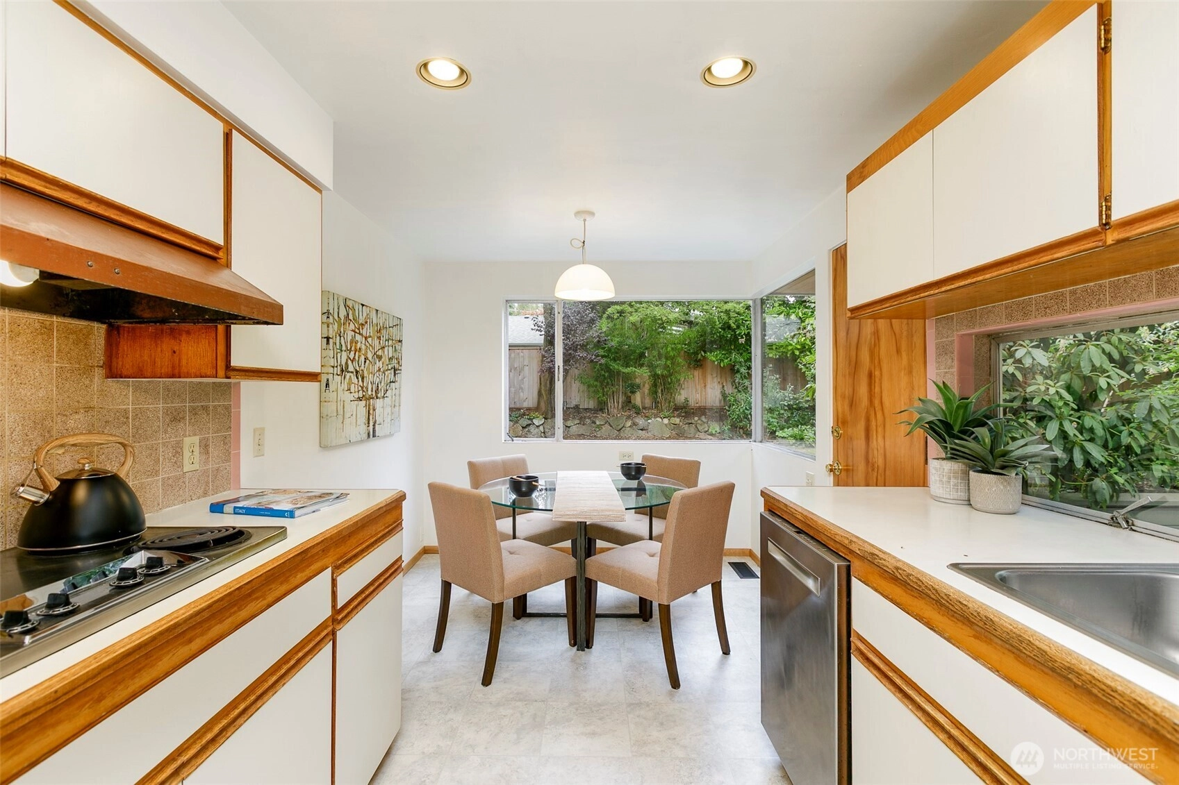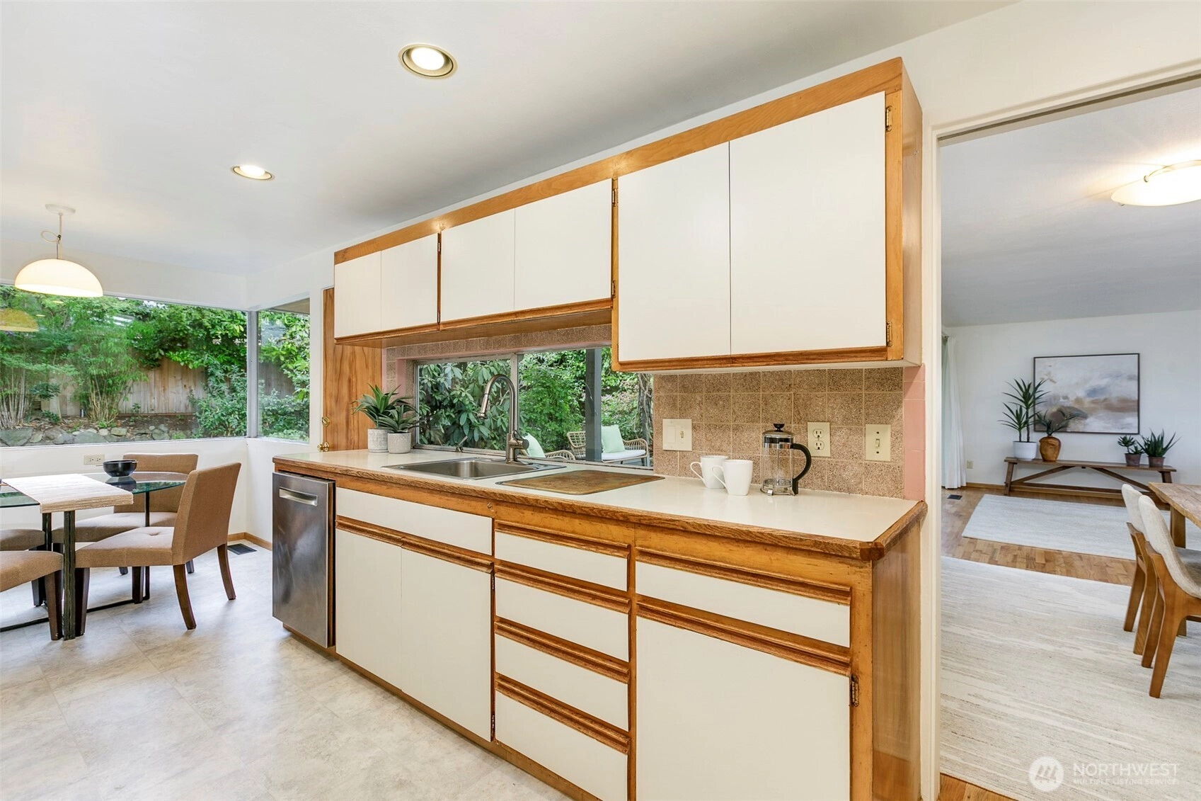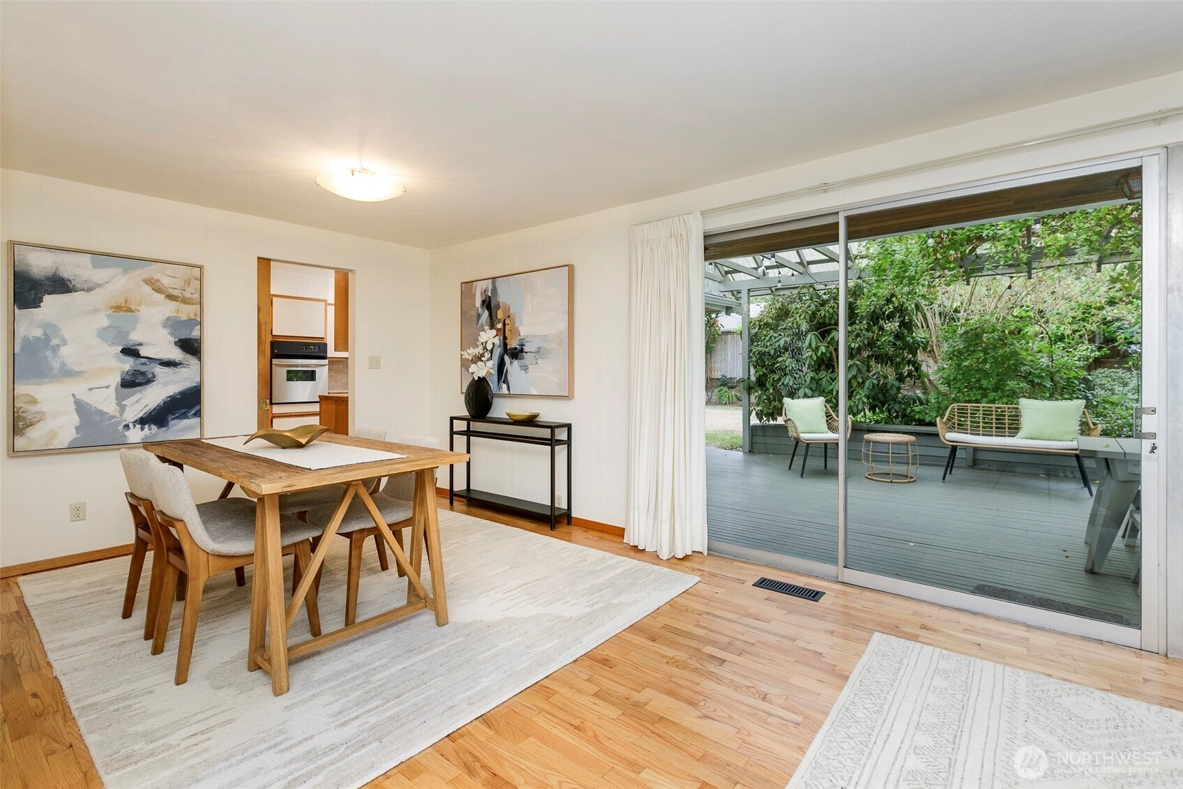 Desirable south-facing home just steps from Carkeek Park. Sun-filled living room with wood-burning fireplace, refinished hardwoods, and territorial views. Dining room opens to expansive covered deck for year-round entertaining. Bright kitchen with breakfast nook overlooks fenced backyard. Main level features a primary suite with three-quarter bath, two additional bedrooms, full bath, and plenty of storage. The light-filled lower level includes a large family room with fireplace, flex space, guest room/office, three-quarter bath, and laundry. The two-car garage features extra storage and work bench. Lush landscaping, with mature trees and garden shed. Minutes to parks, trails, beach, shopping, and major commuter routes. Pre-inspected!