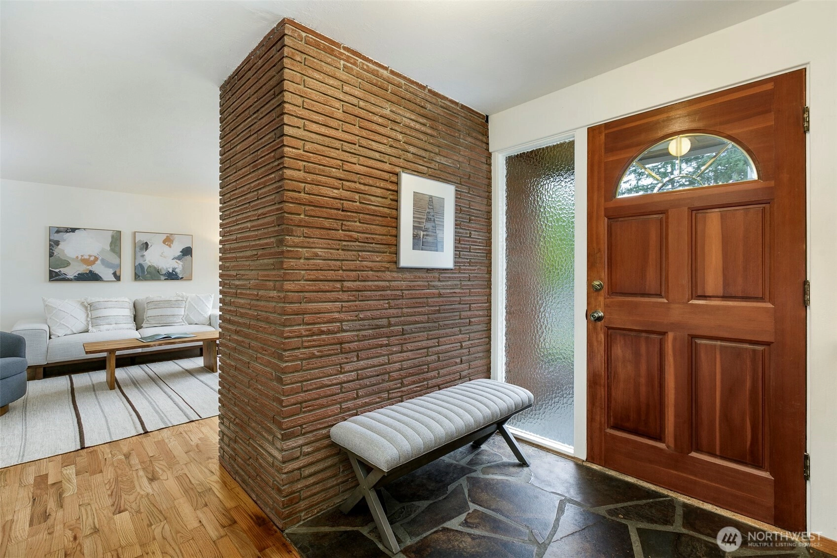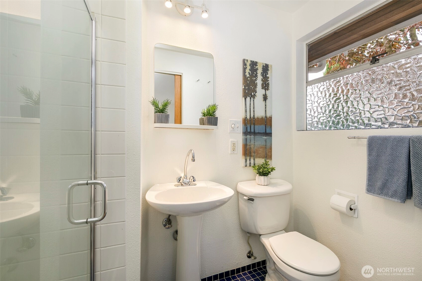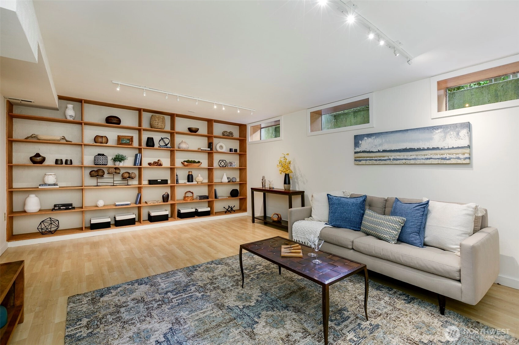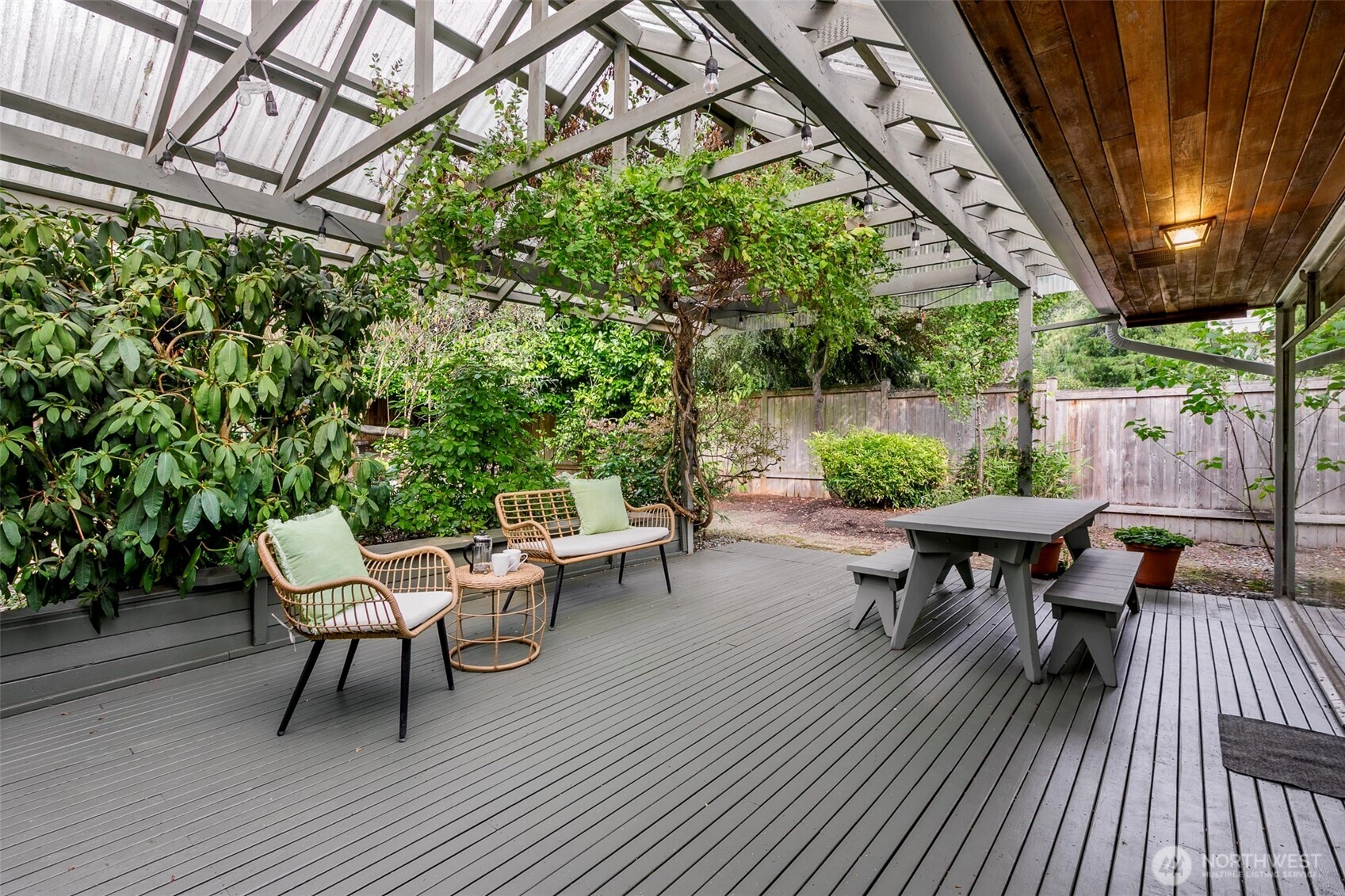 Desirable south-facing home just steps from Carkeek Park. Sun-filled living room with wood-burning fireplace, refinished hardwoods, and territorial views. Dining room opens to expansive covered deck for year-round entertaining. Bright kitchen with breakfast nook overlooks fenced backyard. Main level features a primary suite with three-quarter bath, two additional bedrooms, full bath, and plenty of storage. The light-filled lower level includes a large family room with fireplace, flex space, guest room/office, three-quarter bath, and laundry. The two-car garage features extra storage and work bench. Lush landscaping, with mature trees and garden shed. Minutes to parks, trails, beach, shopping, and major commuter routes. Pre-inspected!