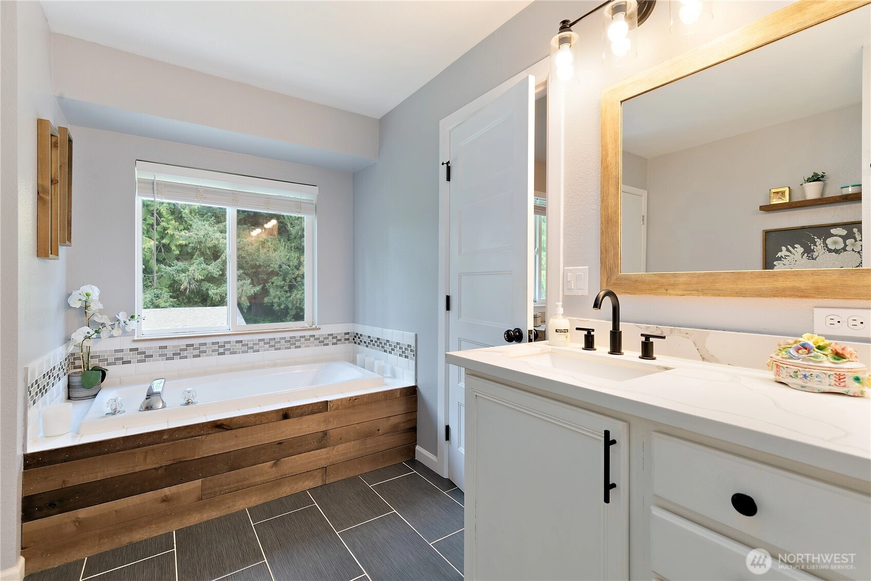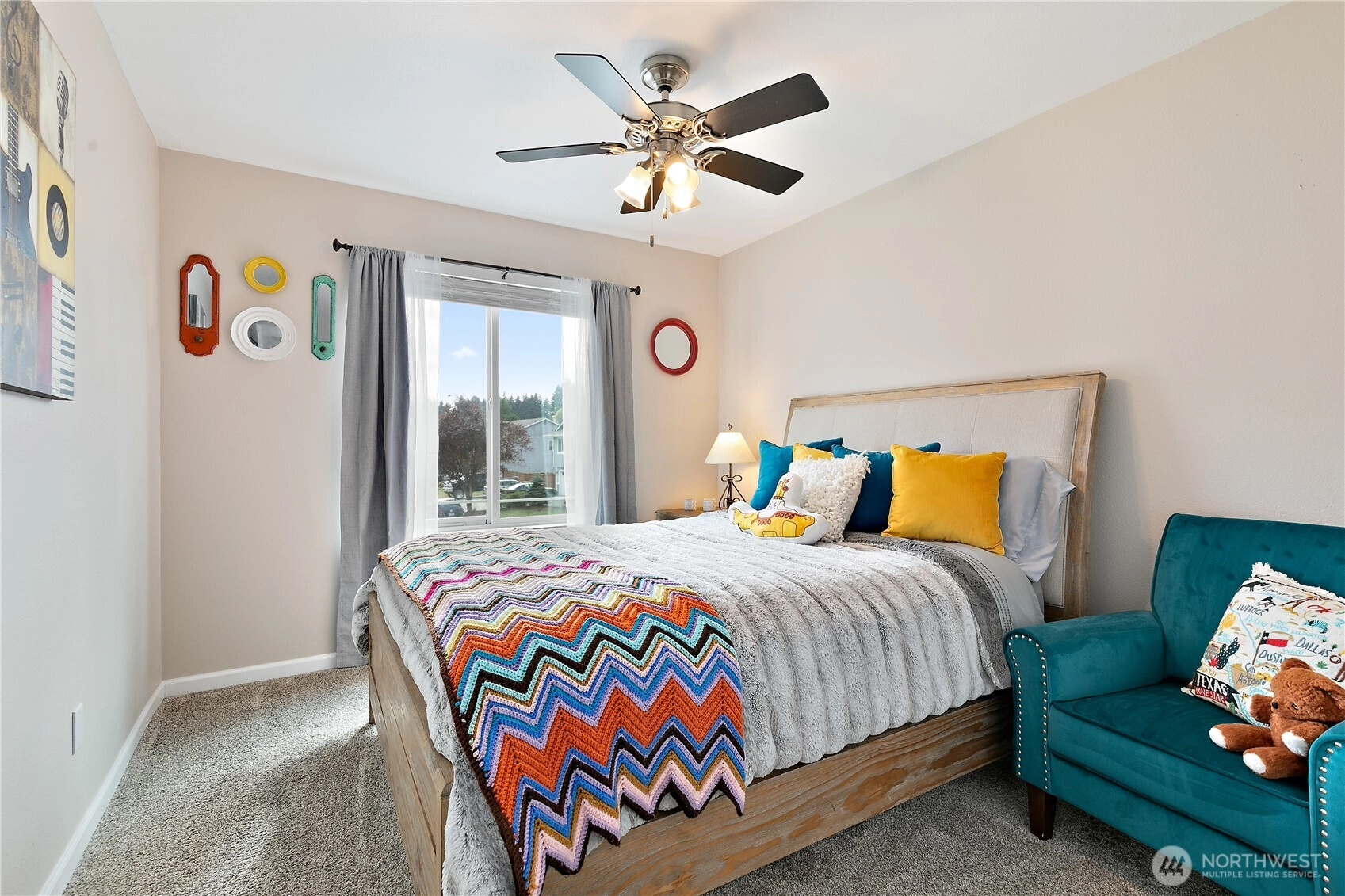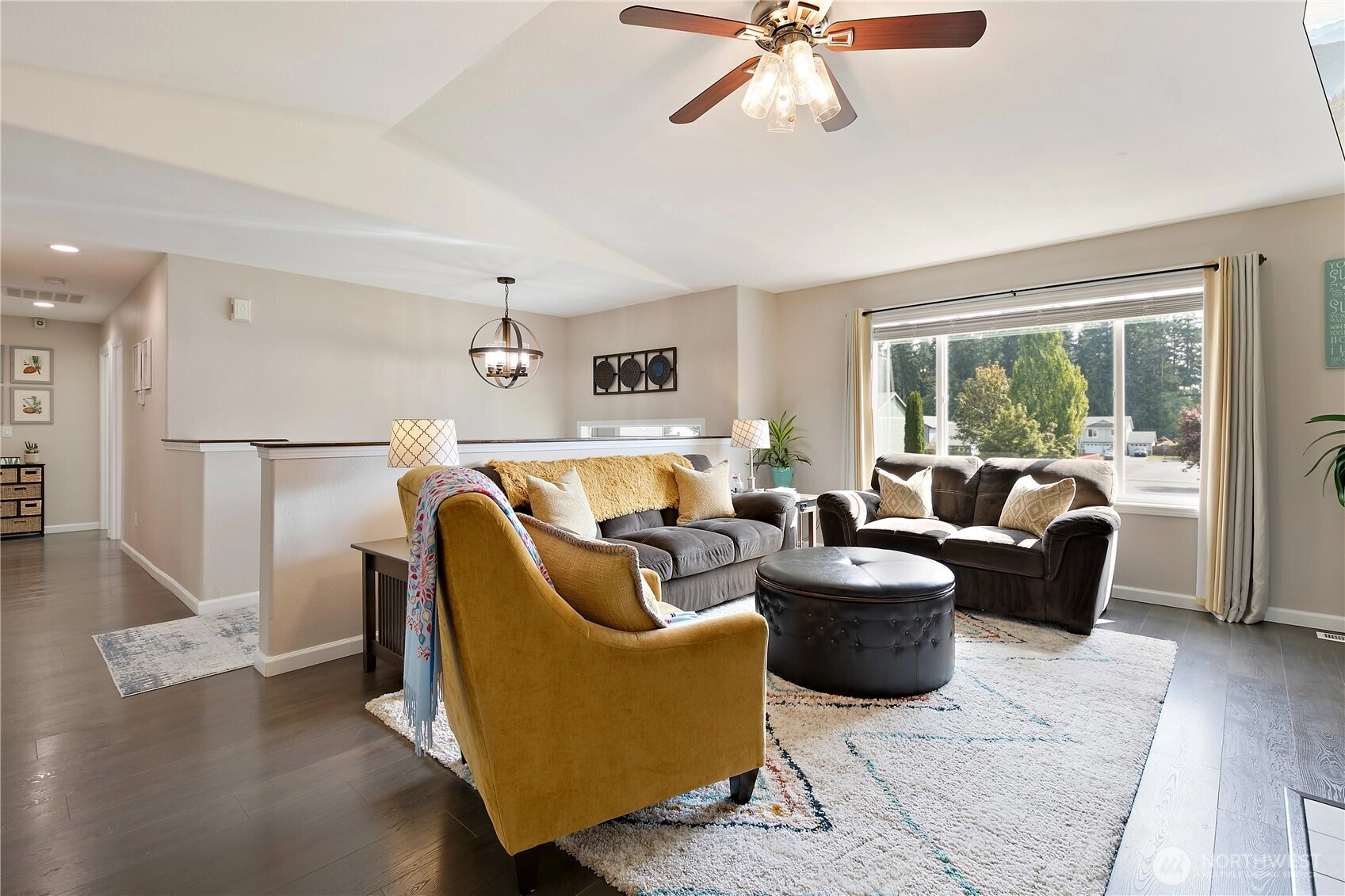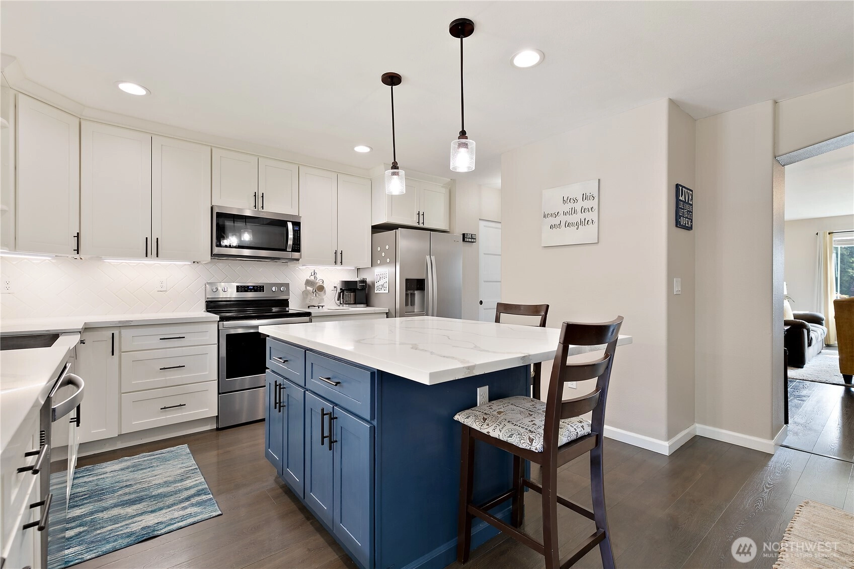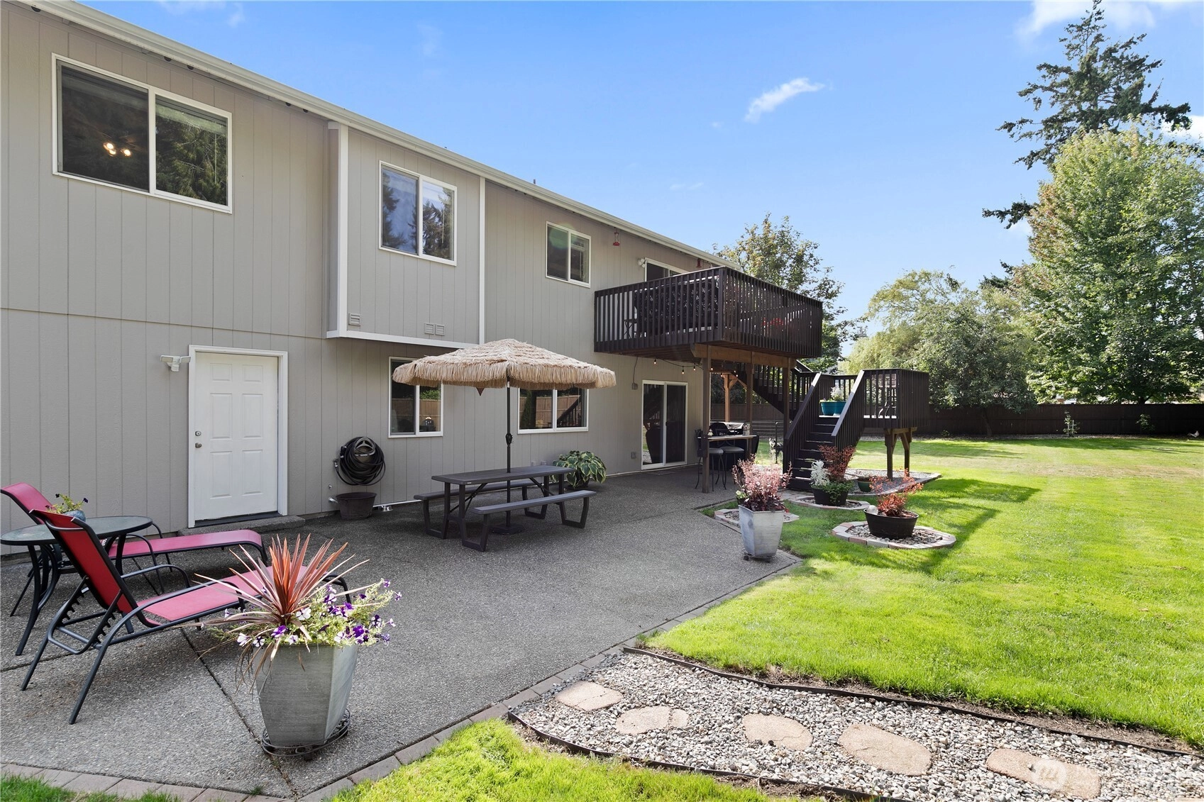 Beautifully updated home with major upgrades inside and out! Enjoy peace of mind with a new roof, water heater, carpet, interior paint, cabinets, quartz countertops, custom island, and updated fixtures throughout. Bathrooms feature modern vanities and fixtures, while laminate hardwood floors (2023) add style and durability. Stay comfortable year-round with a newer A/C and furnace (2020). The open floor plan is filled with natural light, complemented by a cozy fireplace and stainless steel appliances. Step outside to a stunning deck overlooking a huge fully fenced yard, backing to a tranquil greenbelt. Sitting on 1/2 acre, with newer exterior paint and can lighting, this home is move-in ready and truly shines!