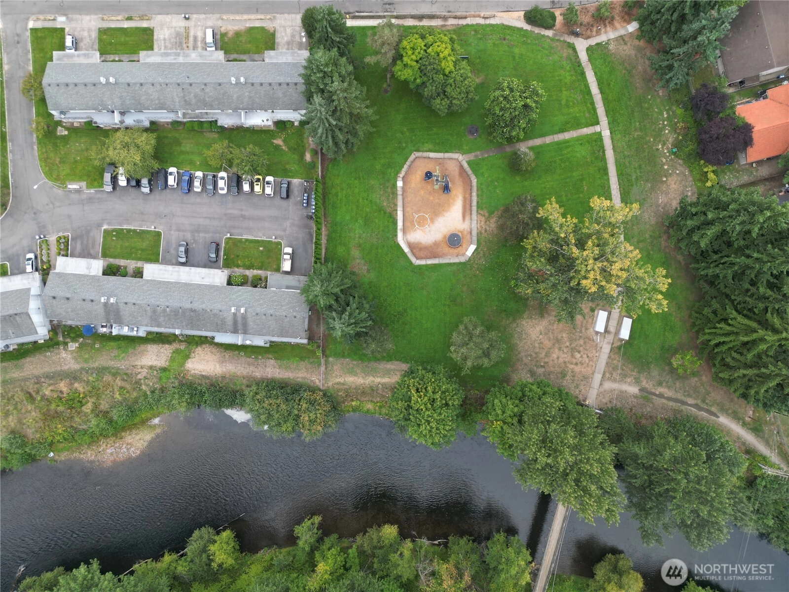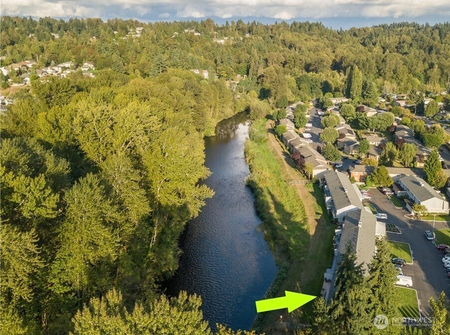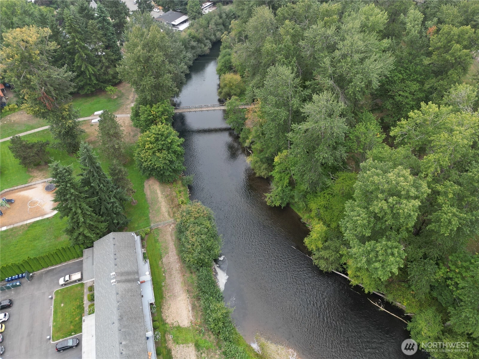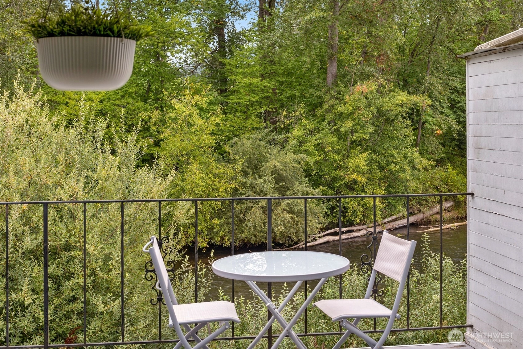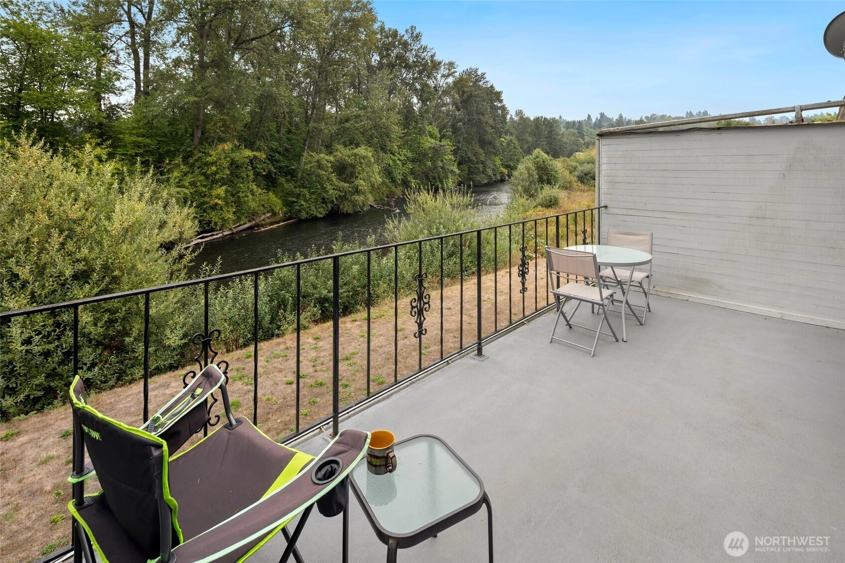 An extremely rare find - experience serene riverfront living at Villa Del Rio! This top-floor corner 2-bedroom, 1.75-bath condo offers sweeping views of the Green River, where you’ll hear birdsong each morning and may even spot fish swimming below. Enjoy the peaceful setting from your private balcony or the expansive deck that runs the length of the home. Inside, the open living/dining area features a cozy fireplace and natural light, while the kitchen with breakfast bar is perfect for gatherings. The primary suite includes a private bath and balcony access. With in-unit laundry, ample storage, and a private garage, this condo combines convenience with nature’s beauty—all just minutes from parks, trails, shopping, and commuter routes.