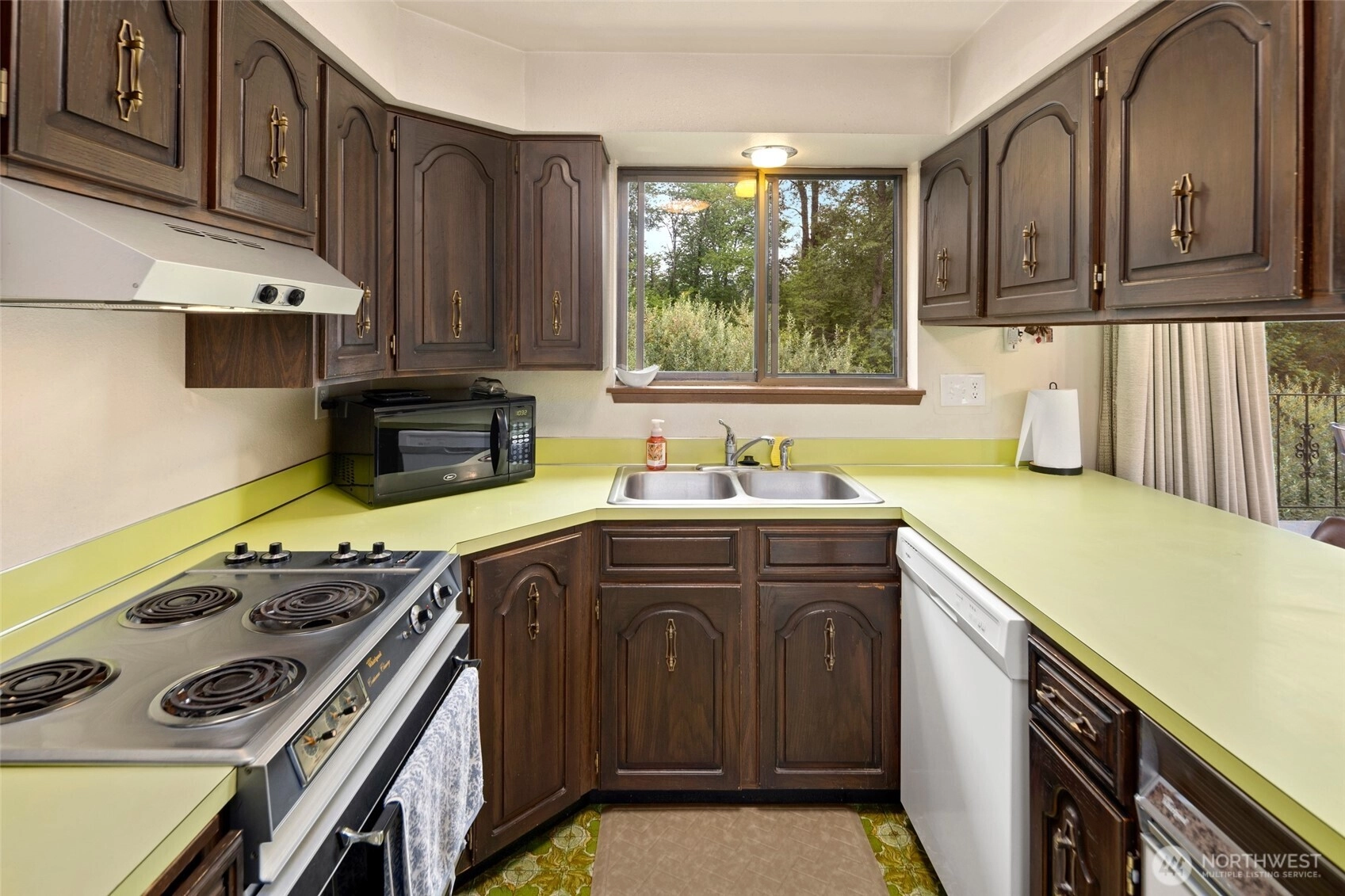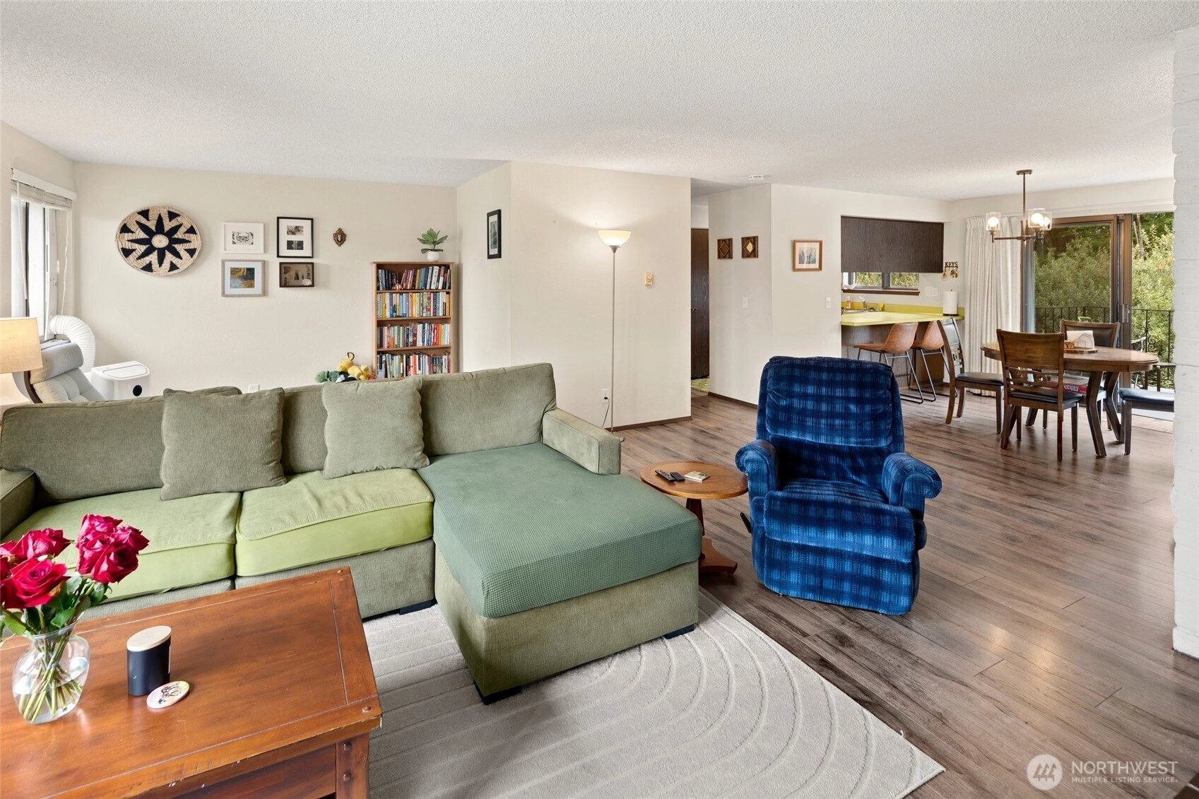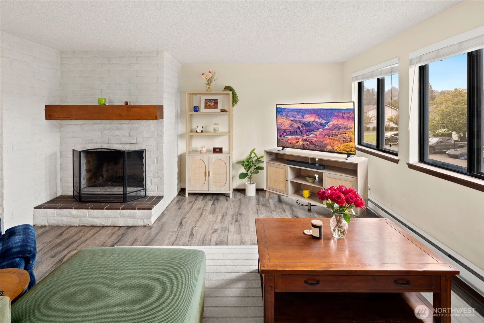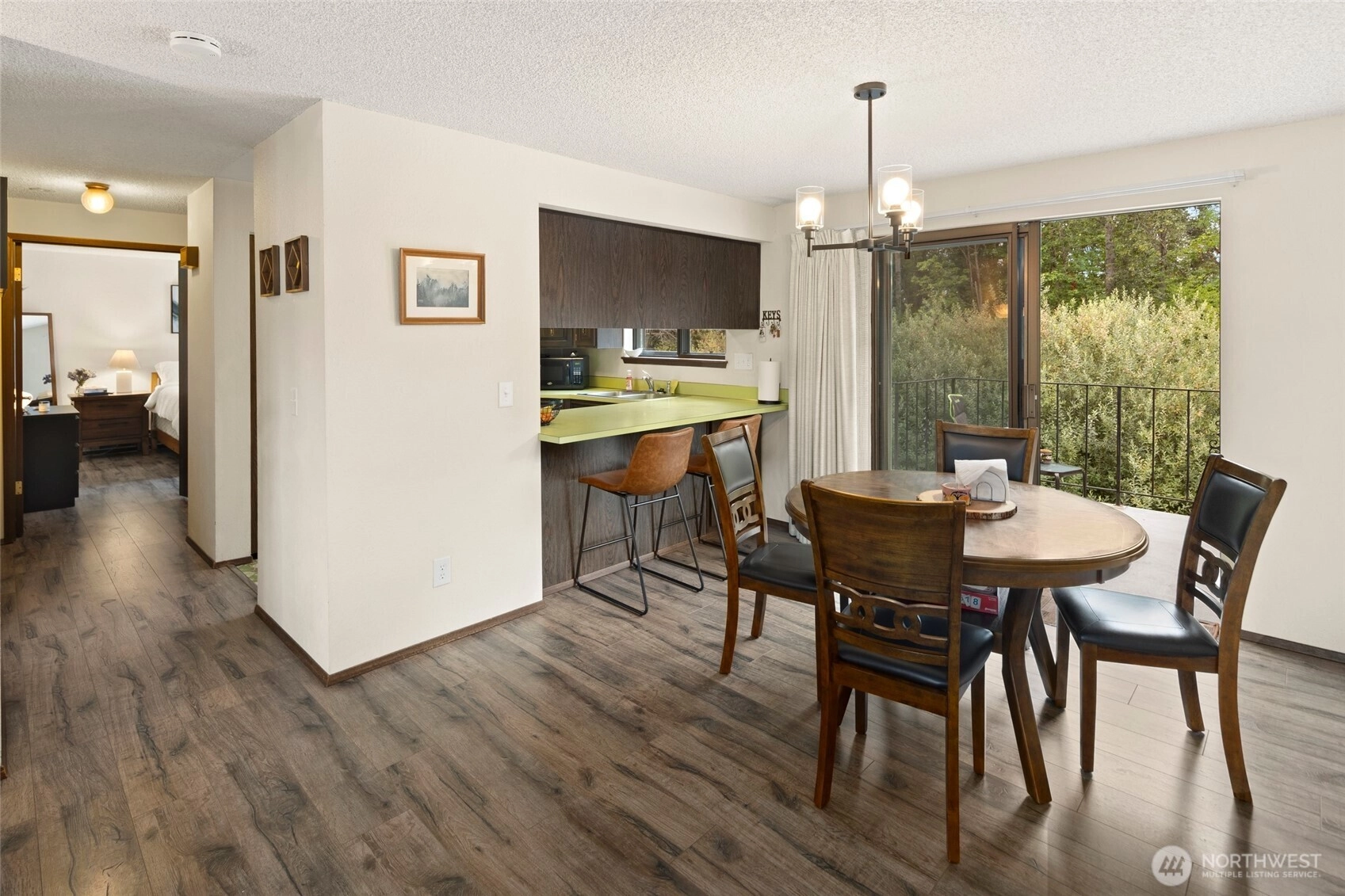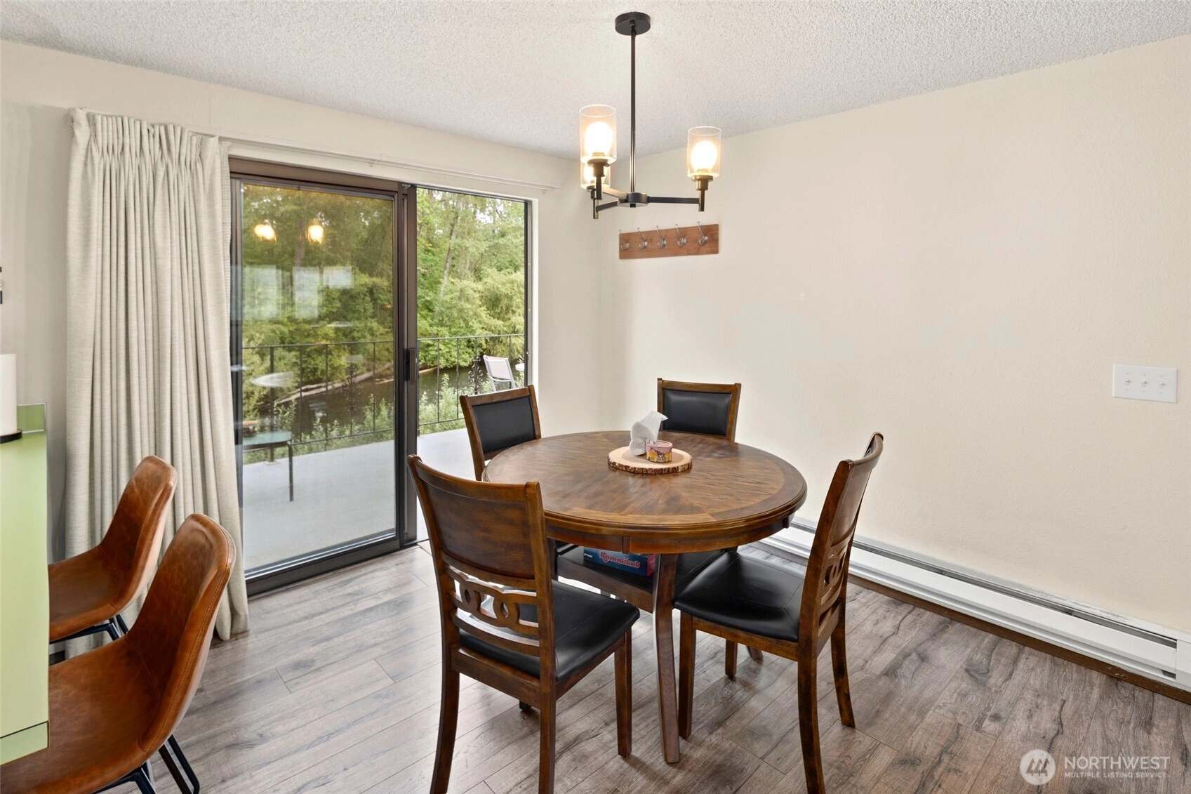 An extremely rare find - experience serene riverfront living at Villa Del Rio! This top-floor corner 2-bedroom, 1.75-bath condo offers sweeping views of the Green River, where you’ll hear birdsong each morning and may even spot fish swimming below. Enjoy the peaceful setting from your private balcony or the expansive deck that runs the length of the home. Inside, the open living/dining area features a cozy fireplace and natural light, while the kitchen with breakfast bar is perfect for gatherings. The primary suite includes a private bath and balcony access. With in-unit laundry, ample storage, and a private garage, this condo combines convenience with nature’s beauty—all just minutes from parks, trails, shopping, and commuter routes.