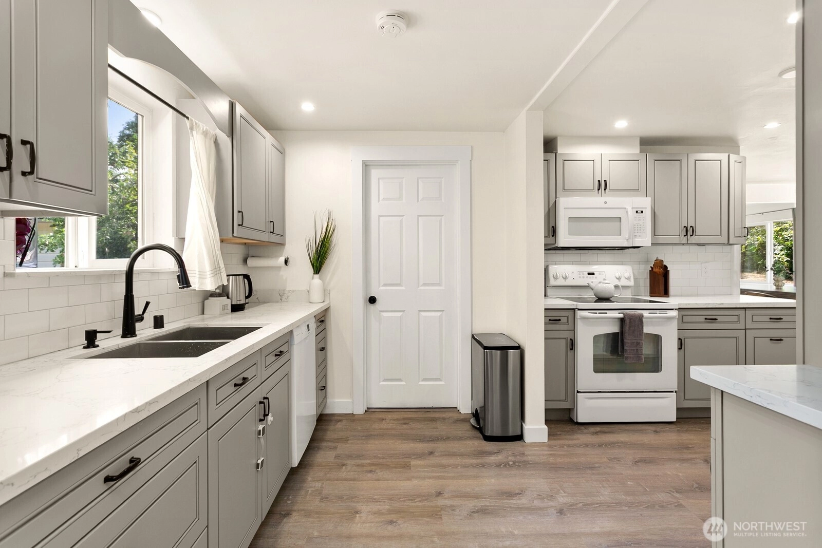 Welcome to your remodeled Beacon Hill retreat, a one-of-a-kind homestead nestled on a lush half-acre oasis! Enjoy the abundance of fruit trees, herb garden & expansive green space. The open floor plan ensures seamless modern living, while the spacious, updated kitchen is perfect for both cooking & entertaining. W/ 2beds/1.75bath upstairs & 2beds/0.5 bath in the daylight basement w/ private entrance, this home is ideal for multi-generational living, hosting guests, or creating a private home ofc. Add'l features include ductless mini-splits, storage sheds, detached shop, carport w/ EV charging station, tons of parking & direct access to scenic hiking trails. Perfect blend of nature w/ city convenience in a tranquil & fantastic location!