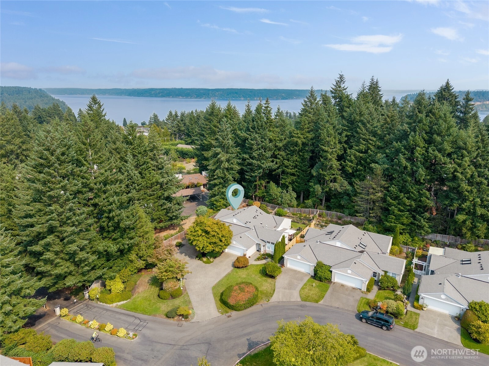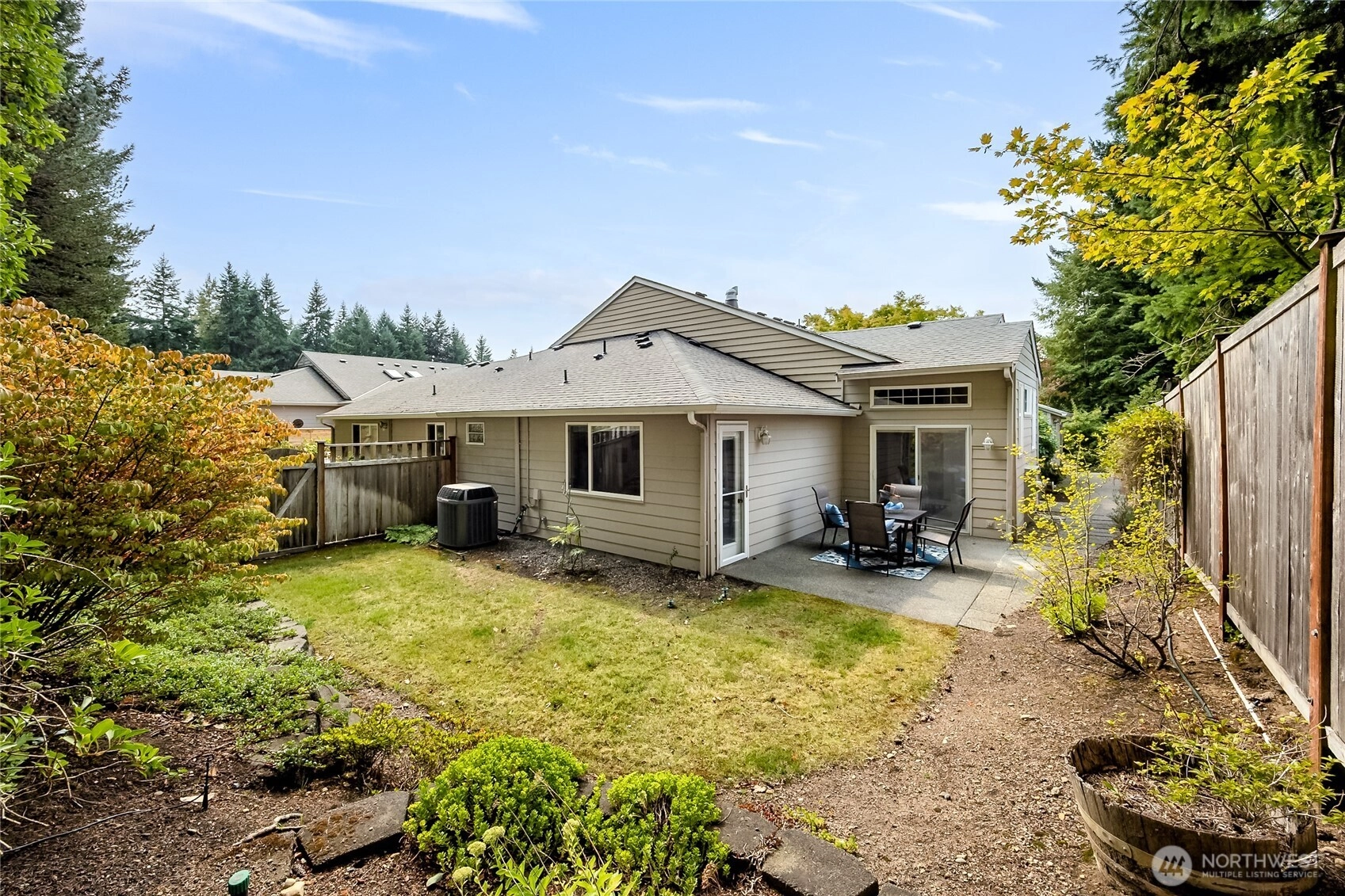 Nestled on a corner lot in the secure Harbor Summit community, this step-free home delivers comfort & convenience. The open-concept great rm with a cozy gas fireplace flows seamlessly to a private patio & landscaped yard - perfect for indoor-outdoor living. The inviting dining area connects to a charming kitchen featuring stainless steel appliances, vaulted ceiling, & breakfast bar. Timber flooring, air conditioning, remote blinds, & lofty ceilings complement the interior. The primary suite boasts an updated bath with a stylish walk-in tile shower & an expansive walk-in closet. Designed with both everyday comfort & entertaining in mind, this home is just minutes from downtown Gig Harbor & an array of local amenities. A truly prime location!