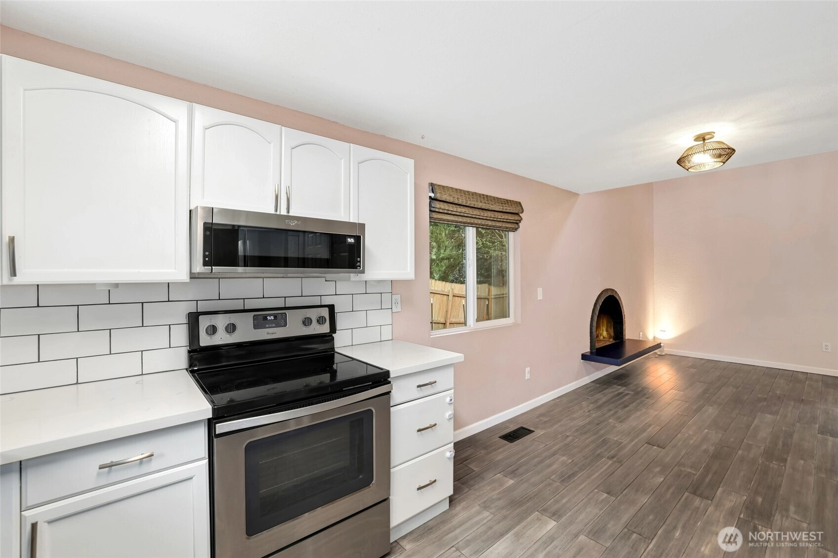 Tucked away in a peaceful neighborhood, this 3-bed, 2.25-bath home is ready for its next chapter. Recent upgrades include a newer roof, heat pump, furnace, and fresh carpet, giving you peace of mind from day one. The main level features a bright living room with a wood-burning fireplace, a well-appointed kitchen with stainless appliances, and a primary suite with a private bath. A second bedroom, full bath, and laundry complete the main floor. Upstairs you'll find a versatile loft, additional bedroom, and half bath; perfect for guests, hobbies, or a home office. Designer paint colors and window treatments complete the home. Fully fenced backyard with a spacious patio, ideal for relaxing. Close to shopping, restaurants, and transit.
