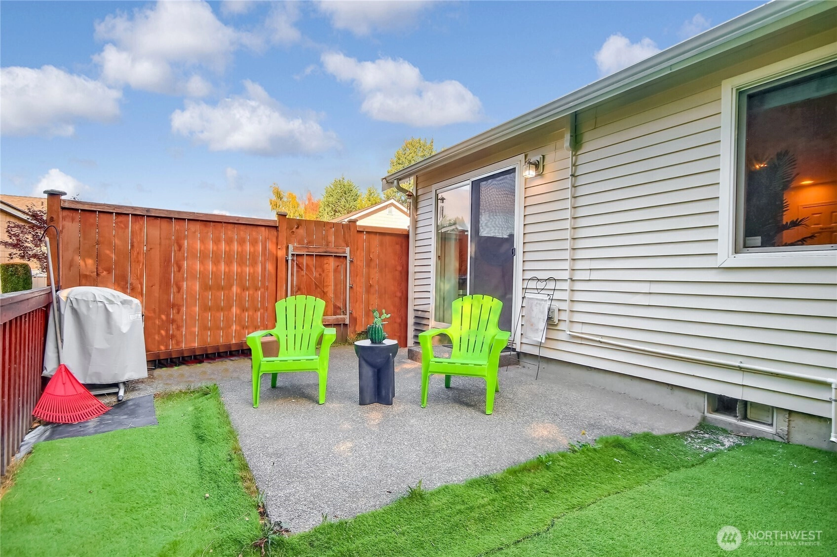 RARE FIND! This stand-alone 3 bedroom , 2 bath condo offers the privacy of a single family home with the convenience of low maintenance condo living. Enjoy a spacious open floor plan with a light filled living room, well appointed kitchen, and generously sized bedrooms. The attached 2 car garage provides ample parking and storage, while the fully fenced yard is perfect for pets, gardening or outdoor entertaining. The condo has a new composition roof and energy efficient mini-split heating and cooling for those hot summers. This condo is located in a well-kept community close to shopping, dining, and both I-5 & 512 freeways. Come see it before it is gone!!