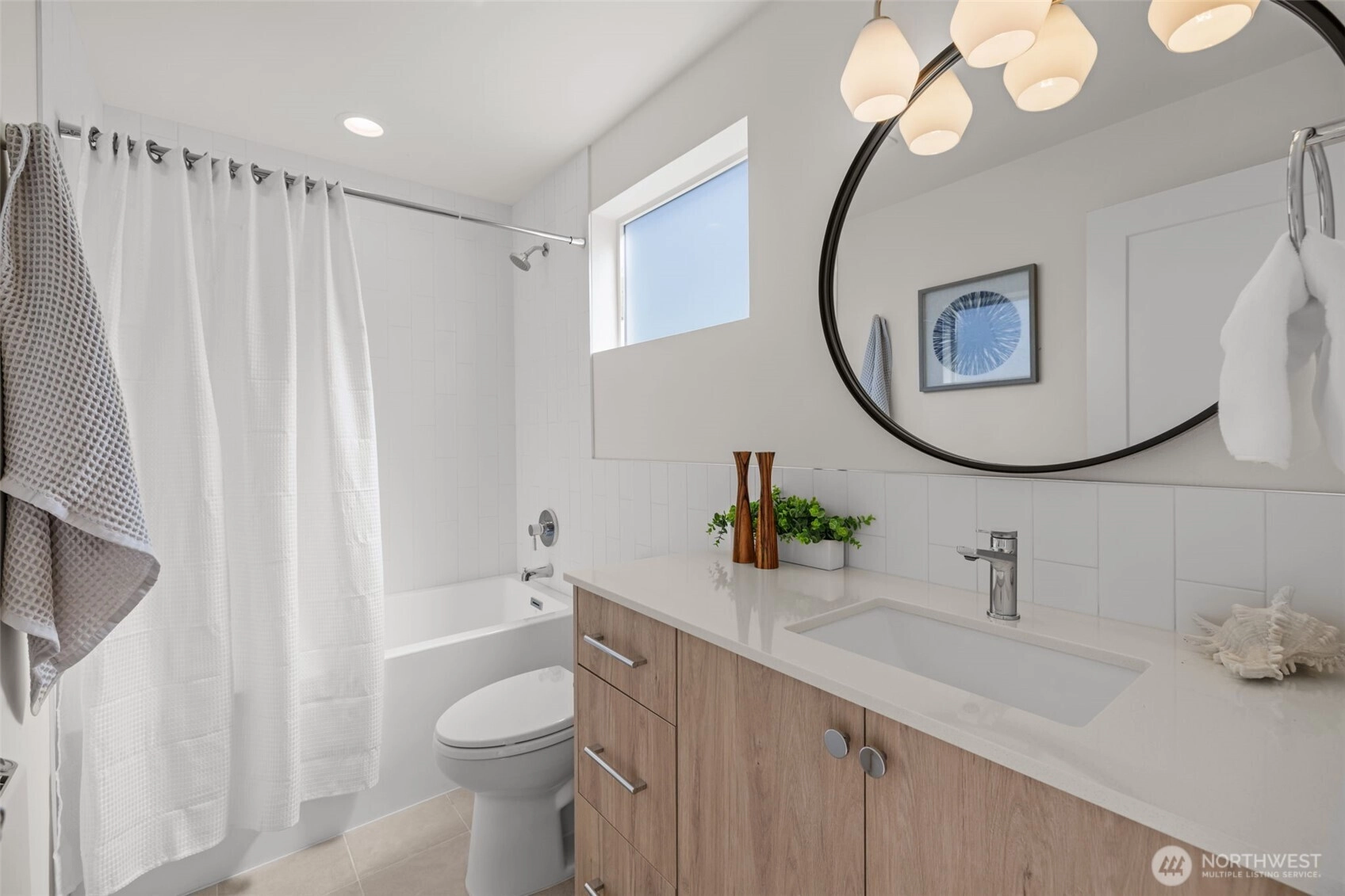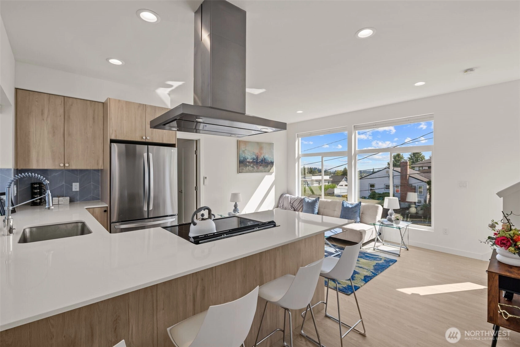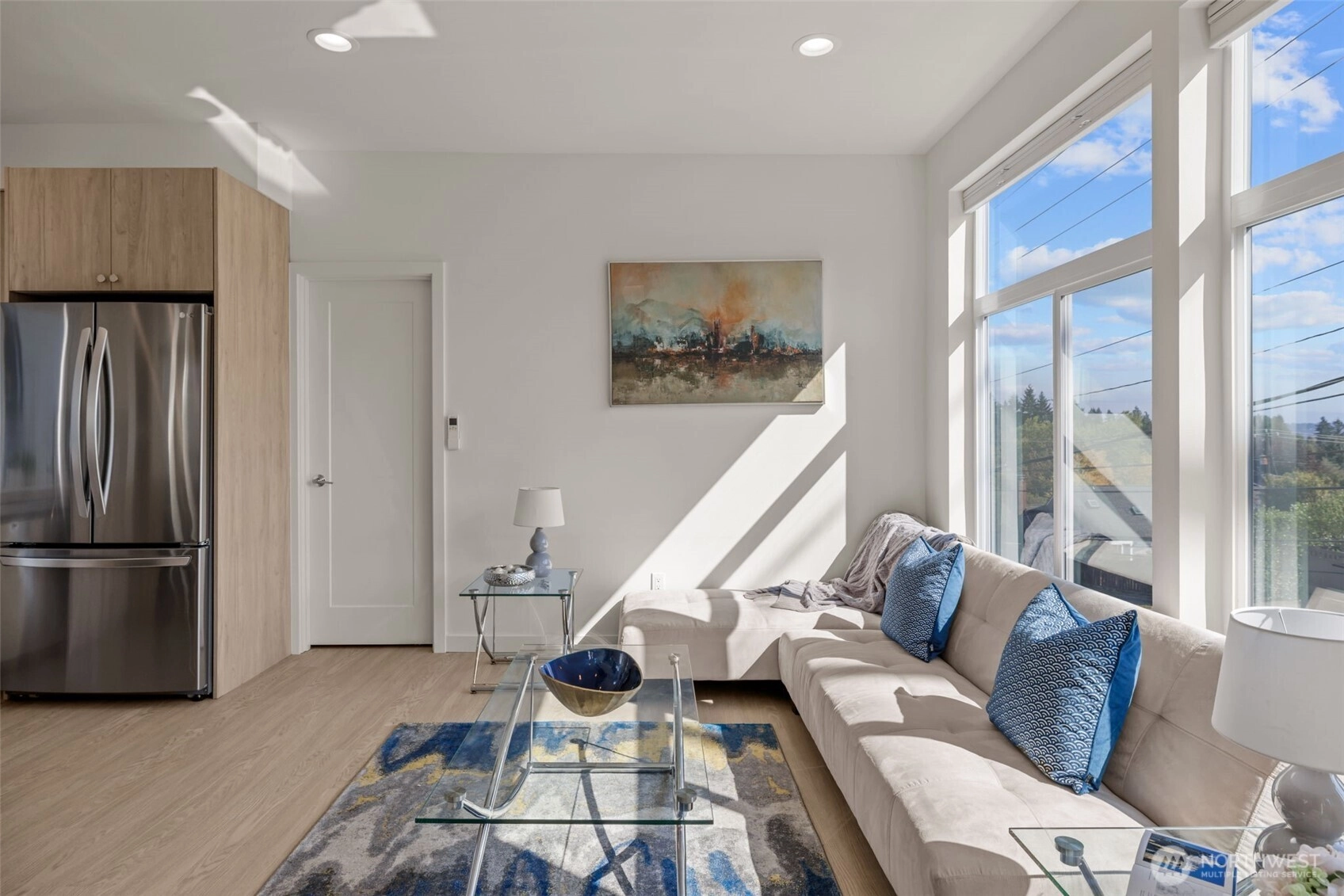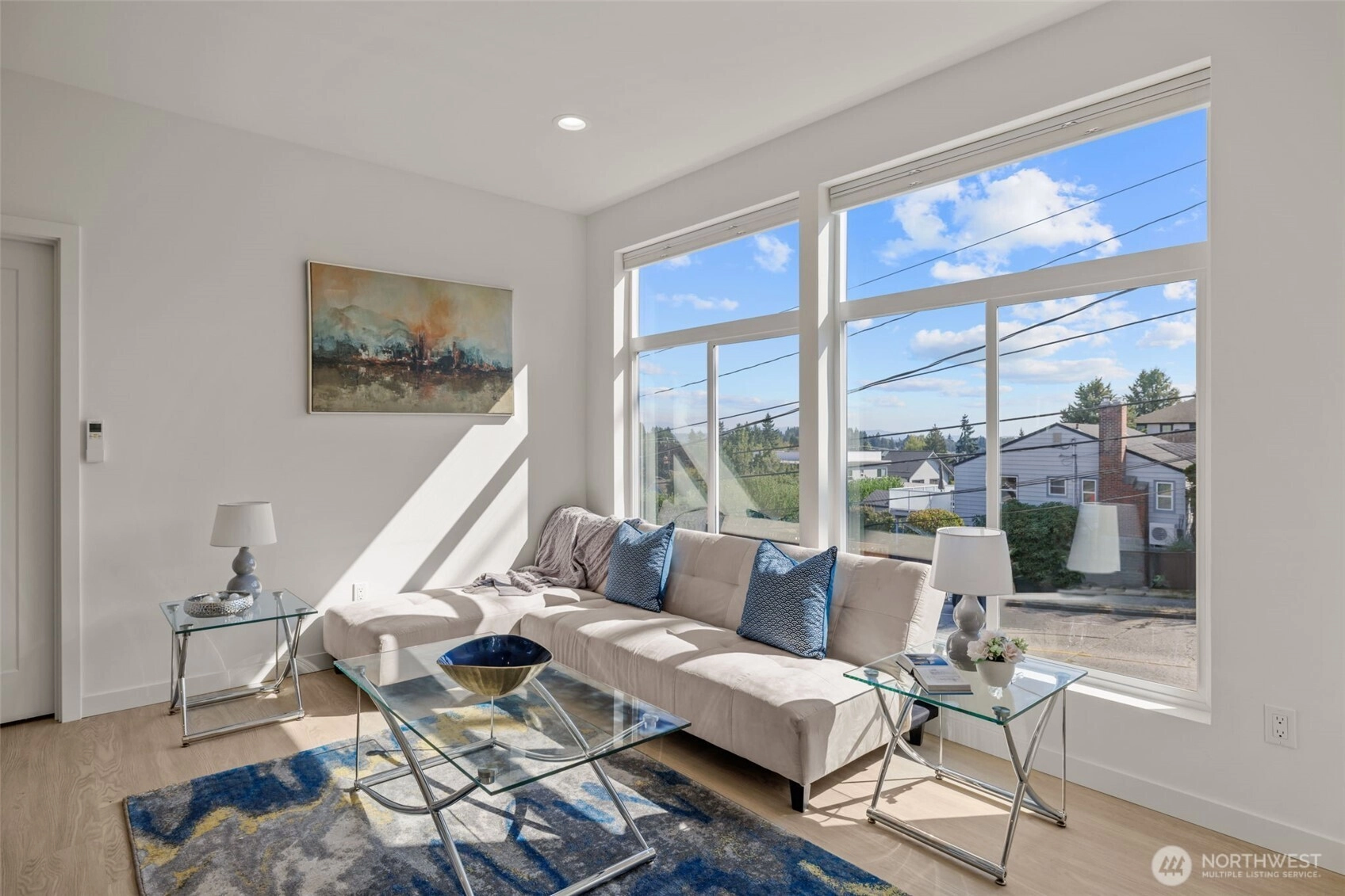 STUNNING & Modern home with Mt. Rainier views in a 3-home community! This 2BD/2BA 1,181 SF residence features a bright open floor plan w/high ceilings, endless natural light, gourmet chef’s kitchen w/quartz counters, breakfast bar, oversized pantry & ss appliances & sunlit living room. Enjoy a luxurious top-floor primary suite w/private balcony & spa-like bath, dual vanity w/quartz counters & walk-in shower. Spacious 2nd bed offers walk-in closet & 2nd luxury bath w/soaking tub. High-end finishes, AC & driveway parking. Prime location w/easy commute & upscale urban living! Just steps to Bryant & View Ridge parks, PCC, Library, local eateries,Burke-Gilman Trail, UW, U-Village, light rail & Bus Route 62! Built 4 Star Green & low dues!