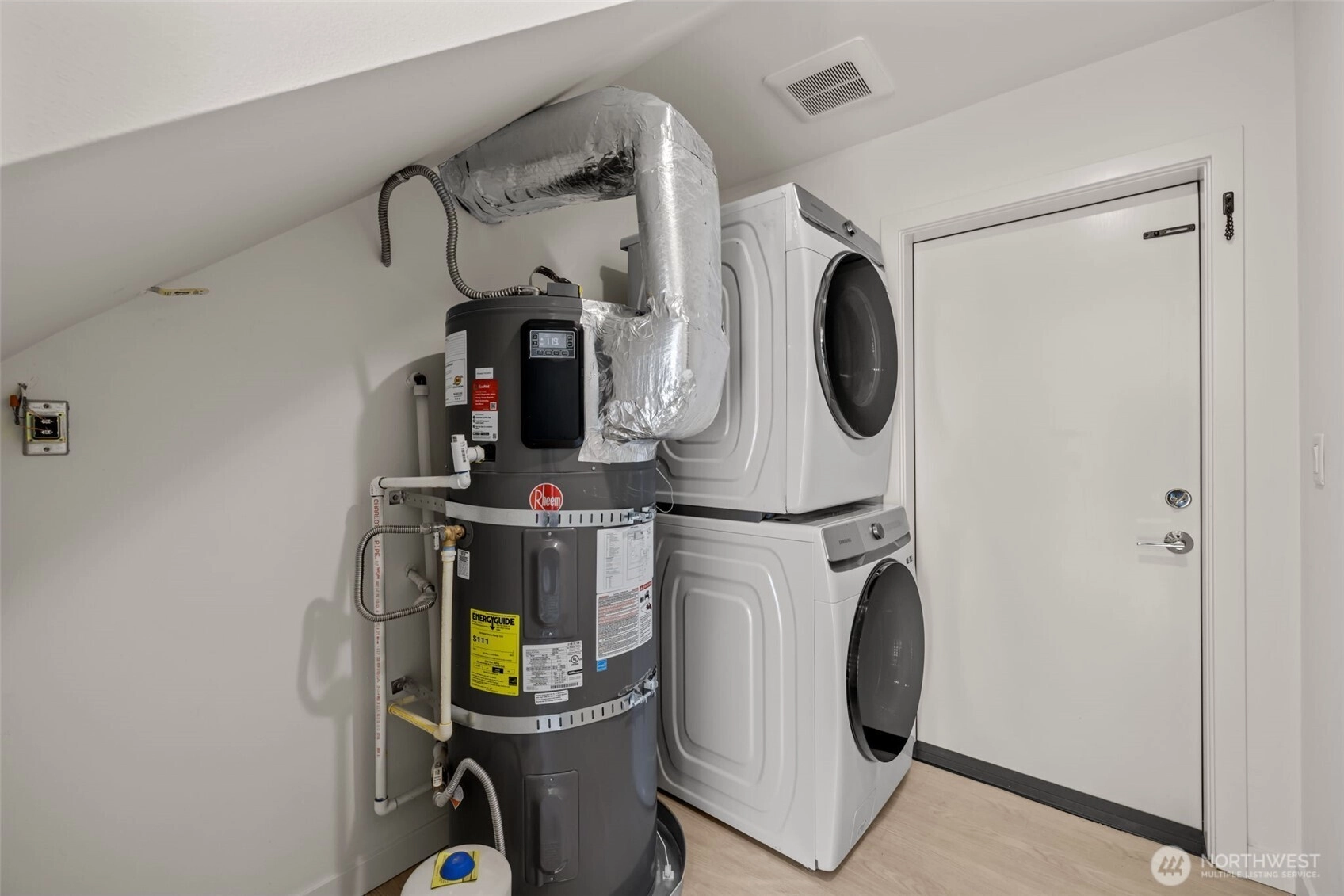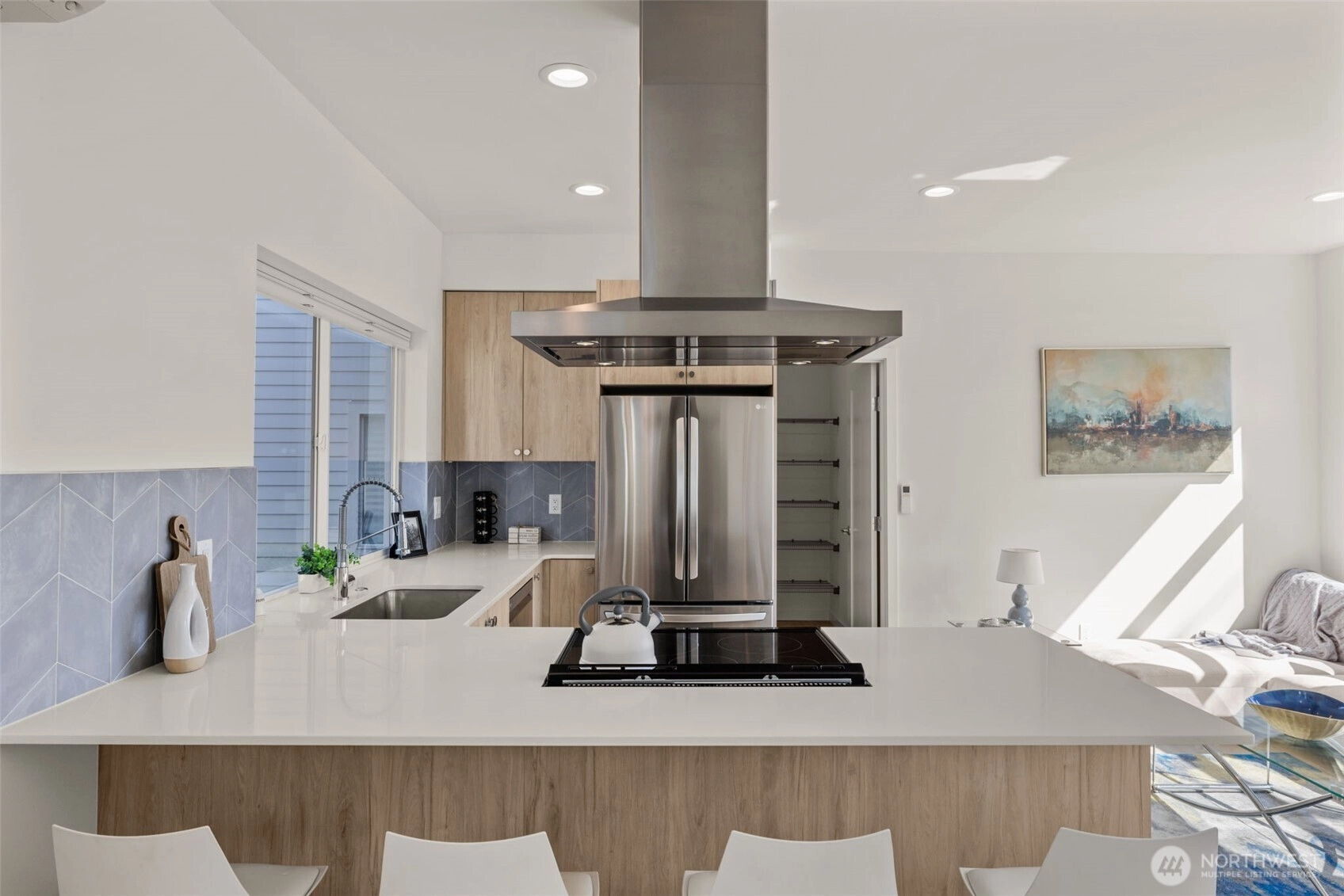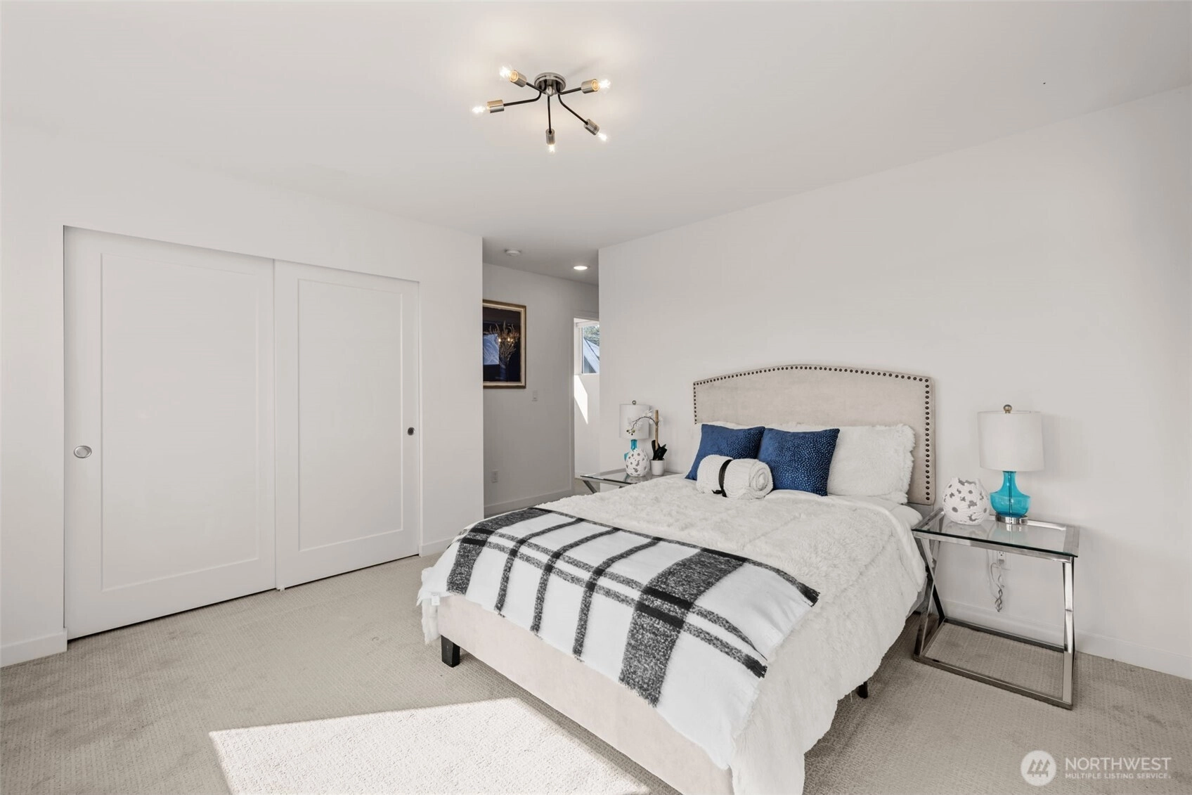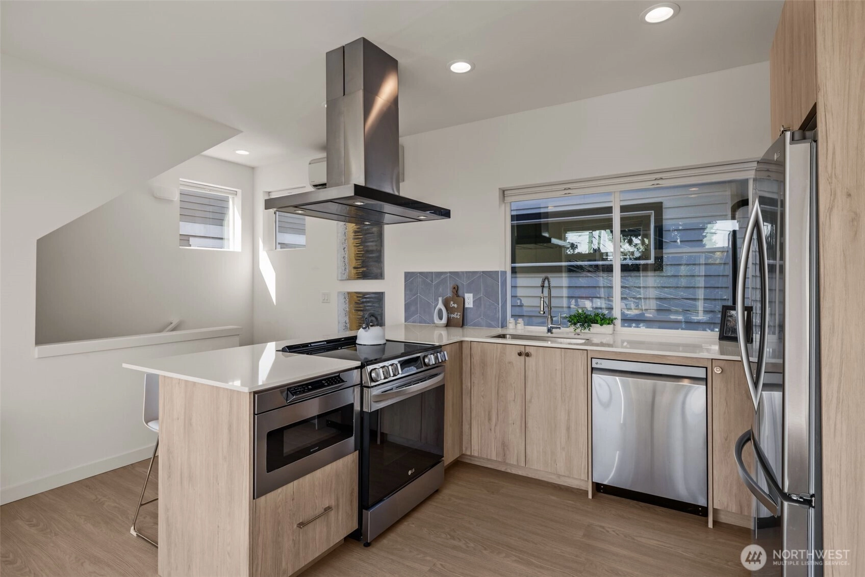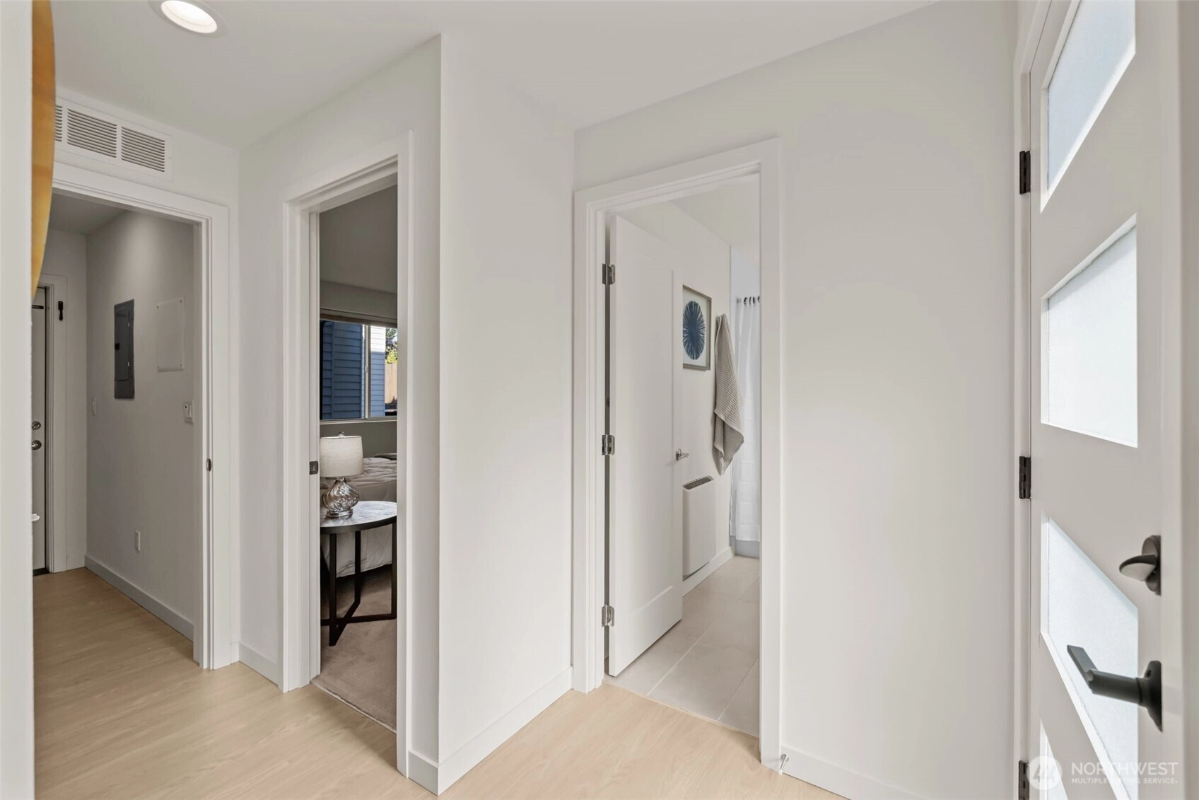 STUNNING & Modern home with Mt. Rainier views in a 3-home community! This 2BD/2BA 1,181 SF residence features a bright open floor plan w/high ceilings, endless natural light, gourmet chef’s kitchen w/quartz counters, breakfast bar, oversized pantry & ss appliances & sunlit living room. Enjoy a luxurious top-floor primary suite w/private balcony & spa-like bath, dual vanity w/quartz counters & walk-in shower. Spacious 2nd bed offers walk-in closet & 2nd luxury bath w/soaking tub. High-end finishes, AC & driveway parking. Prime location w/easy commute & upscale urban living! Just steps to Bryant & View Ridge parks, PCC, Library, local eateries,Burke-Gilman Trail, UW, U-Village, light rail & Bus Route 62! Built 4 Star Green & low dues!