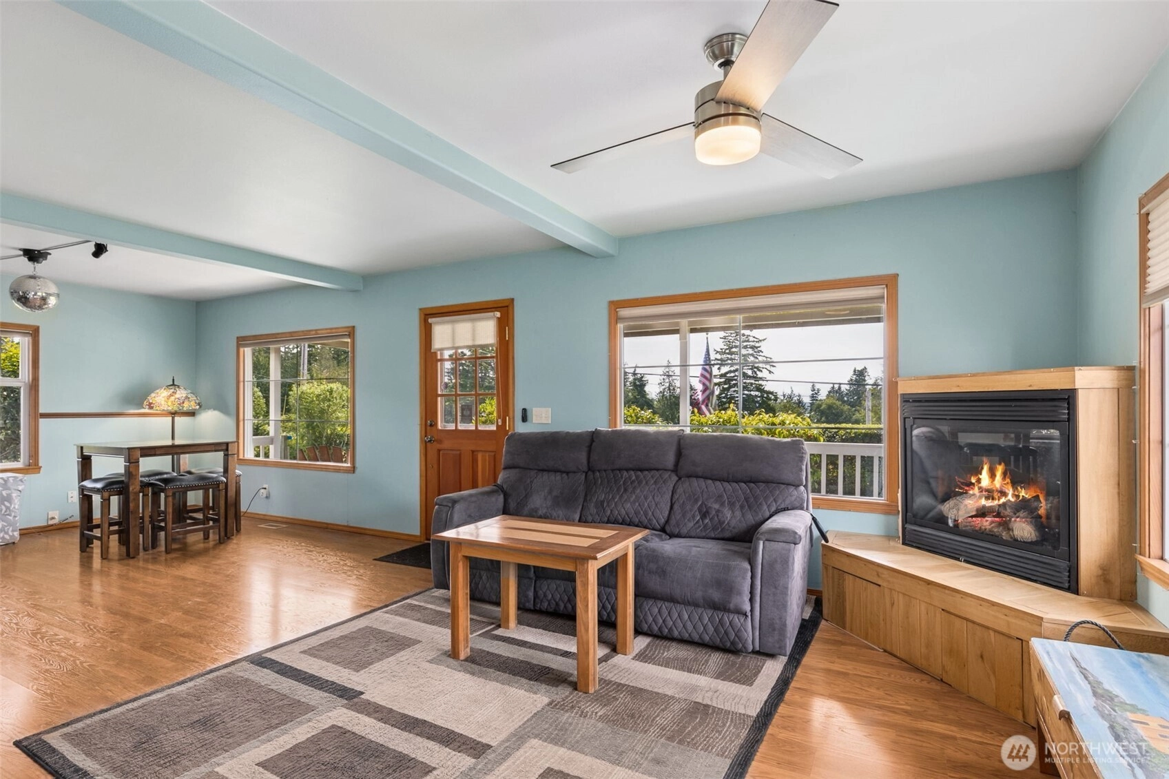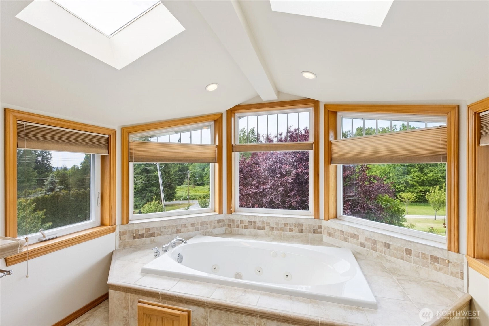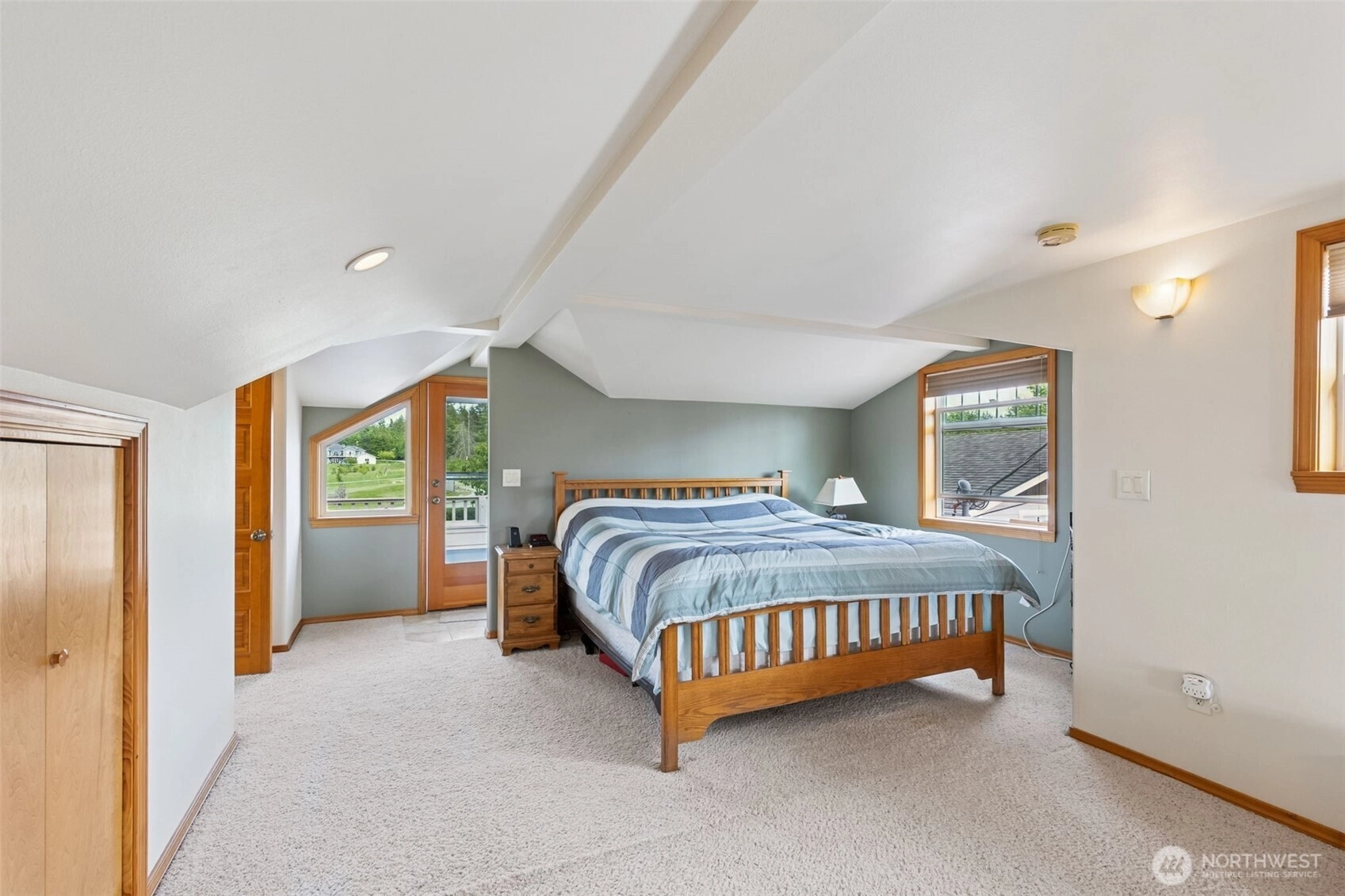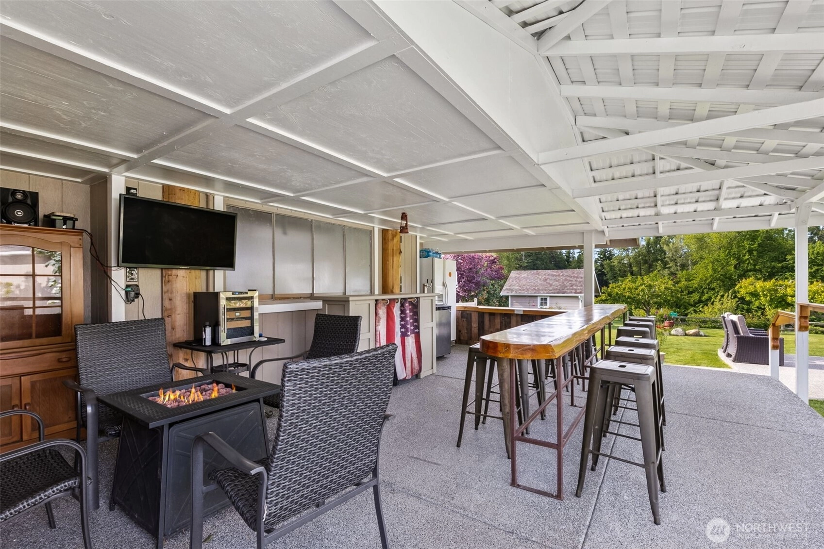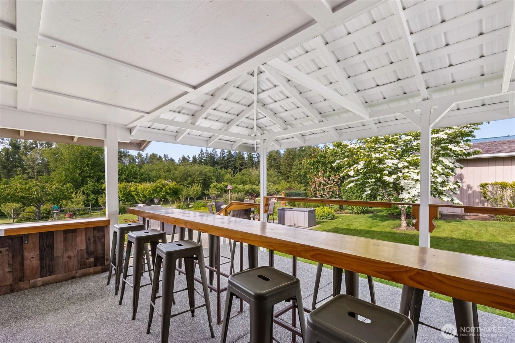 Entertainer & Golfer’s Paradise! Private 5-acre estate w/ 9-hole par-3 course—sand traps, pro signage & cart incl. Flexible acreage ideal for events, hobbies, animals or future ADU. Main home features wood floors, propane FP, kitchen w/ hickory cabs, tile counters, pantry & water view. Showstopping bar w/ cherry cabs, granite, mosaic tile & martini-glass ceiling. Lofted primary suite w/ 2 view decks—sunsets over Port Susan & sunrises over the course—plus spa bath. Guest house, bsmnt suite, huge, heated shop w/ 220, tall doors & wkshp. Outdoor bar, patios, gardens, fruit trees & more!