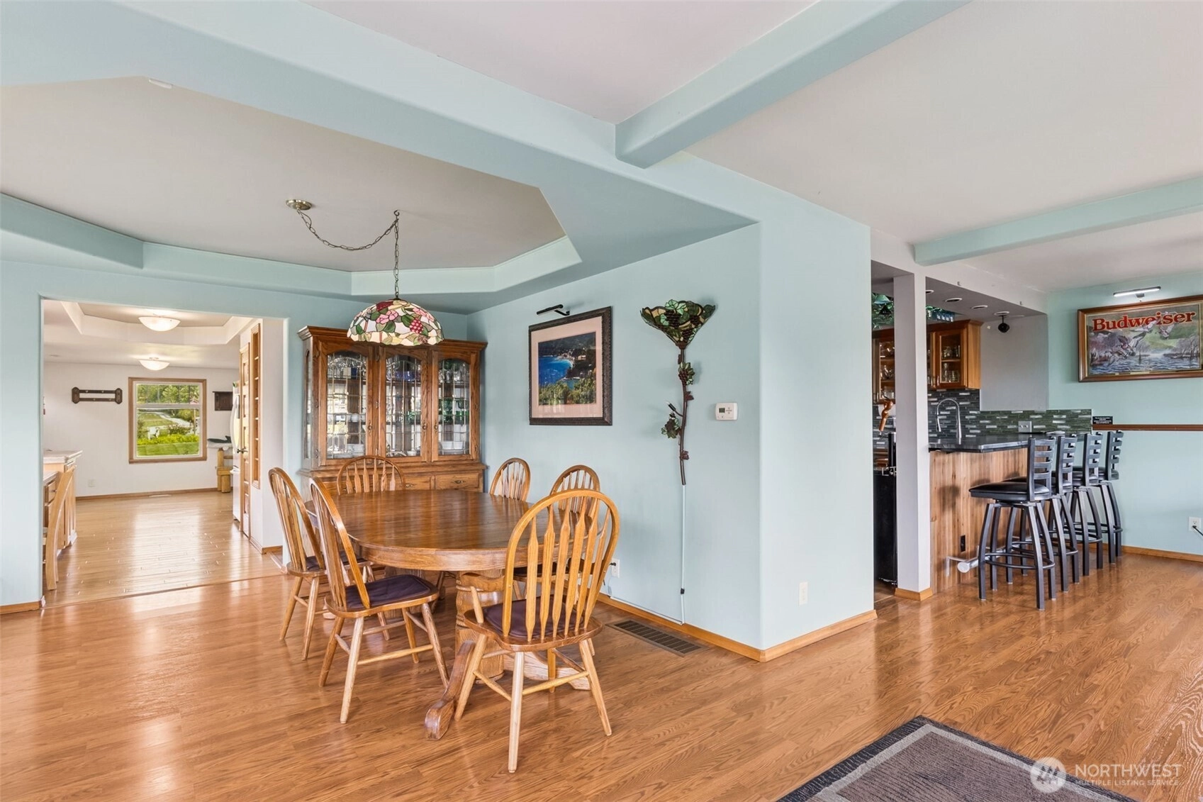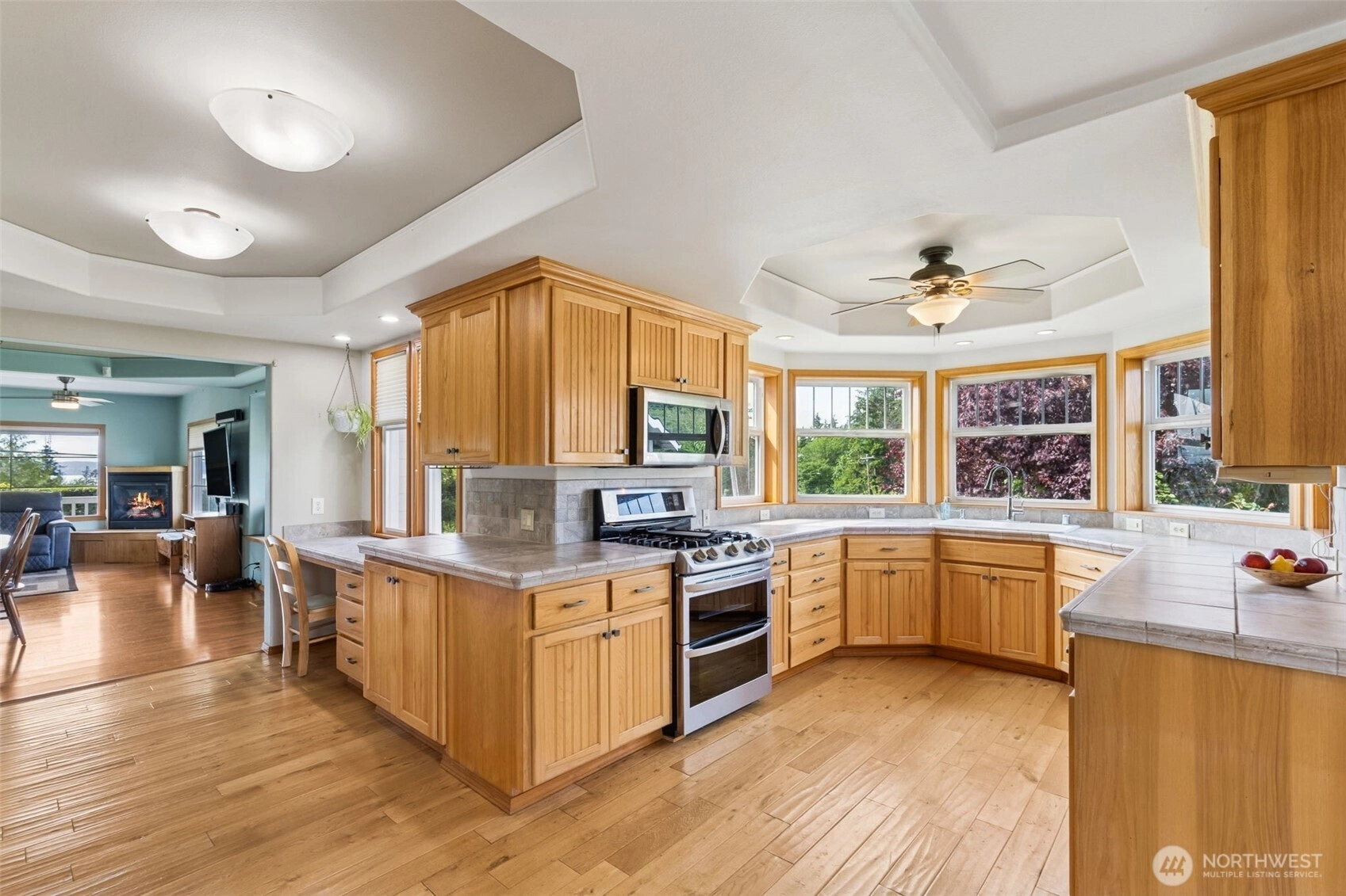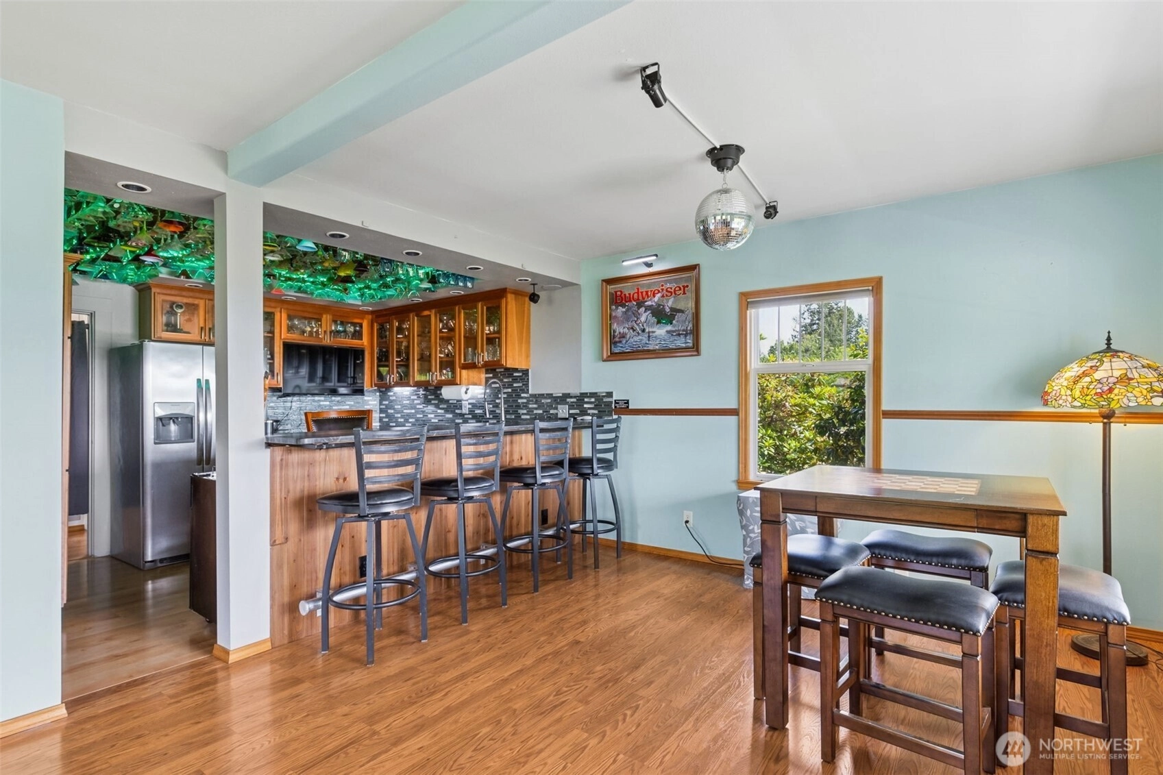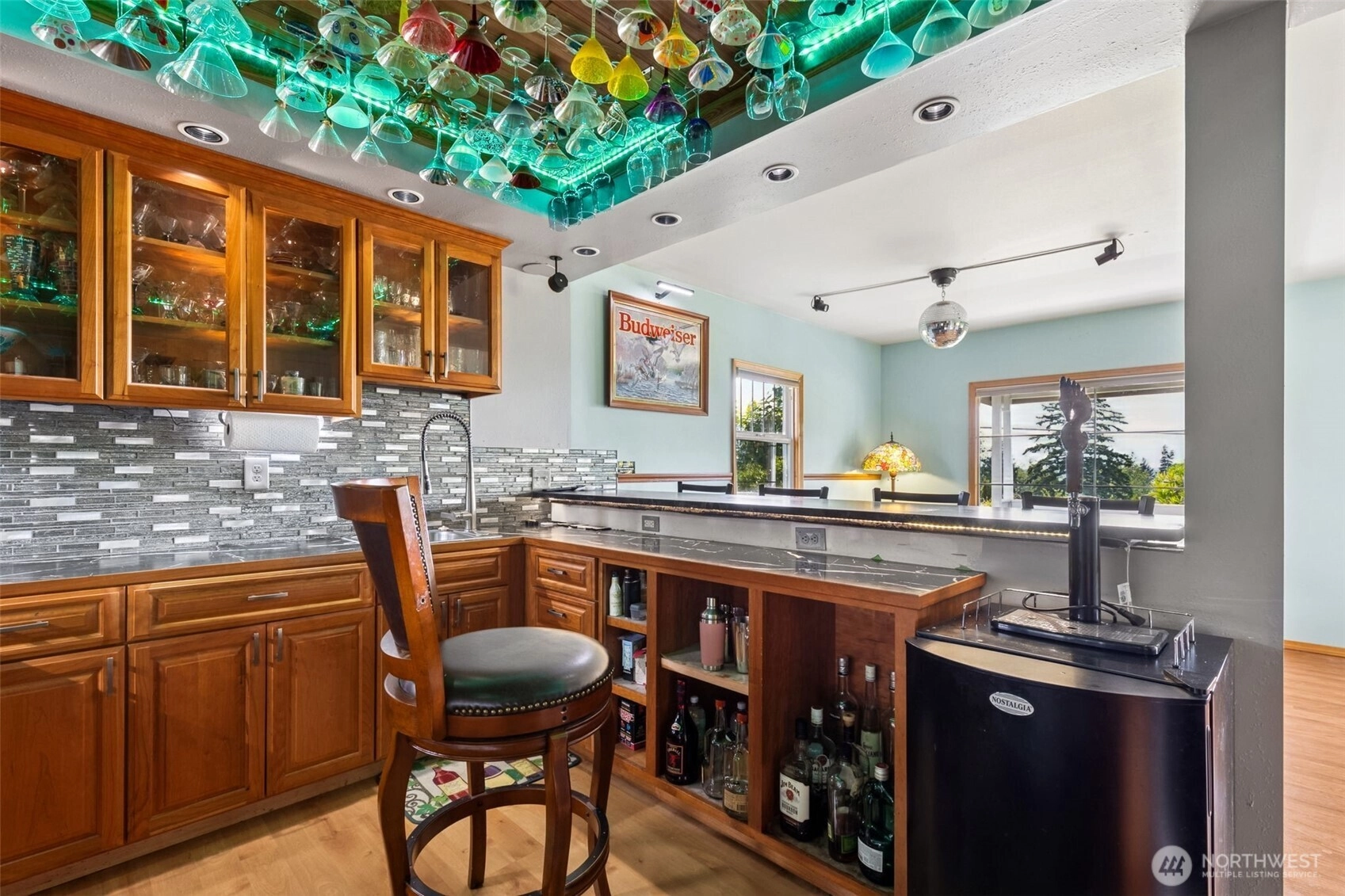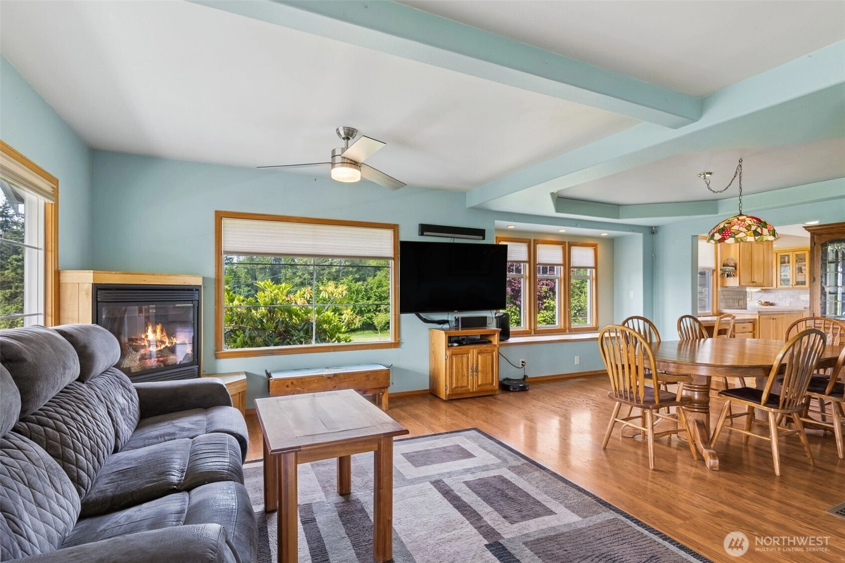 Entertainer & Golfer’s Paradise! Private 5-acre estate w/ 9-hole par-3 course—sand traps, pro signage & cart incl. Flexible acreage ideal for events, hobbies, animals or future ADU. Main home features wood floors, propane FP, kitchen w/ hickory cabs, tile counters, pantry & water view. Showstopping bar w/ cherry cabs, granite, mosaic tile & martini-glass ceiling. Lofted primary suite w/ 2 view decks—sunsets over Port Susan & sunrises over the course—plus spa bath. Guest house, bsmnt suite, huge, heated shop w/ 220, tall doors & wkshp. Outdoor bar, patios, gardens, fruit trees & more!