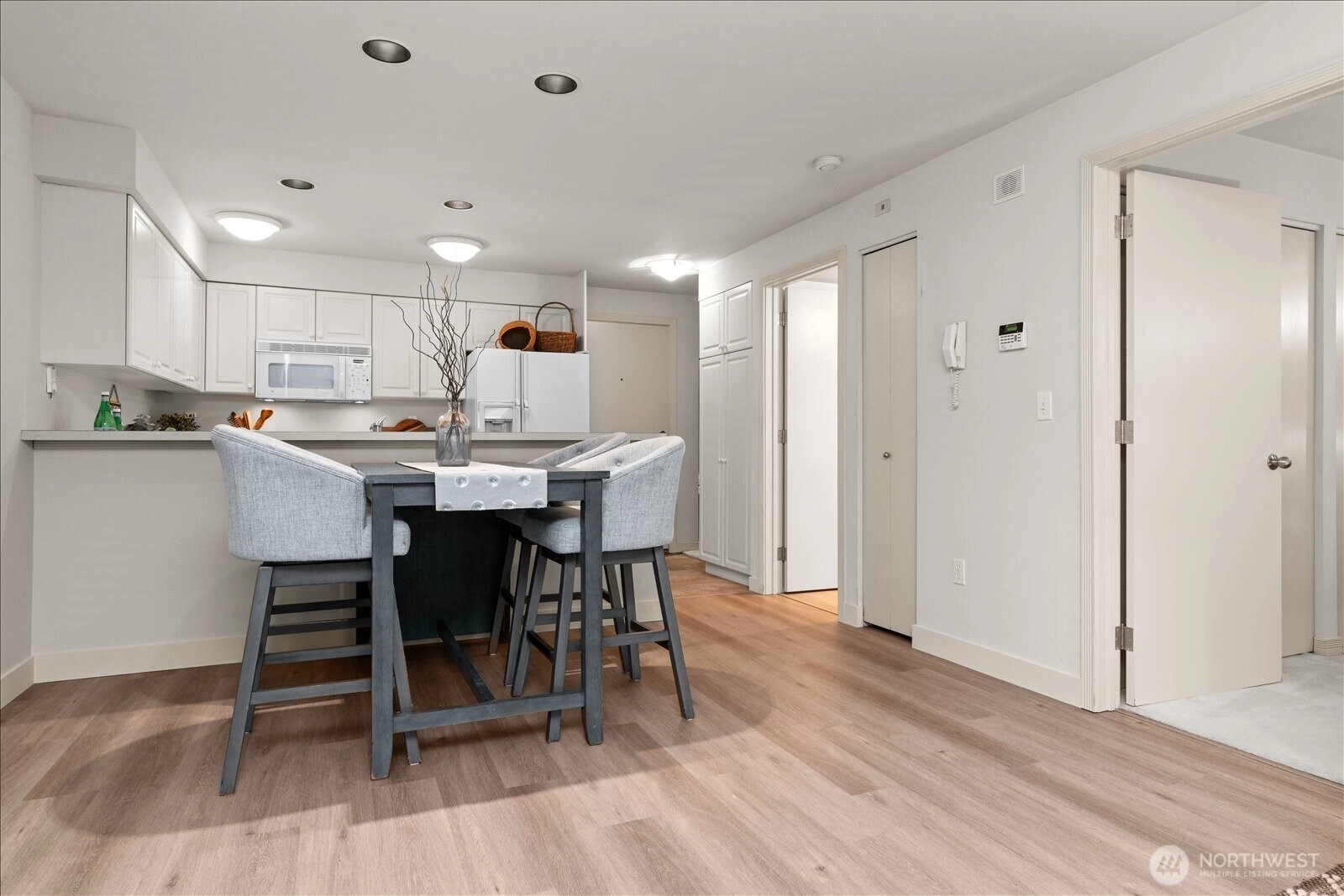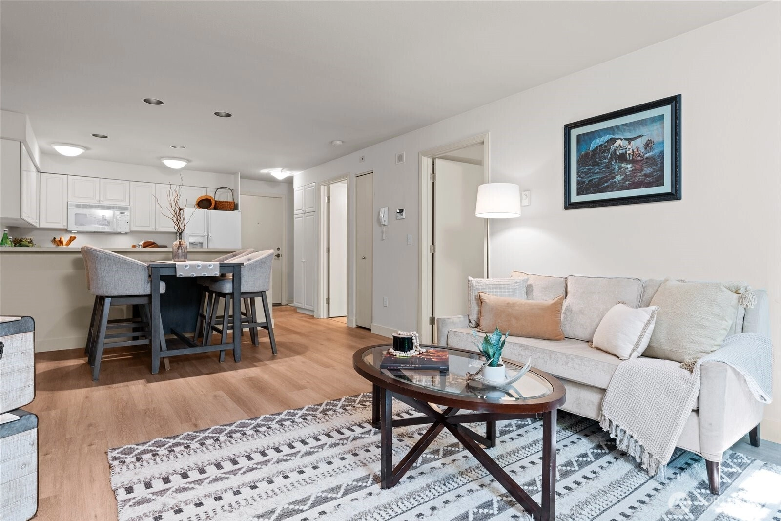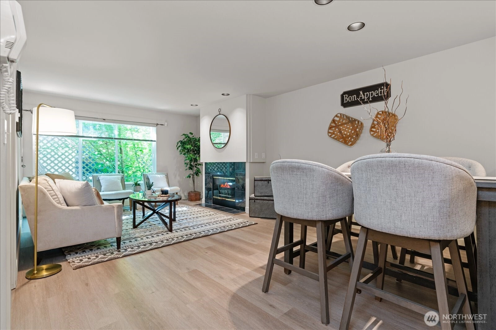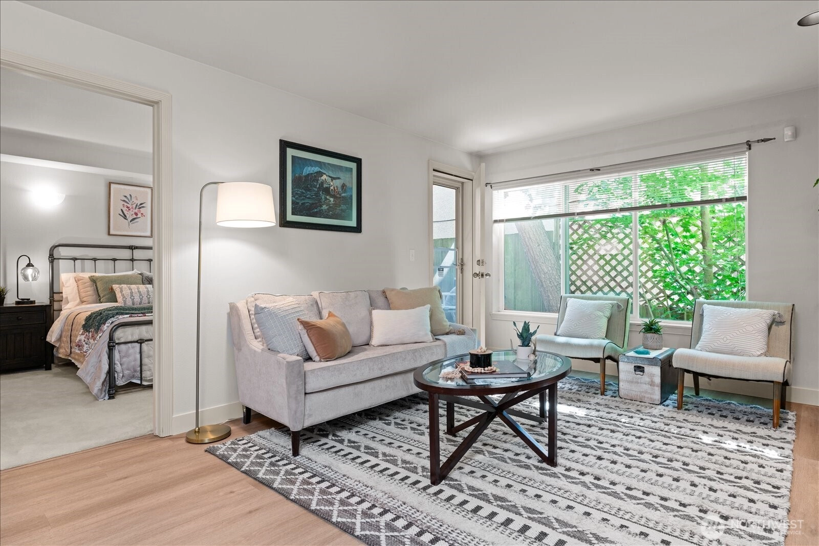 NEW PRICE! Cozy ground level condo on quiet dead-end street, only steps from Discovery Park, and a stones throw to Ballard Locks, SPU, Wild Salmon fish market, Queen Anne & Fremont. This Unit offers new LVP throughout the spacious kitchen, dinning & living area. The open bright living room has a gas fireplace to keep you cozy through the rainy Seattle winters. The Bedroom offers double closets & a slider to the private partially covered patio, perfect for morning coffee or after dinner wine and games! The office creates the ideal remote work space or a sewing/hobby room! Washer/dryer in unit, double-pane windows, secure entry, parking & storage help make this unit the Perfect place to enjoy city living in the PNW! {Notice the low HOA fee!}