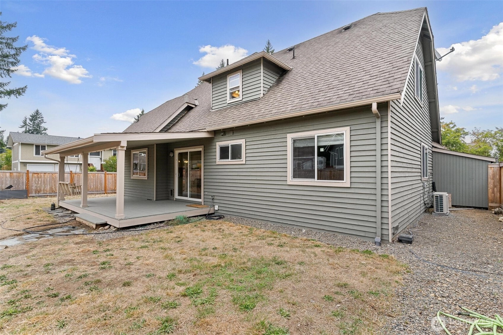 Unbeatable location in the heart of Covington! This inviting home features fresh interior and exterior paint and new carpet on the stairs, offering a move-in ready feel. Inside, a cozy fireplace anchors the living room, while the oversized primary suite and convenient additional bedrooms on the main floor provide comfort and functionality. Step outside to enjoy a serene covered patio, versatile backyard shed, and RV parking complete with hookups—perfect for all your needs. Minutes from Costco, grocery, schools, parks, HWY 18 access and endless amenities. With thoughtful updates and space to relax or entertain, this home is ready for you to make it your own!