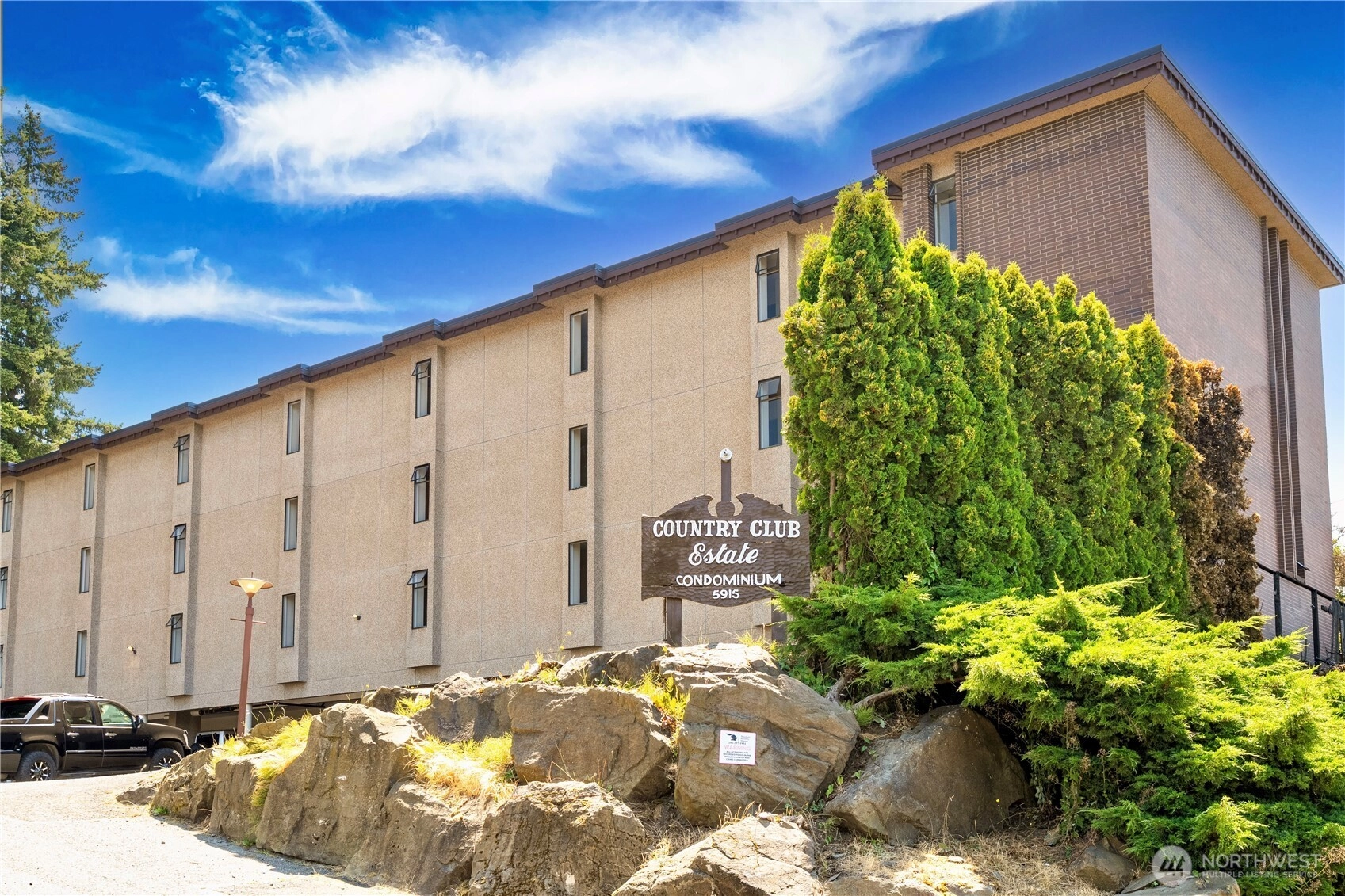 Spacious 2-bedroom, 1.75-bath condo located on the 4th floor in a secure building with a locked lobby, new elevator, This single-level unit offers stunning southern exposure with views from sunrise to sunset. Enjoy indoor-outdoor living with a sun deck and sliding glass doors—perfect for relaxing in peace and quiet in Everett. Kitchen w/ss appliances& ample storage, separate dining area & bright, roomy living space filled with natural light. Additional storage rooms in addition to closets: one inside building in hallway near unit, and one outside in carport area. Easy access to I-5 North and South. Country Club HOA includes water, sewer, garbage & common area maintenance.