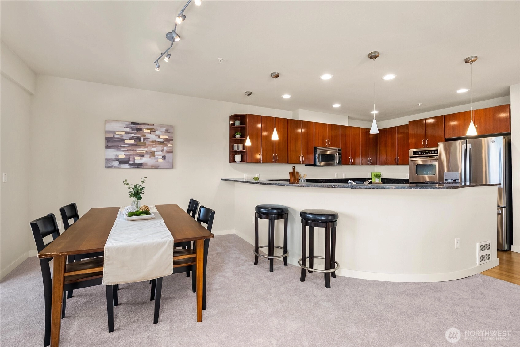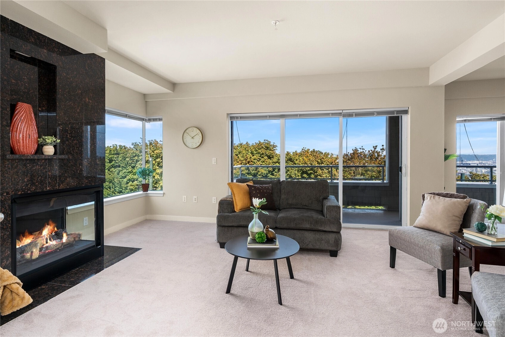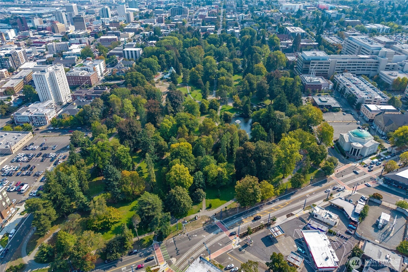 Honey stop the car! This rare corner unit floorplan in 1 Broadway has a chef's kitchen with wrap around granite counter. Room for a sizable dining table access to outside deck. At one time it had a commanding view of Commencement Bay. Now the view is better in the Winter when trees have shed their leaves. The den/office could be used as guest quarters. Stadium District lifestyle, all your amenities are within reach. Grocery, coffee shops, schools, theater, etc. Transit is nearby. Secured garage parking, gated entry. Low dues reflect a well managed complex. Recently painted, carpet replaced, new flooring, and deep cleaned. Move in ready!