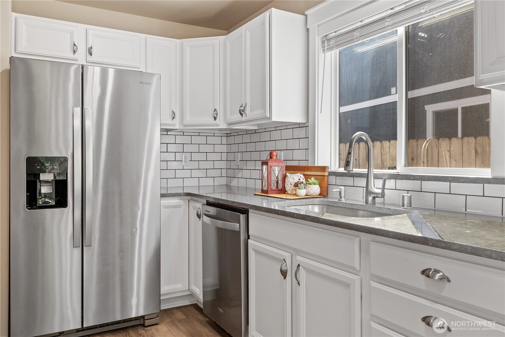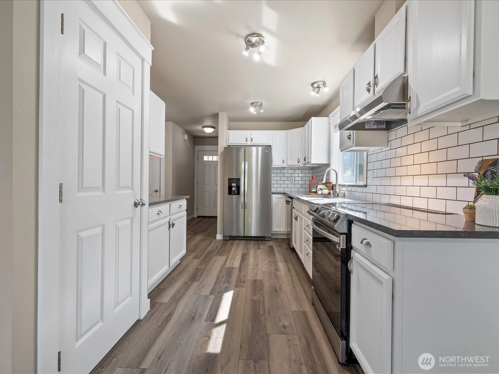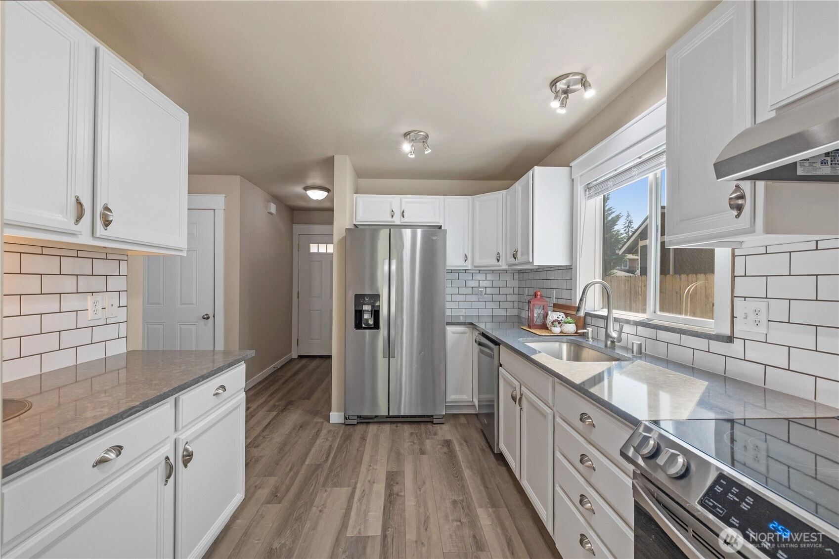 Conveniently located near I5, hospitals, Smokey Point & Shopping. This fully updated home is move-in ready with fresh paint, new carpet, LVP flooring, trim & modern light fixtures throughout. The entry opens to stunning kitchen update {all new stainless steel appliances, quartz countertops, full height tile back splash, abundant cabinetry & large pantry} plus dining area & spacious living room, and guest bath on main floor. Upstairs holds the primary suite w/ walk-in-closet & updated full bathroom, two additional bedrooms & another full updated bathroom. Enjoy the fully fenced backyard with w/large storage shed. Style, comfort & convenient location all in one! PRE-INSPECTED!! Ask about $10k credit from preferred lender!