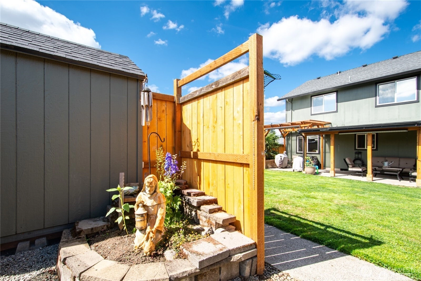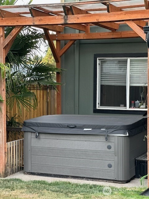 Entering this home you'll find beautiful bamboo flooring, porcelain tile, formal living & dining rm. w/black walnut countertop buffet. The kitchen boasts newer top of the line appliances, gas stove, quartz countertops, eating bar, pantry & 1/2 bath w/granite countertop. Lovely primary bedroom w/ensuite bath, & walk in closet. Upper level also offers 3 spacious bedrooms all with walking closets & an additional full bath. Step out to the great fully fenced backyard that features beautiful walkways, large covered patio, covered pergola, hot tub and more. 2 out buildings for ample storage (lg one has power), raised garden beds, firepit, & RV parking. The roof is 11 years old w/50-year warranty. This home is priced to sell!