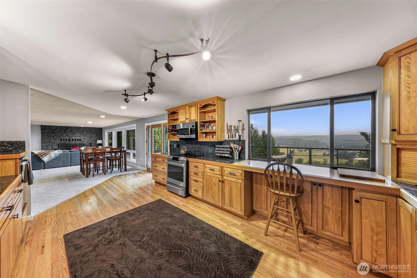 Oh my VIEW! Prepare to be captivated by breathtaking Cascade Mountain & Snoqualmie Valley vistas from this immaculate 2,880 sf daylight rambler. Perfectly positioned on a private and highly usable shy 5-acre parcel with pasture, equestrian potential, metal outbuilding, RV hook-up, and mini-farm ability, this property offers both beauty and function. Thoughtfully updated, move-in ready, and tucked on a private road, abutting the 574-acre Tolt-MacDonald park with miles of trails providing the ultimate blend of serenity, usability, lifestyle, & convenience. Enjoy sweeping views, privacy, and the feeling of being worlds away—yet conveniently located in Novelty Hill’s Ames Lake area providing a rural forest vibe without the long commute.