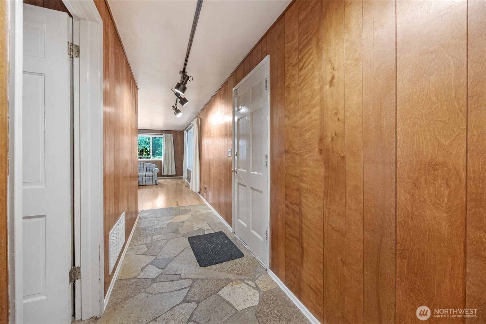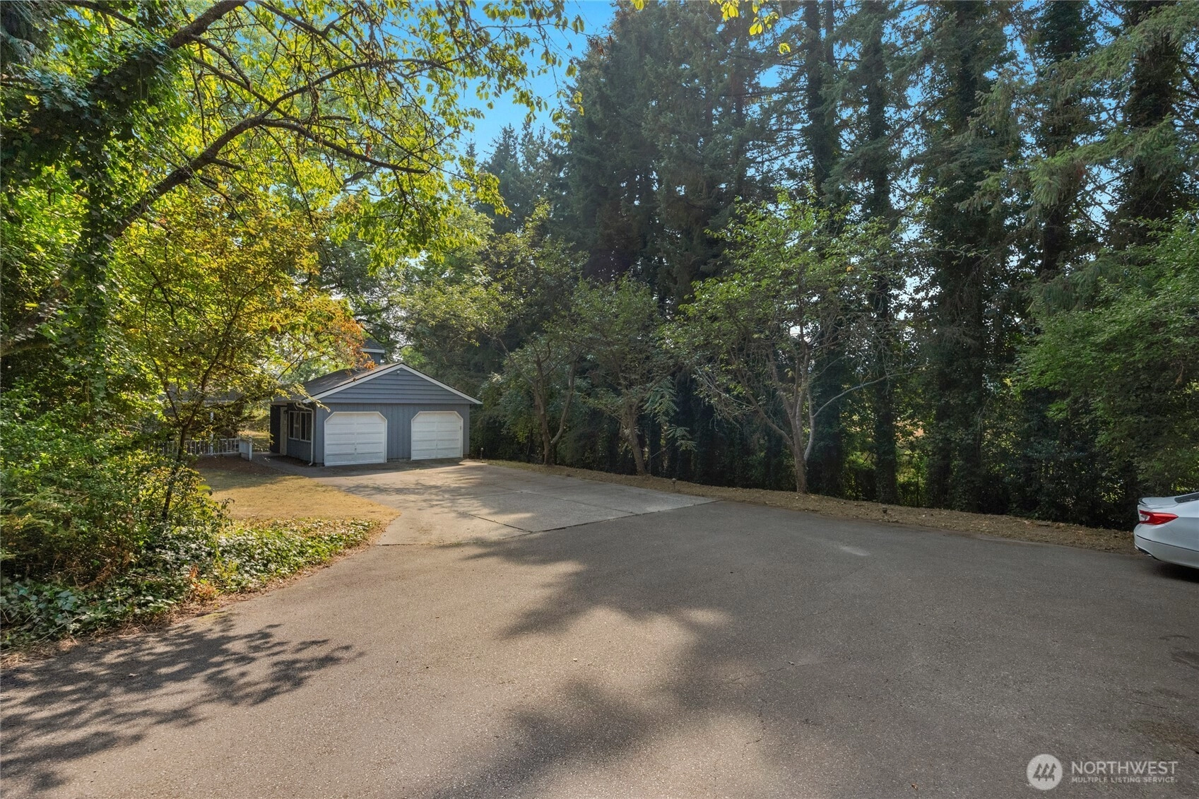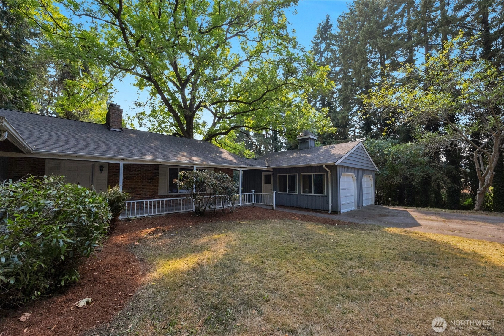 Developer Alert! Investment opportunity in Lake Forest Park. This sprawling rambler is sited on a private and tucked away 1.47 Acres (Gated & fully fenced). Previous developer in 2018 was designing for a 4 to 5 lot plat. Sewer connections are at the west property line. Recent zoning changes may allow for higher yield (up to 12 units). Surveys and plat designs available. This site has a majestic feel relating to the huge Black Walnut Tree, likely one of the largest in Puget Sound. The versatile rambler floorplan can be up to 5 bedrooms to include the extra room in the garage. 4th Bedroom is 13.5’ x 23.5’ and doubles as a Family Room / Office. Don’t miss finished attic room. Detached 2 car & ample parking. Great place to live, or develop.