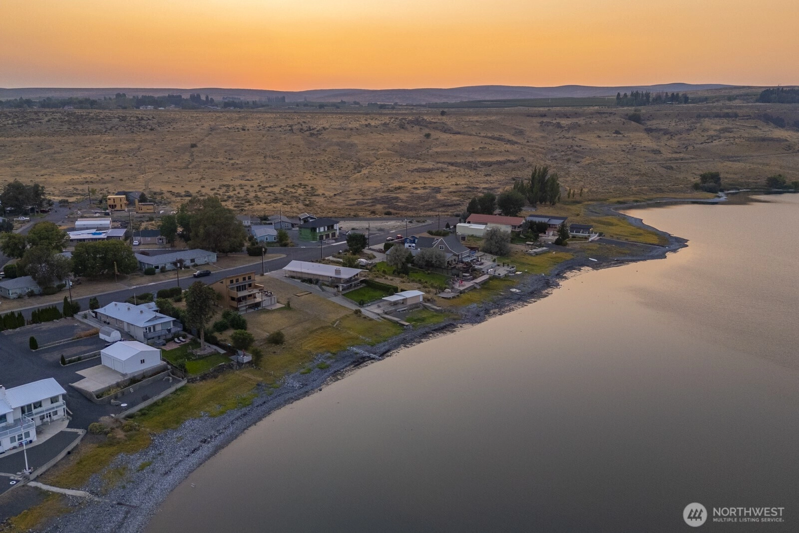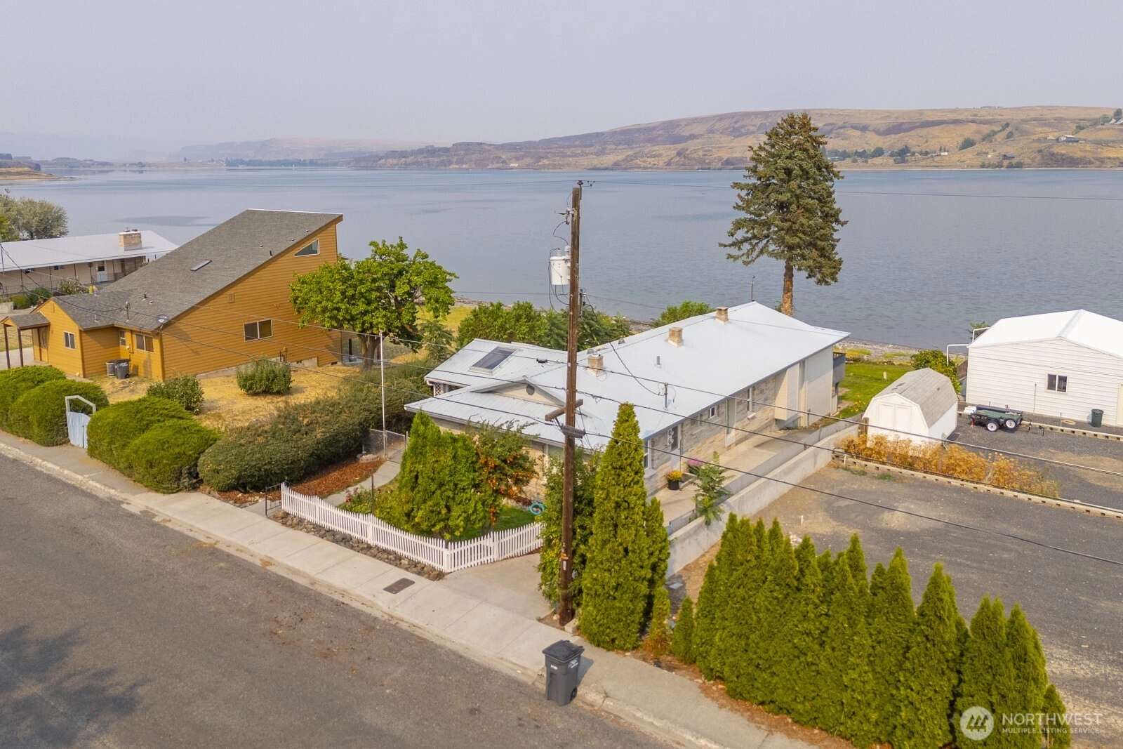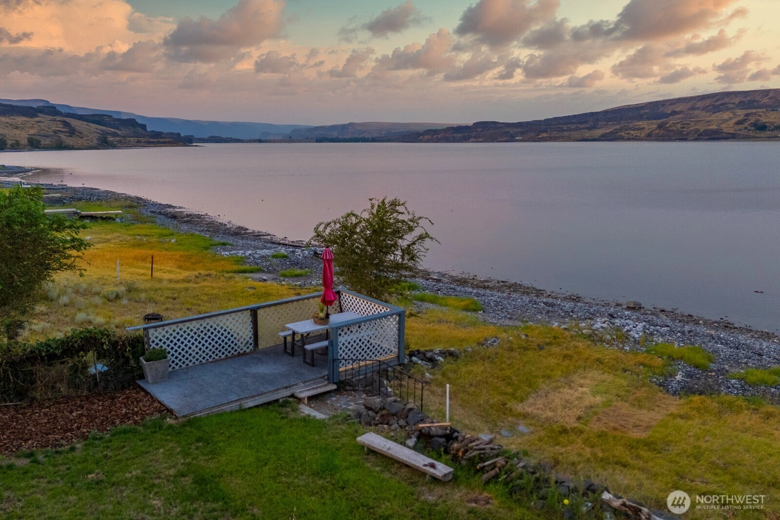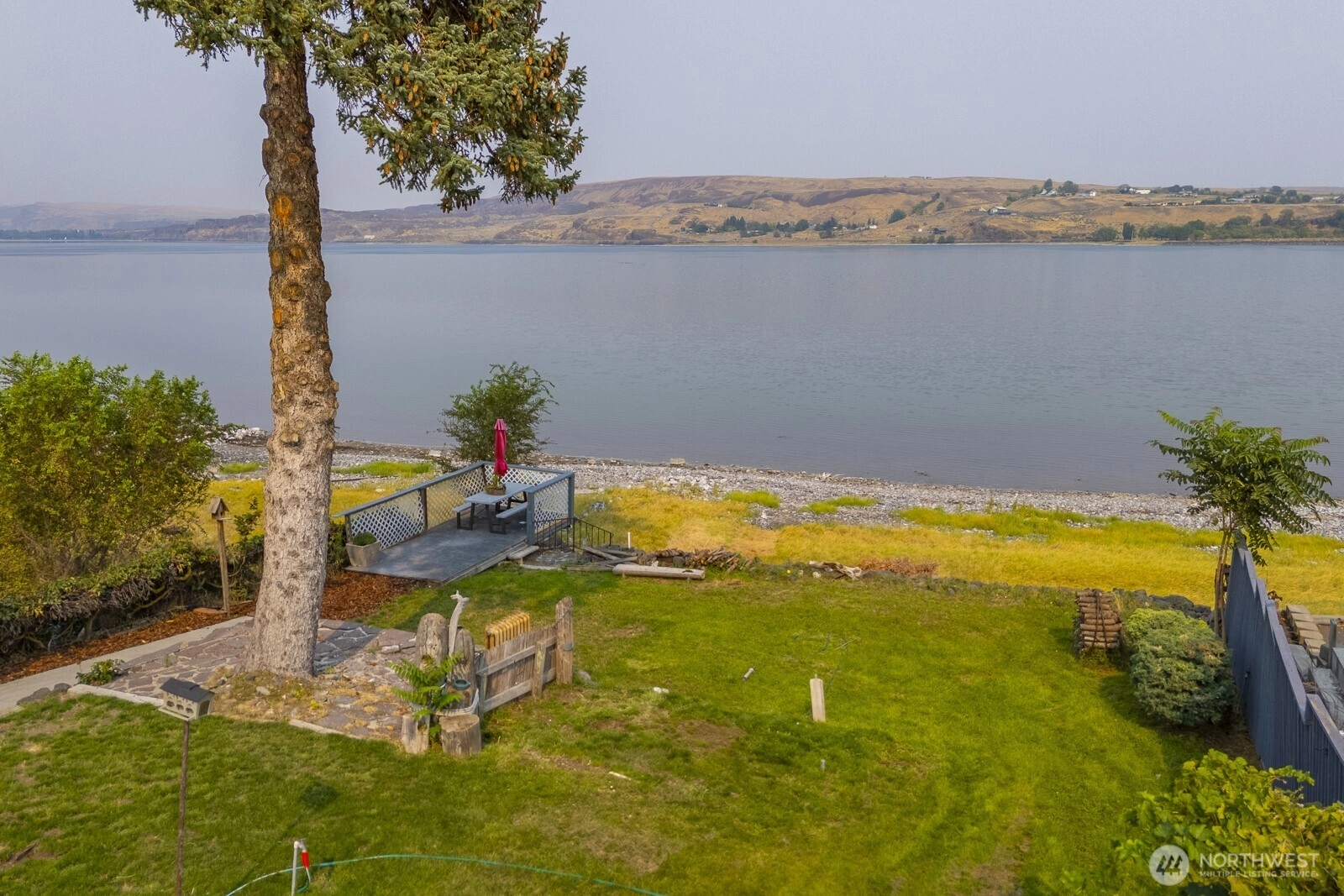 A rare chance to own one of just 14 homes on the healing waters of Soap Lake. This 3-bed, 2-bath w/ bonu home offers sweeping views of the lake and dramatic cliffs beyond. Relax on the multi-level deck or lakeside patio, surrounded by nature and serenity. Large picture windows throughout bring in year-round light and stunning scenery. Off the dining room, a fully enclosed outdoor kitchen/sunroom creates the perfect space for entertaining. Originally built in the 1950s, with a thoughtful 1990s addition adding a utility room and additional bedrooms. The lakeside yard is quiet and secluded, framed by fencing and mature hedges. The primary suite features a walk-through dressing area, full bath, soaking tub, and separate shower.