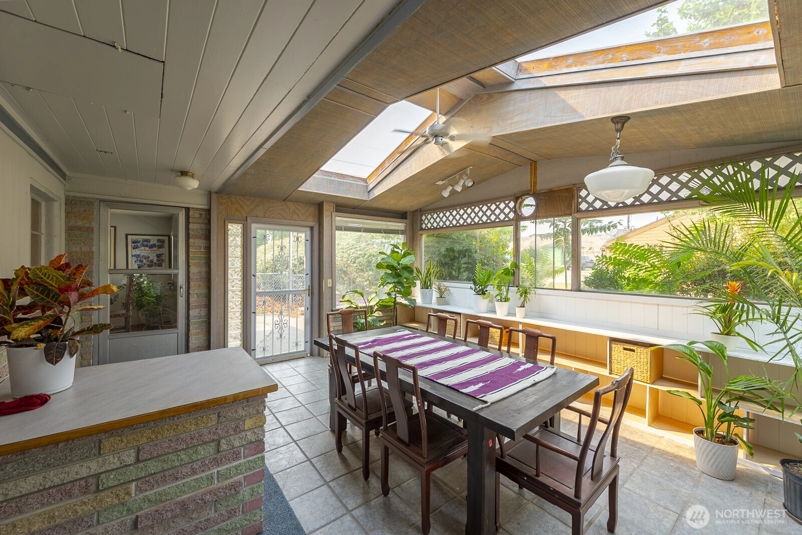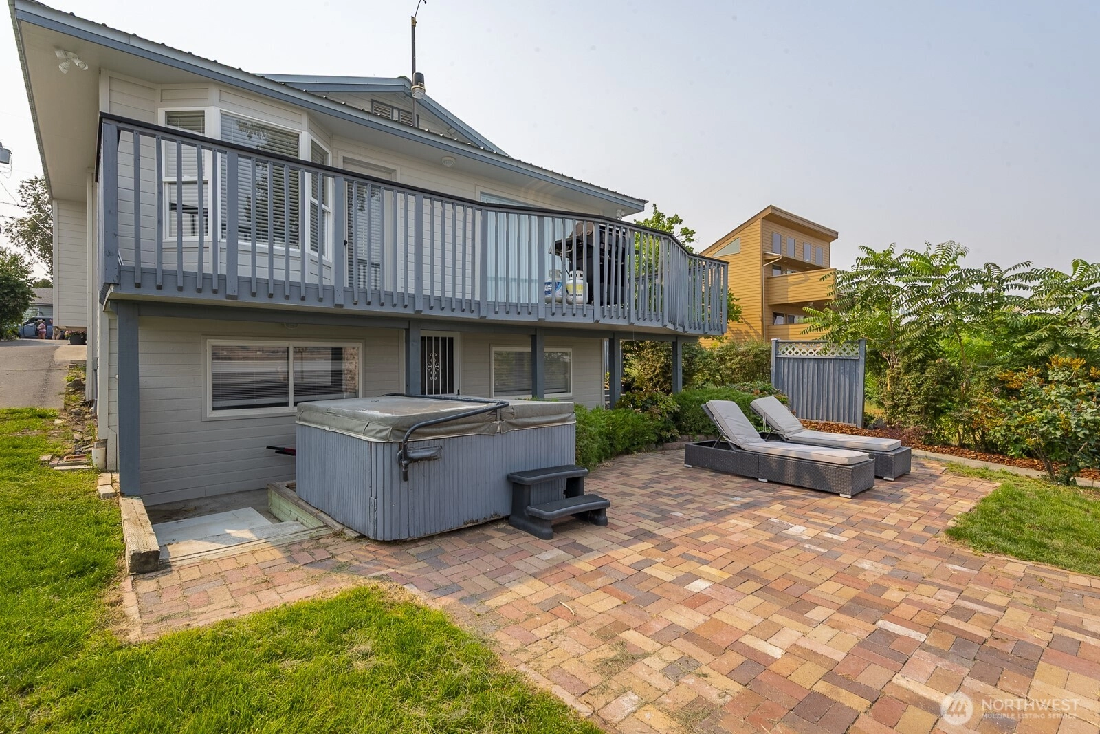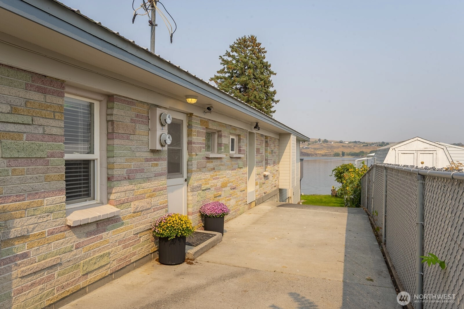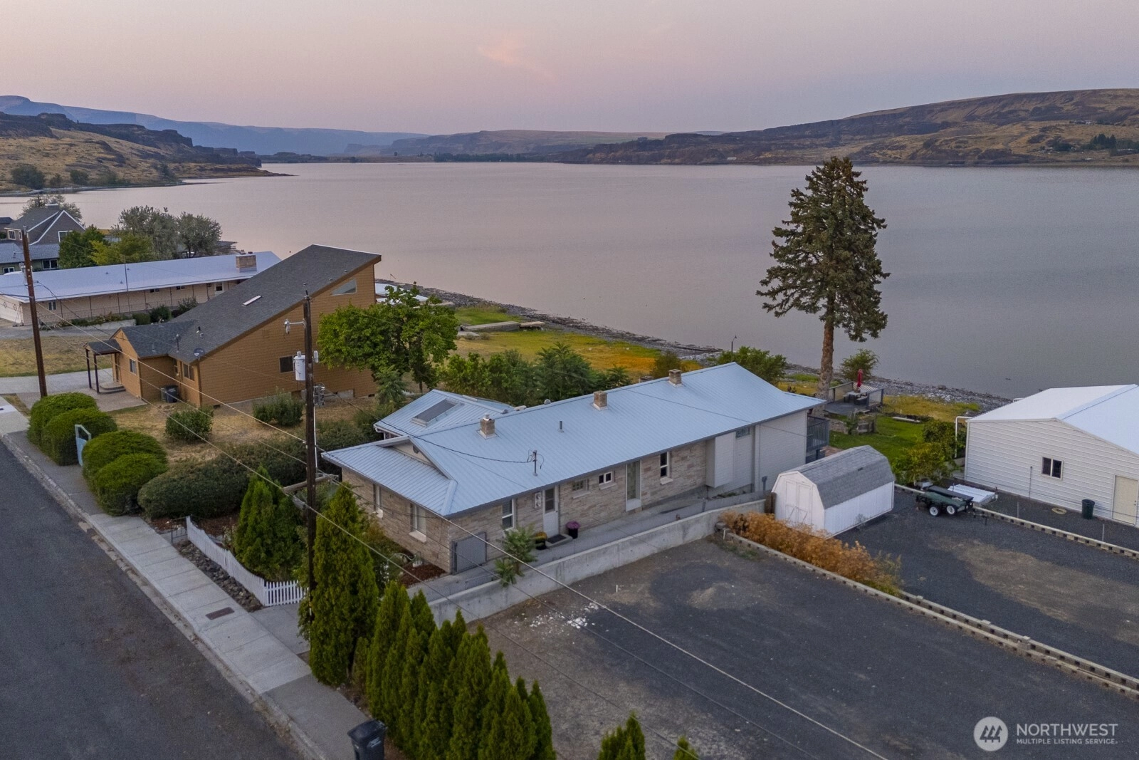 A rare chance to own one of just 14 homes on the healing waters of Soap Lake. This 3-bed, 2-bath w/ bonu home offers sweeping views of the lake and dramatic cliffs beyond. Relax on the multi-level deck or lakeside patio, surrounded by nature and serenity. Large picture windows throughout bring in year-round light and stunning scenery. Off the dining room, a fully enclosed outdoor kitchen/sunroom creates the perfect space for entertaining. Originally built in the 1950s, with a thoughtful 1990s addition adding a utility room and additional bedrooms. The lakeside yard is quiet and secluded, framed by fencing and mature hedges. The primary suite features a walk-through dressing area, full bath, soaking tub, and separate shower.